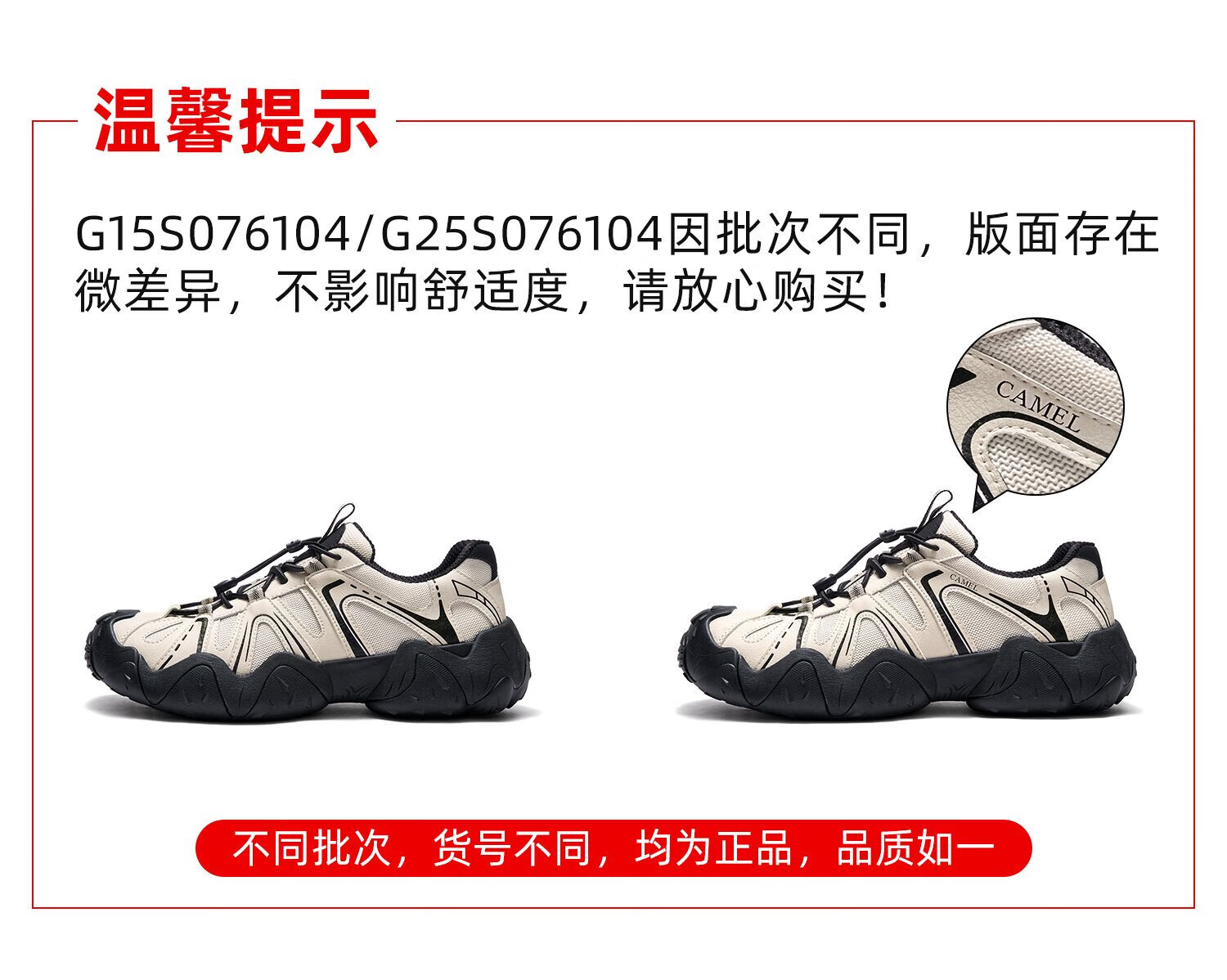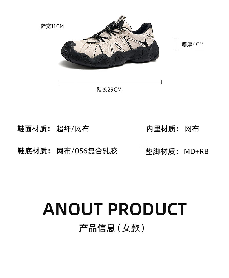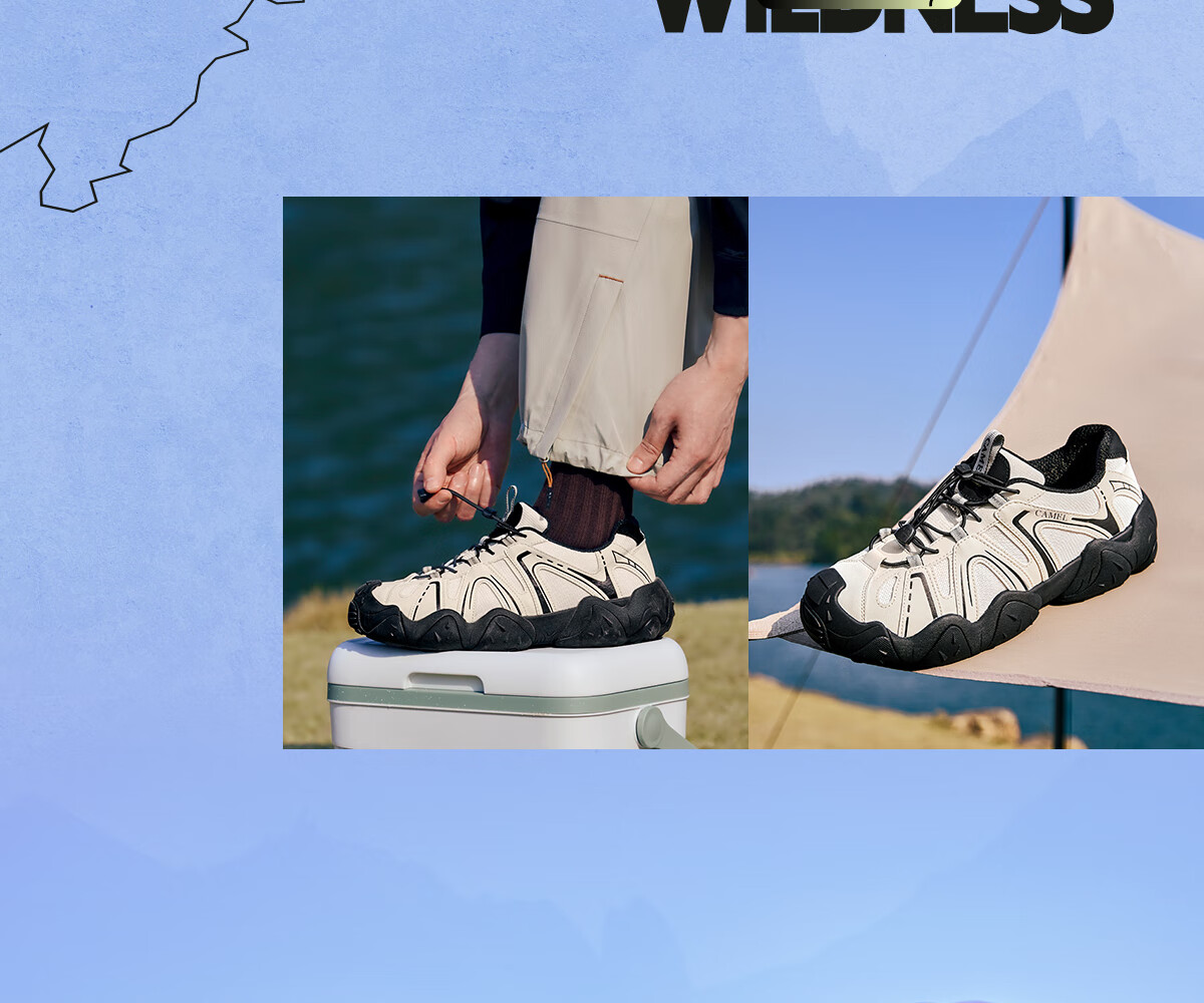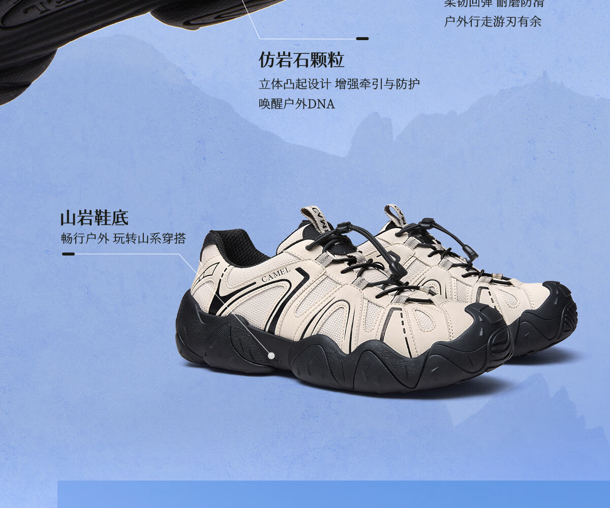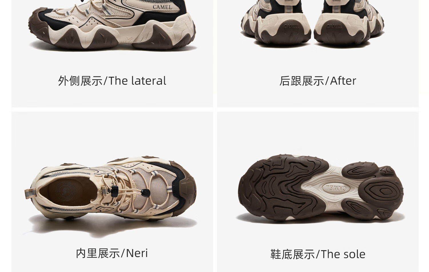 骆驼(CAMEL)【云山】网面户外徒步登山休闲丑萌鞋情侣 G15S076104 米白/黑 38