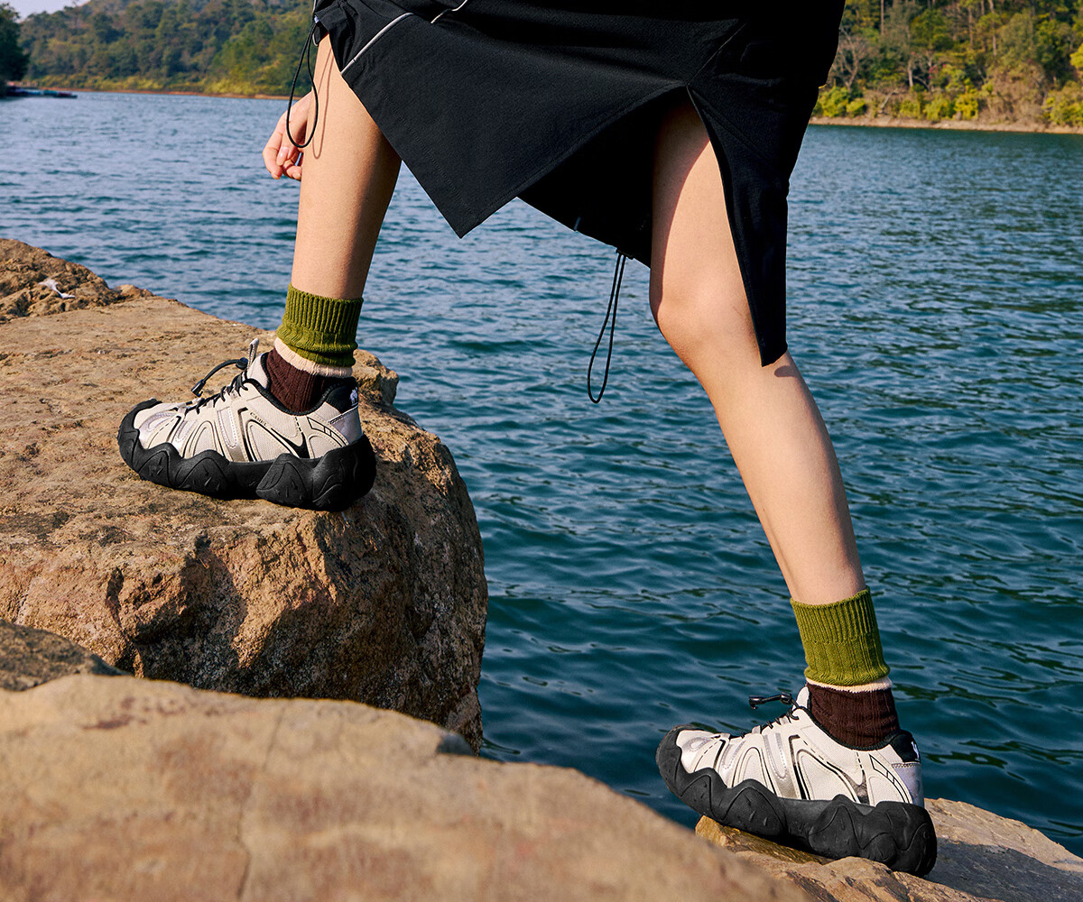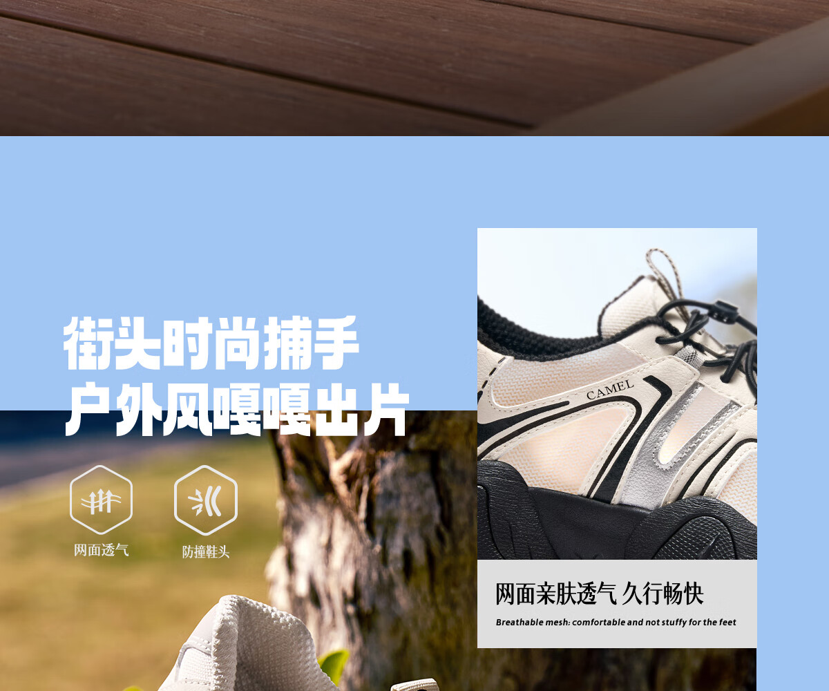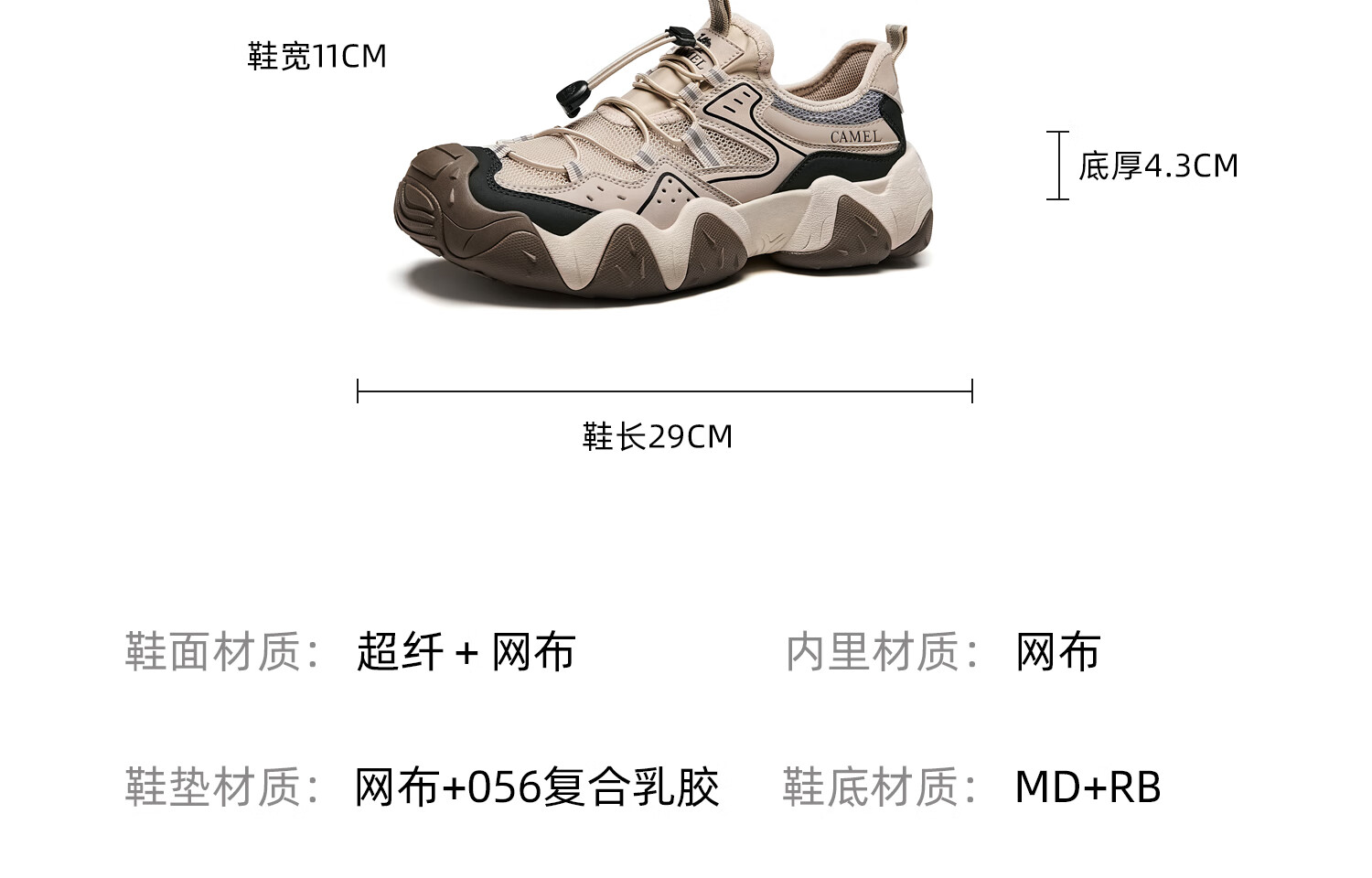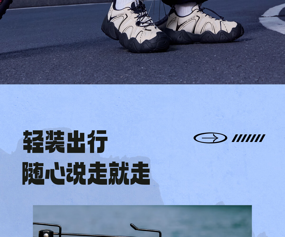 骆驼(CAMEL)【云山】网面户外徒步登山休闲丑萌鞋情侣 G15S076104 米白/黑 38