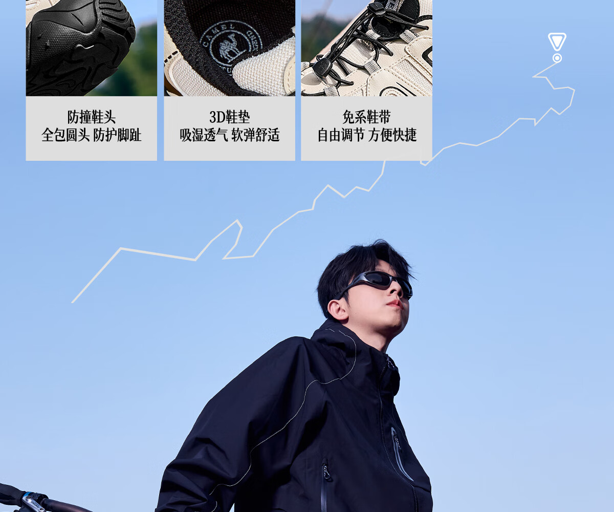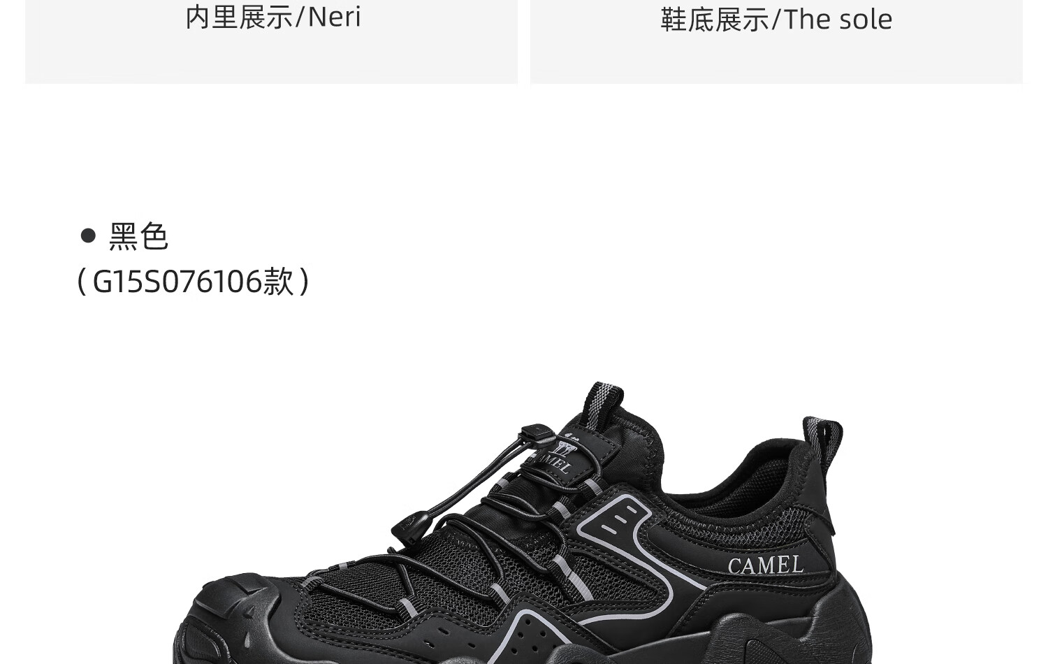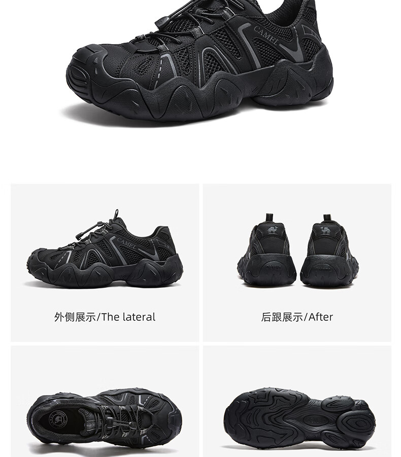 骆驼(CAMEL)【云山】网面户外徒步登山休闲丑萌鞋情侣 G15S076104 黑色 43