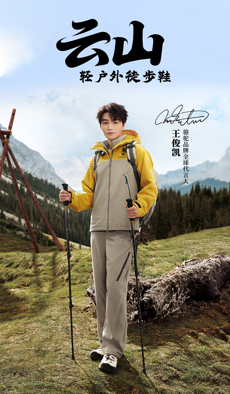 骆驼(CAMEL)踏山男士户外登山复古网面休闲低帮徒步鞋 G14S342046 杏色 44