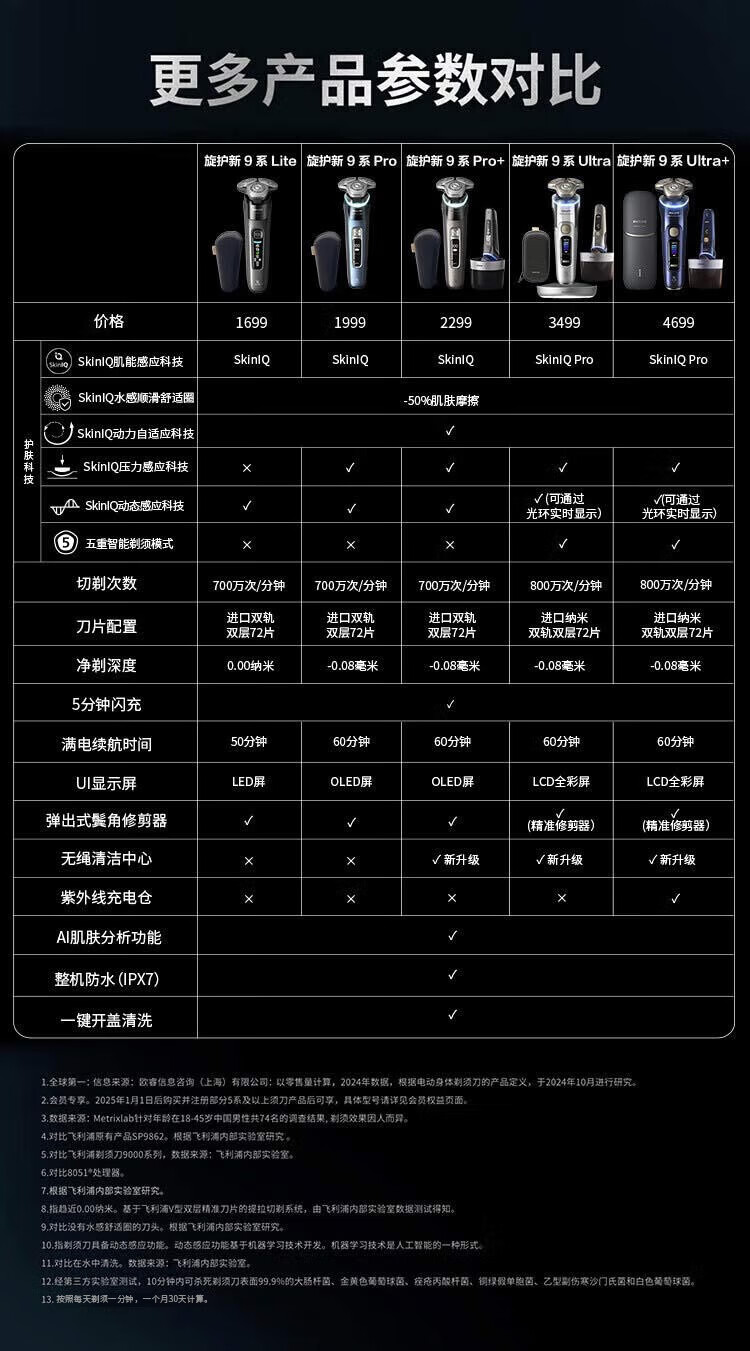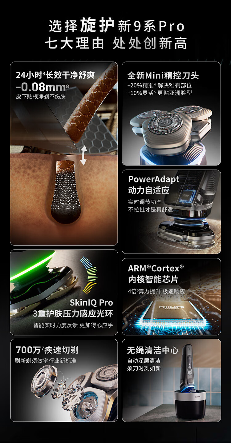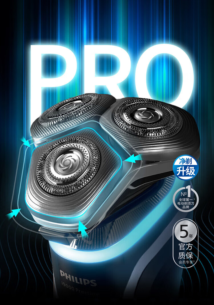 飞利浦(PHILIPS)电动剃须刀全新一代旋护式新9系pro 全天净爽 -0.08mm皮下净剃刮胡刀 生日礼物送父亲国家补贴