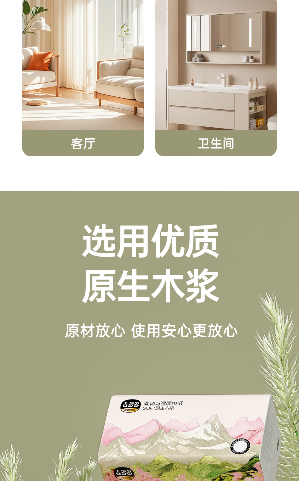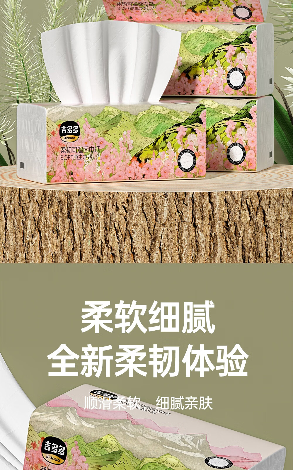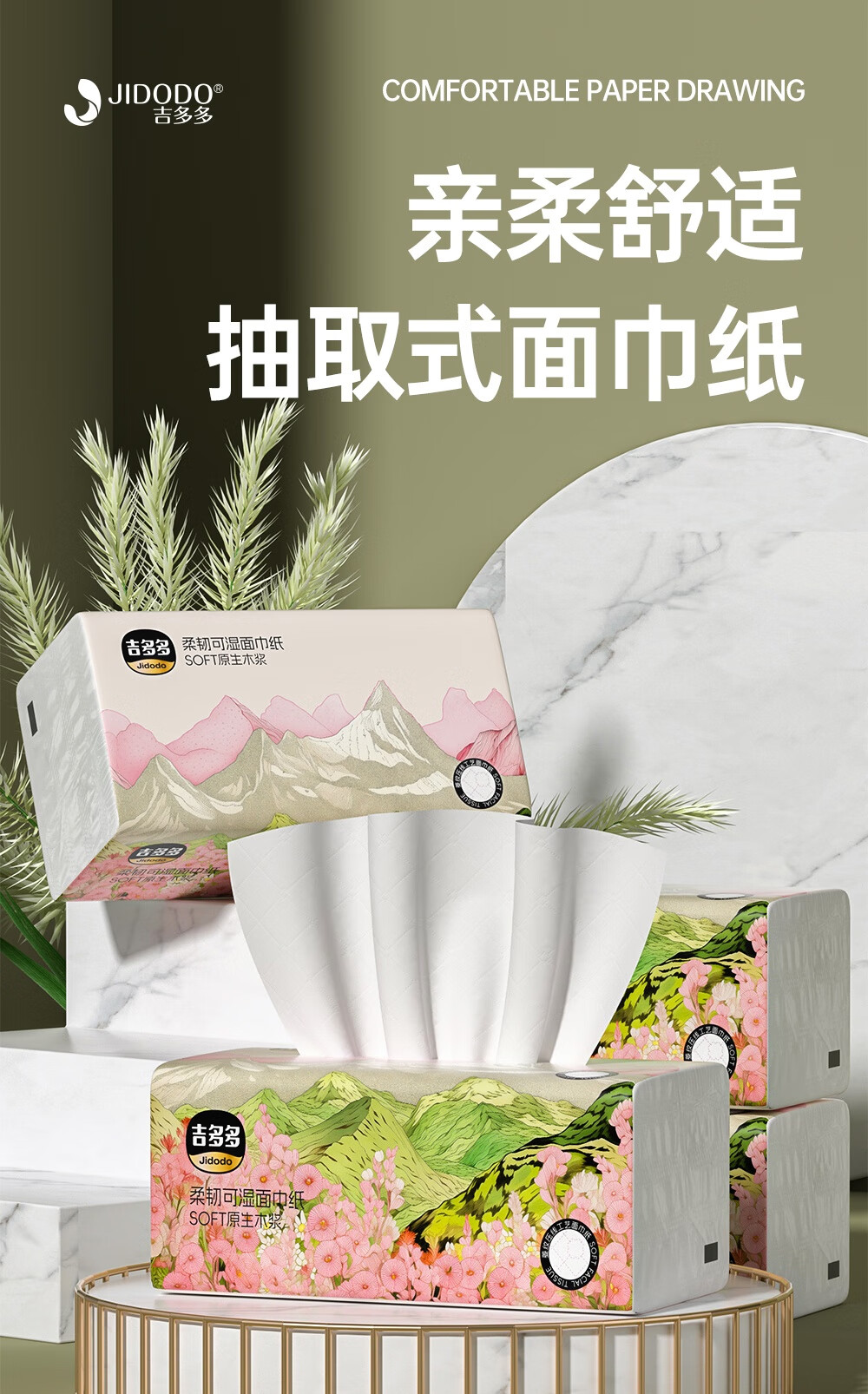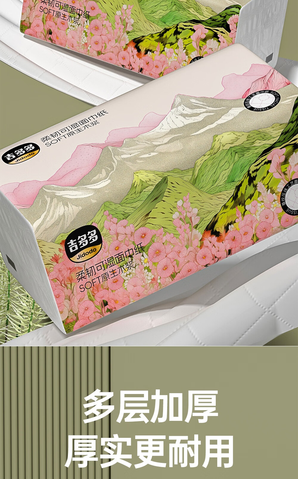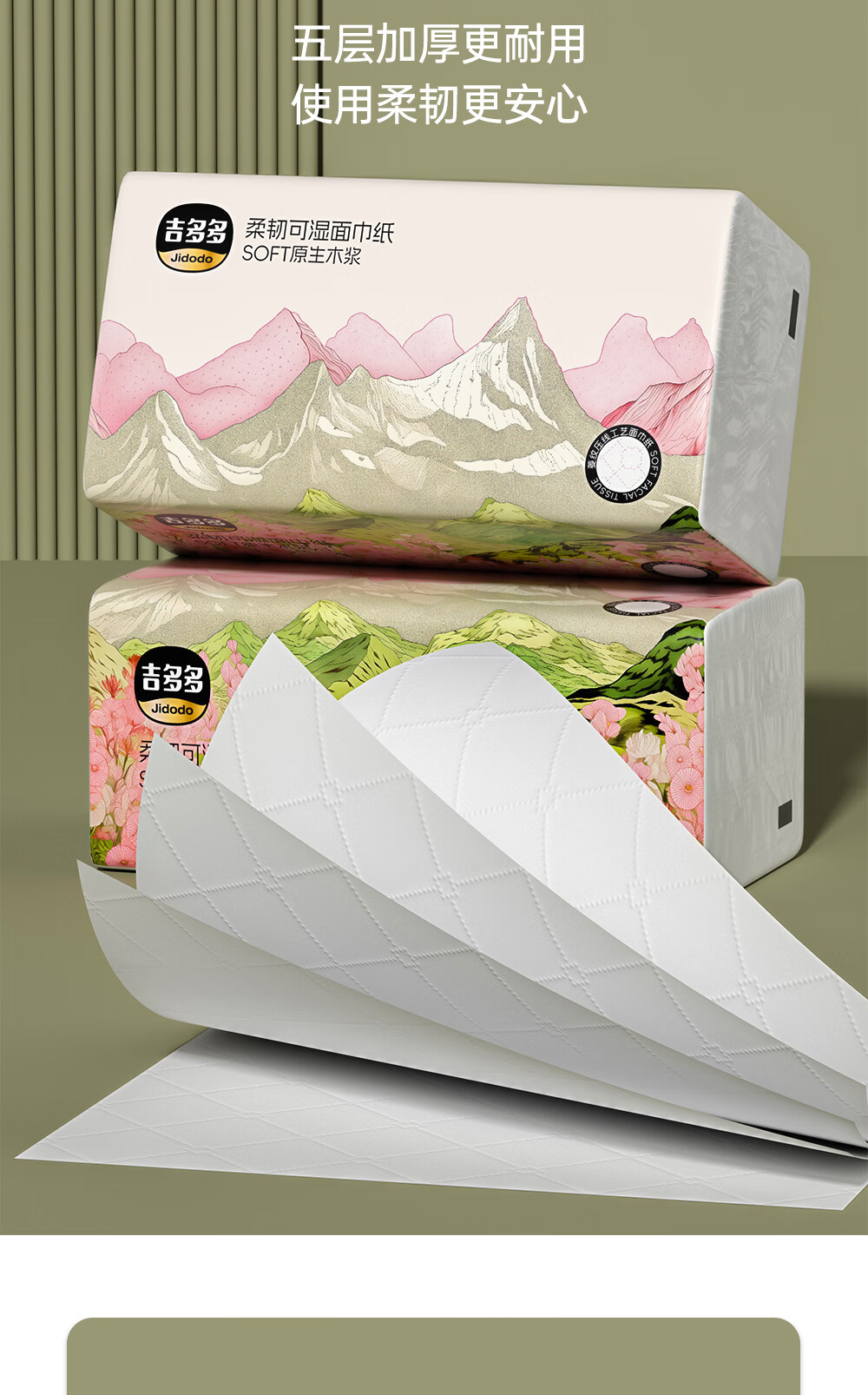 吉多多大包抽纸5层400张*18包 餐巾纸家用卫生纸 原生木浆纸巾 整箱