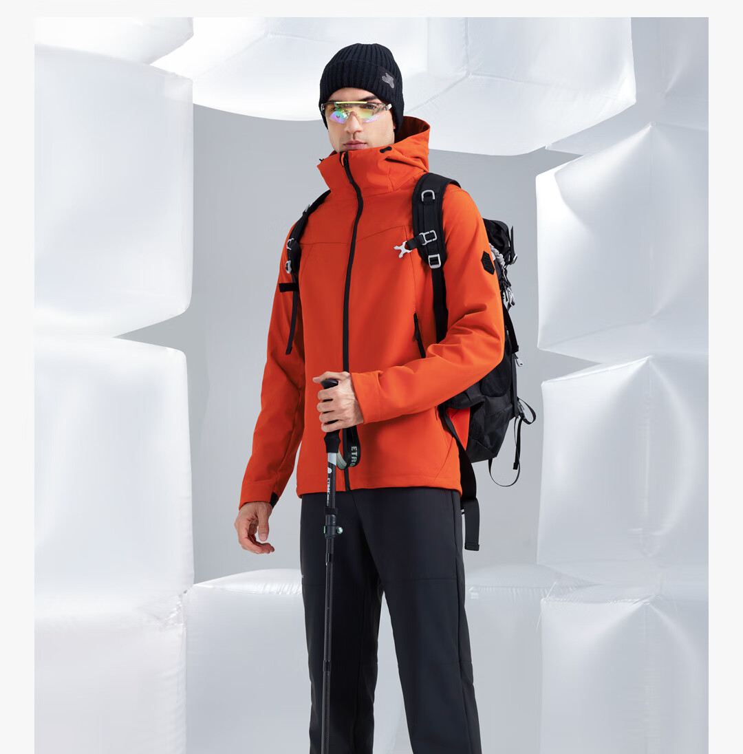 素湃防风防暴雨连帽软壳衣多功能轻量弹力秋男女夹克外套 赤霞红 S