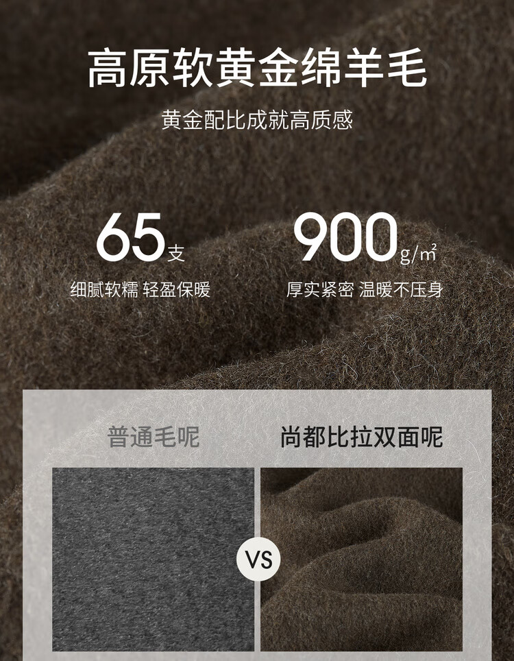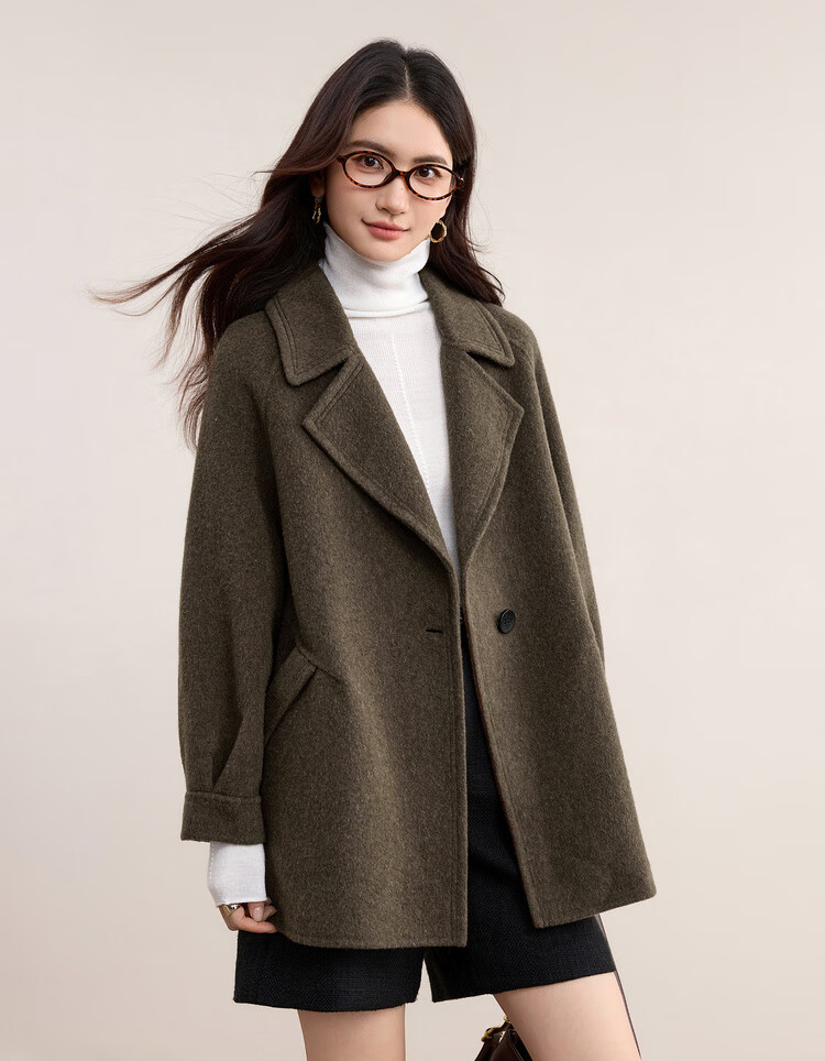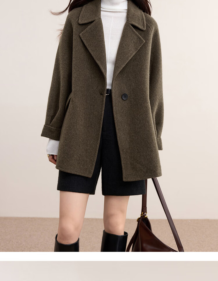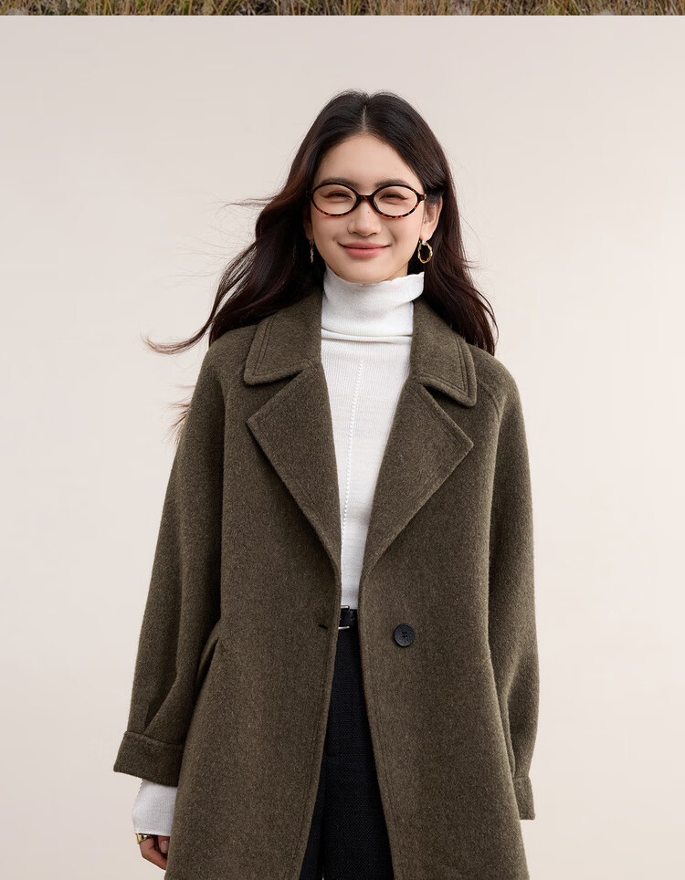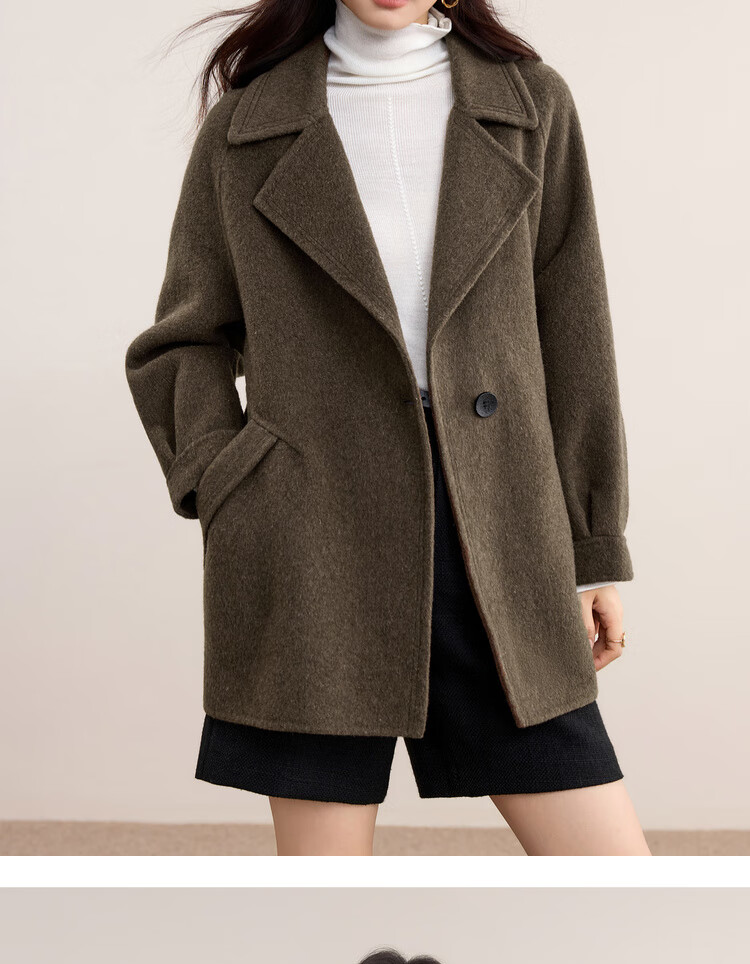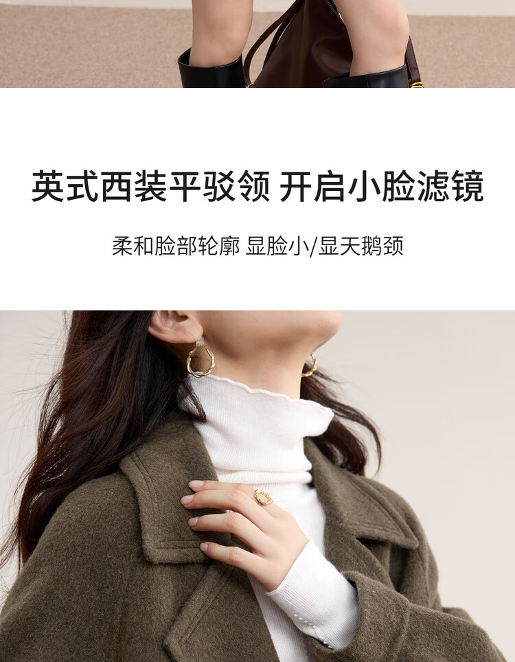 尚都比拉含绵羊毛英伦风毛呢大衣女冬季保暖厚款双面呢外套宽松显瘦上衣