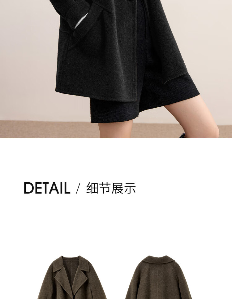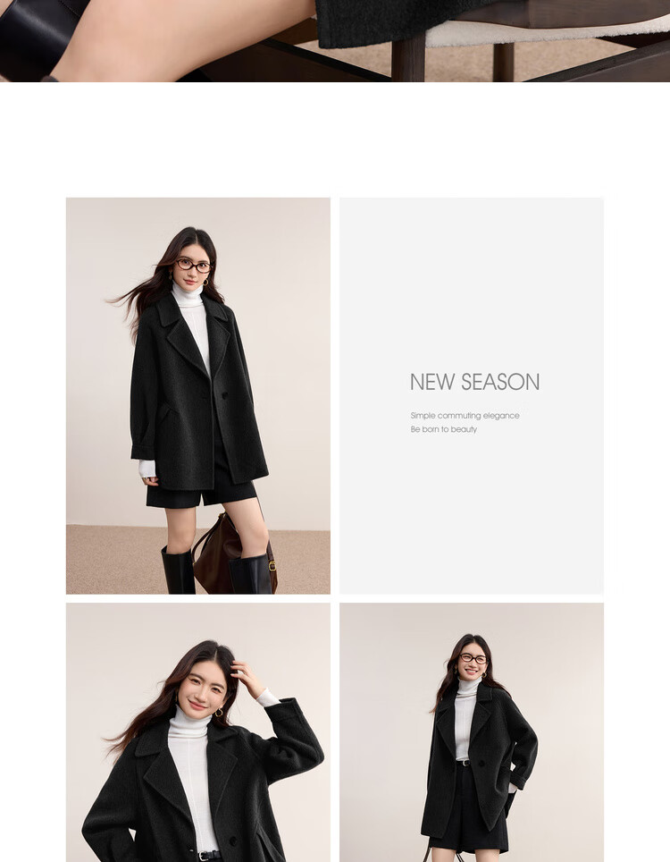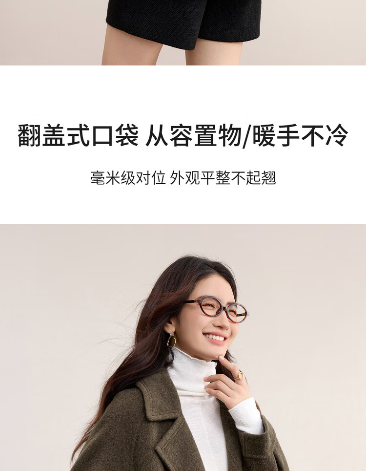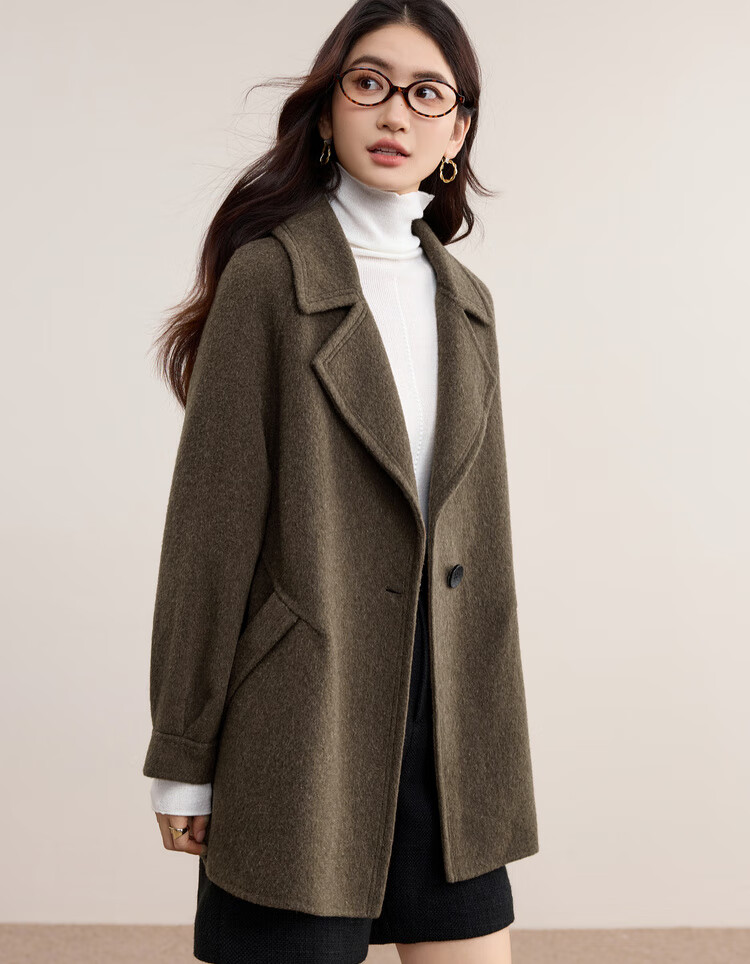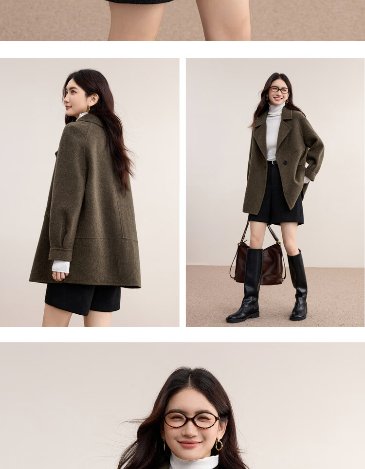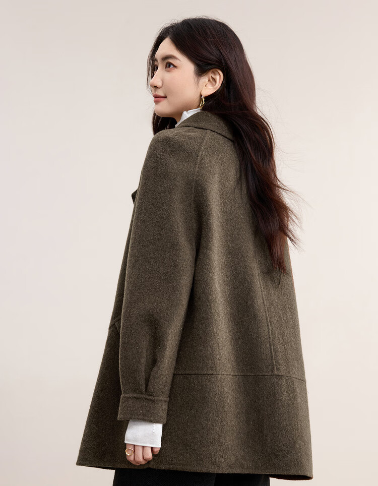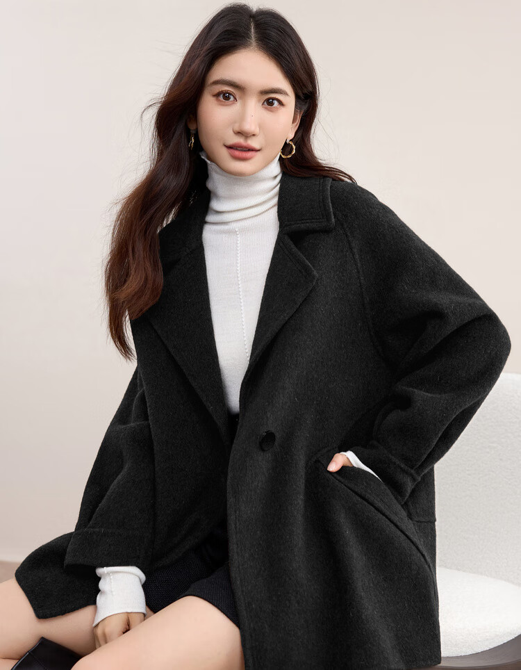 尚都比拉含绵羊毛英伦风毛呢大衣女冬季保暖厚款双面呢外套宽松显瘦上衣