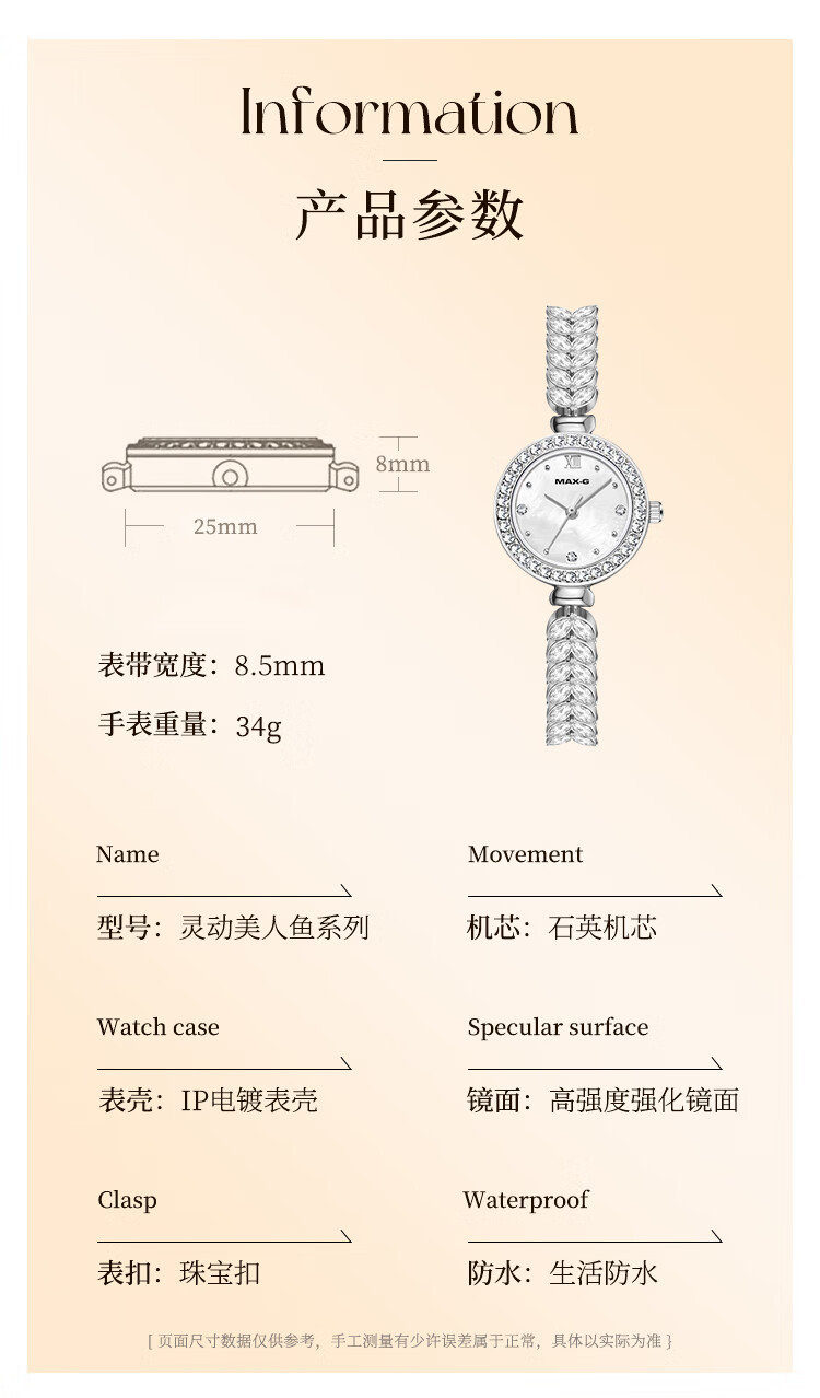 MAX-G美人鱼手表ins风轻奢小众女生情人节送女友送老婆生日礼物送闺蜜