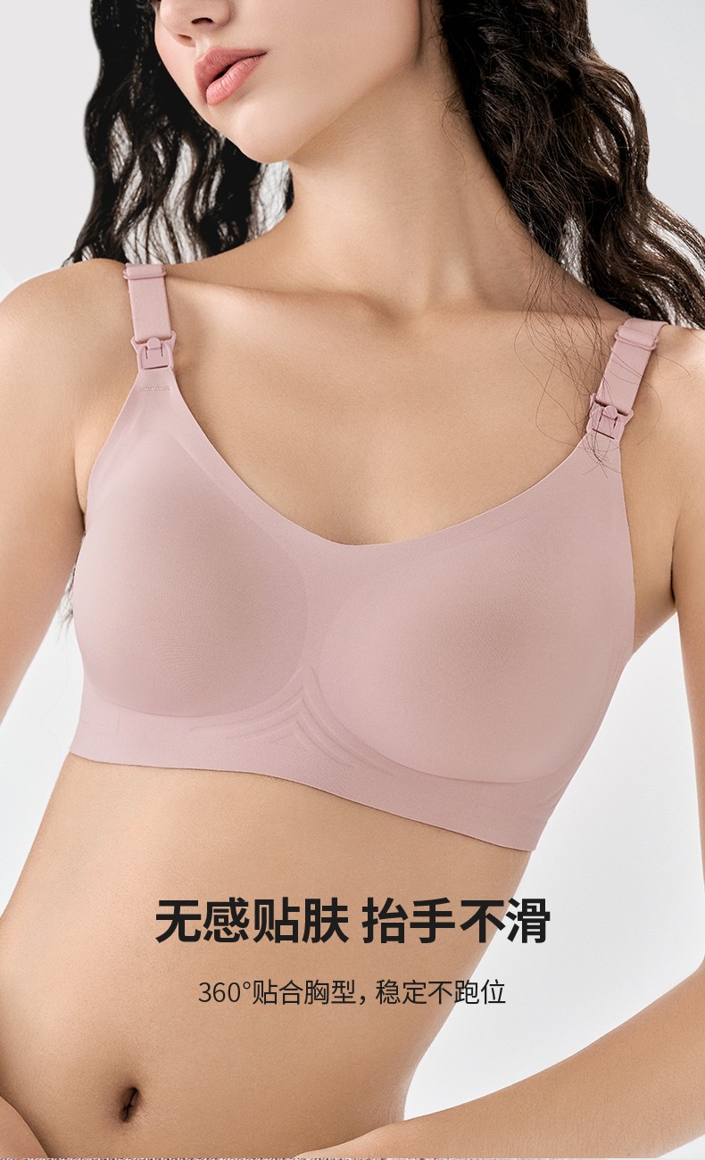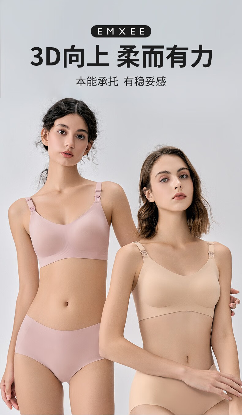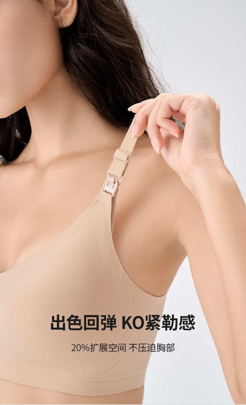 嫚熙(EMXEE)孕妇哺乳内衣喂养胸衣舒适上托聚拢怀孕期喂奶文胸女 月球棕 S