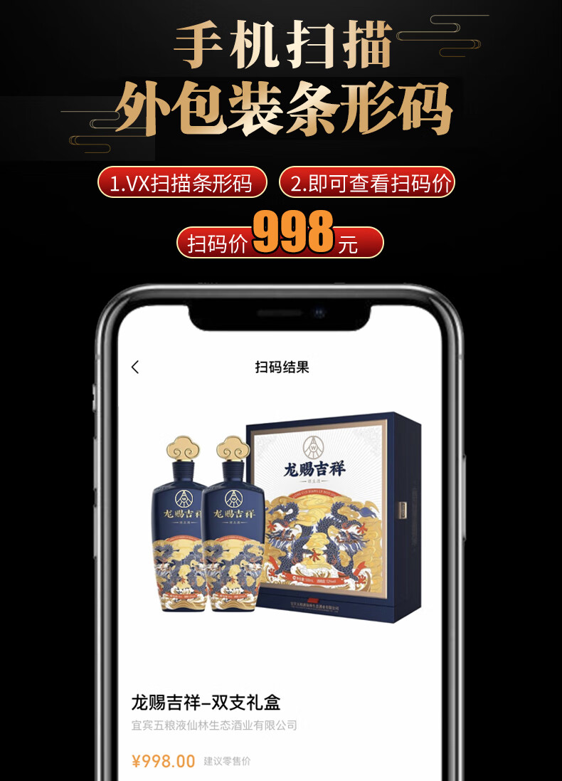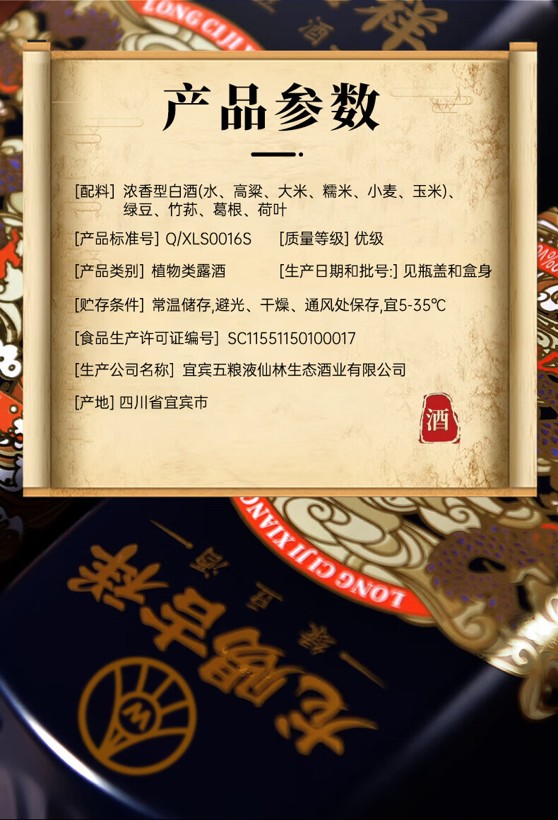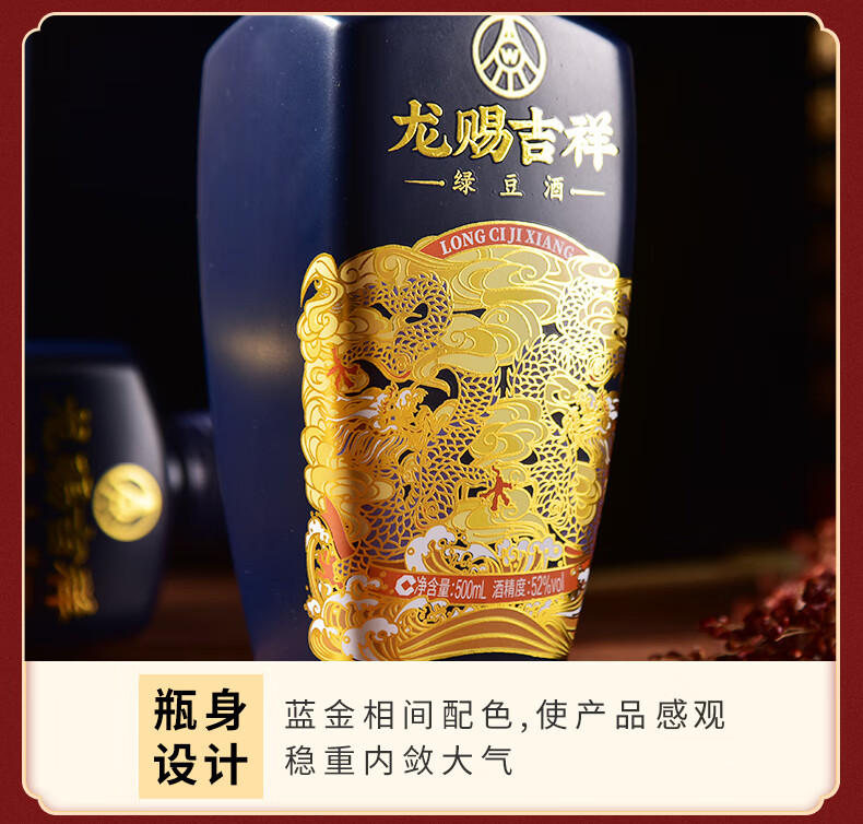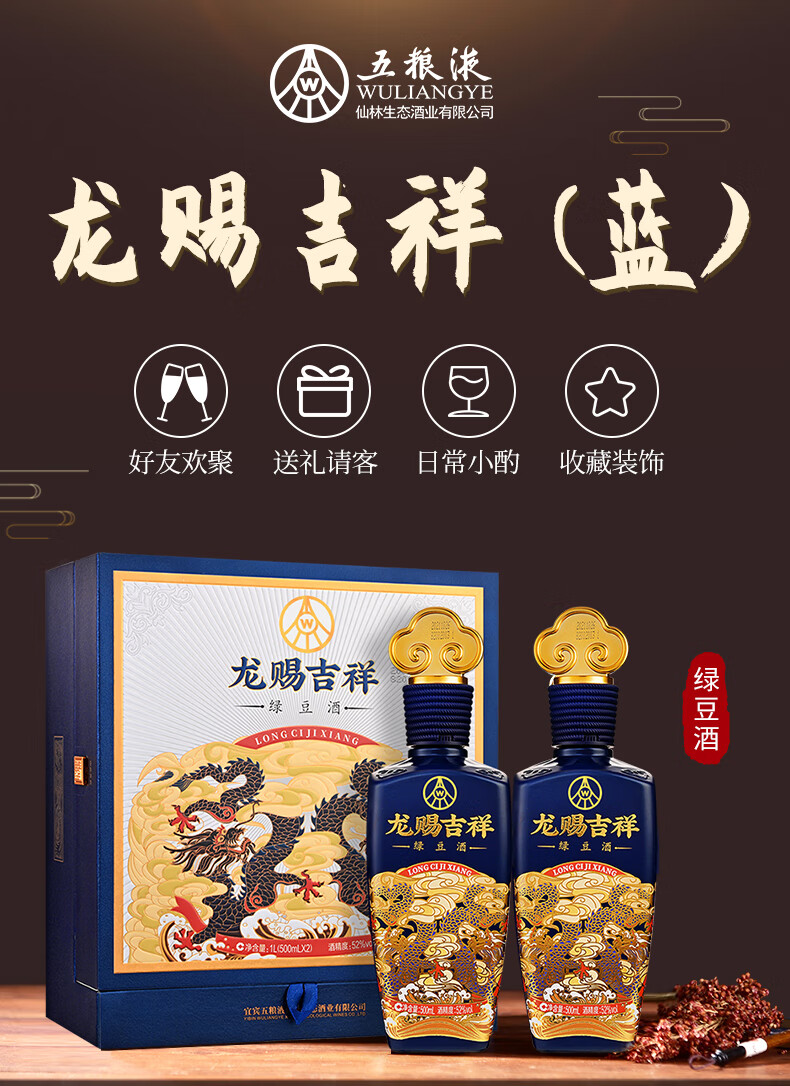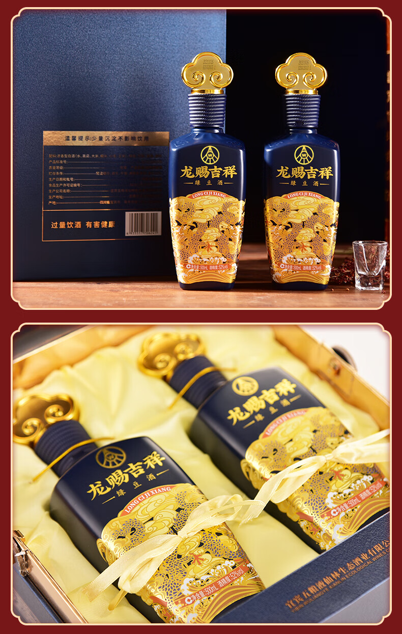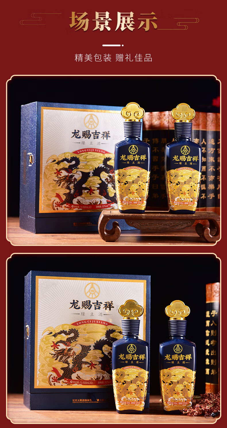 五粮液仙林生态 龙赐吉祥 绿豆酒 52度 500ml*2瓶 礼盒装 中秋送礼