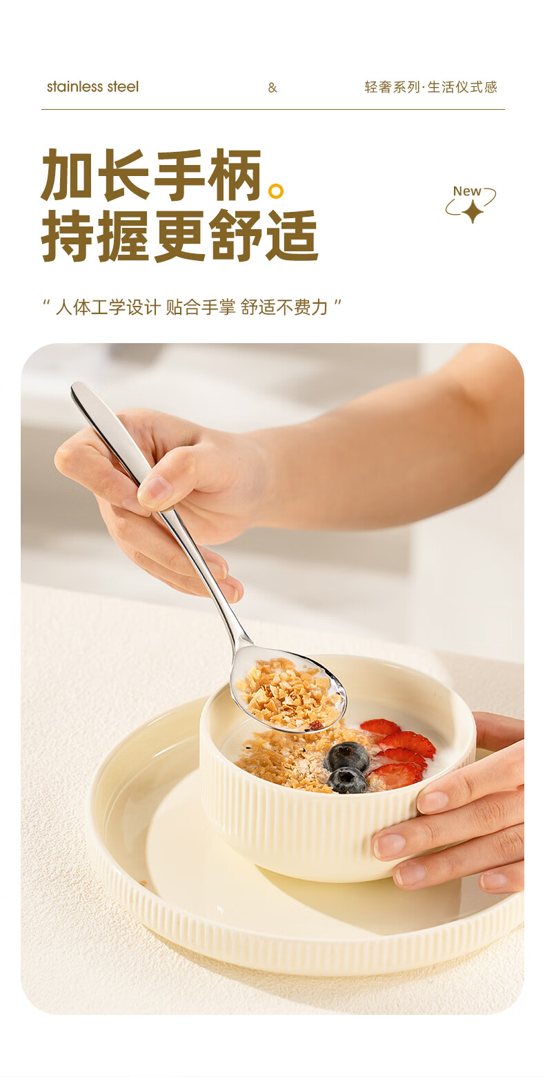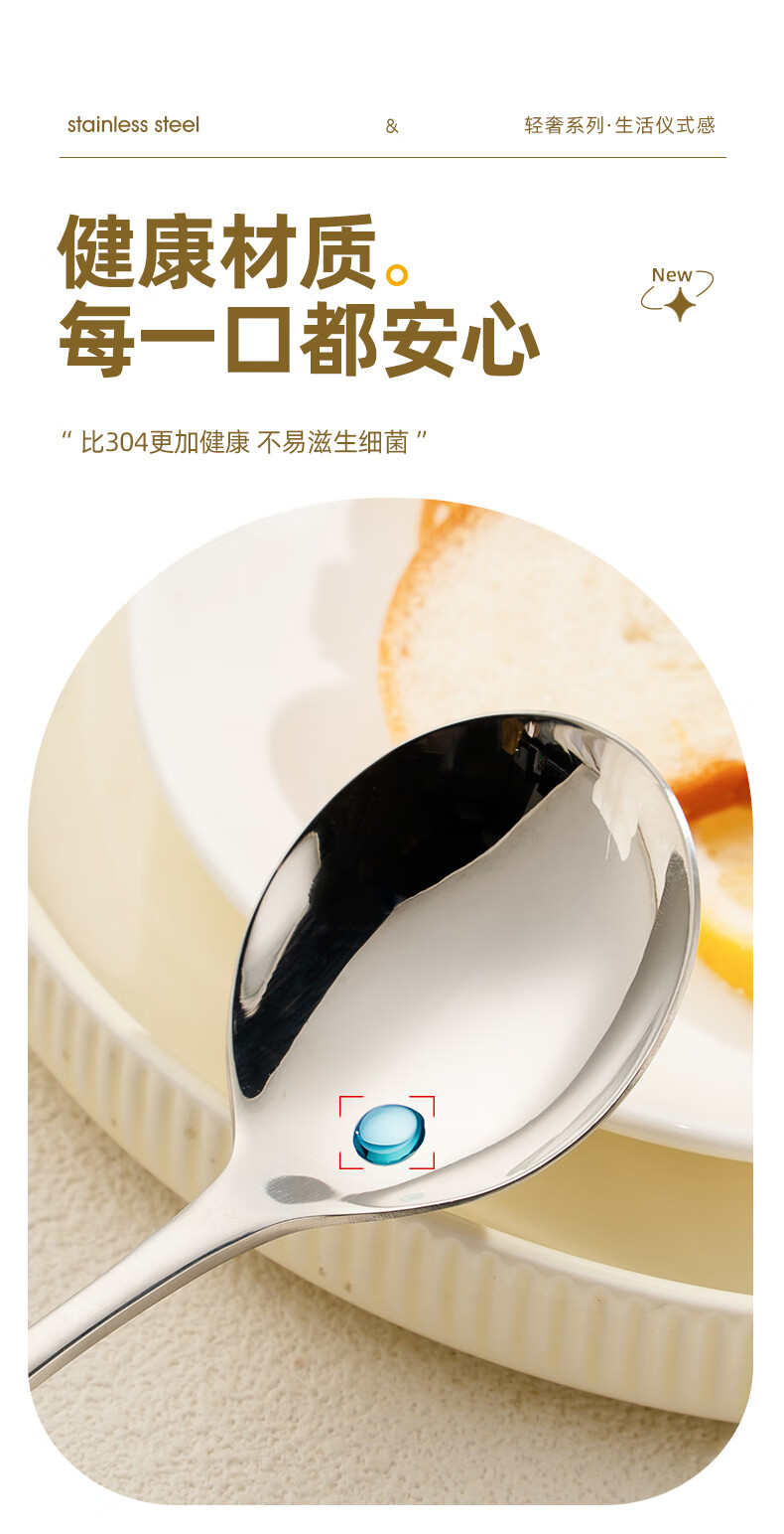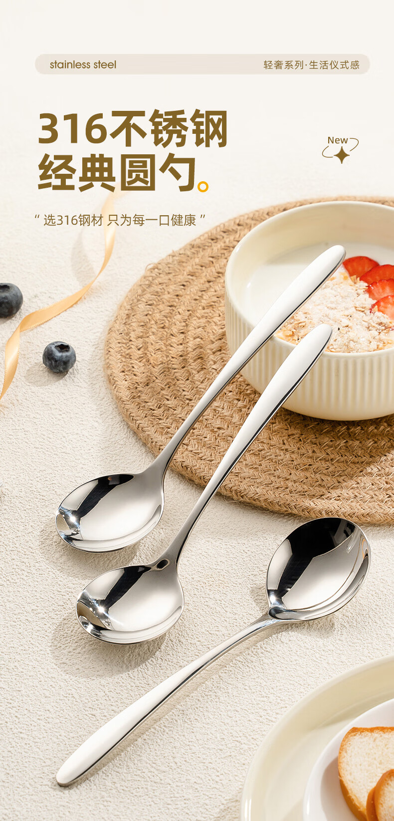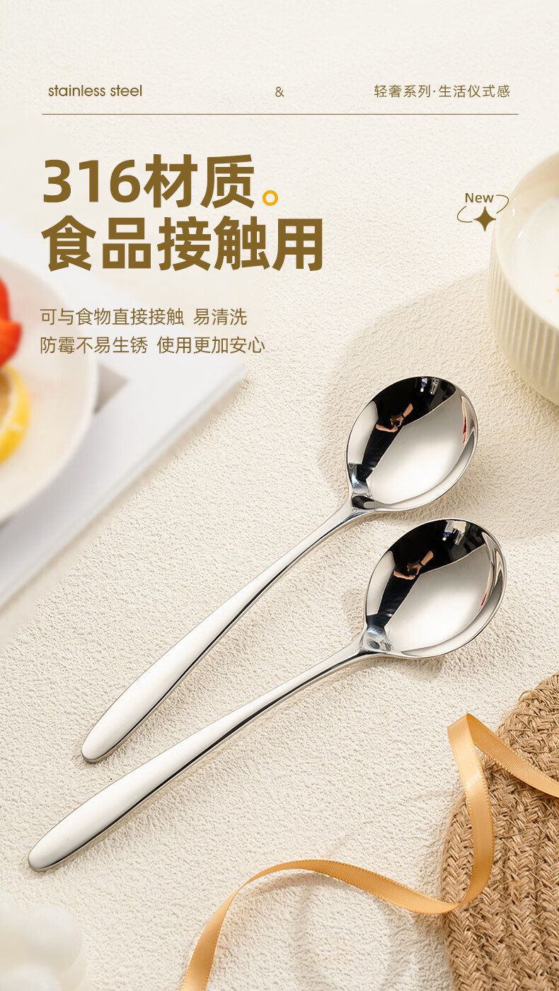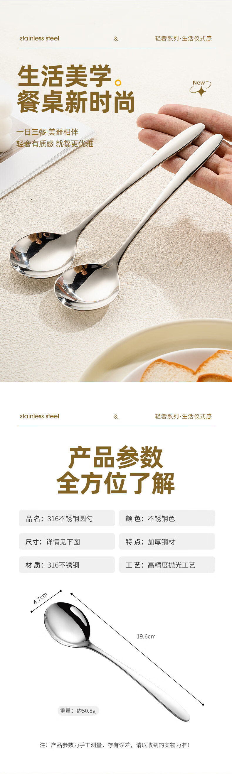 广意316L不锈钢平底勺 家用勺子加大餐勺汤匙饭勺调羹汤勺2只装GY7877