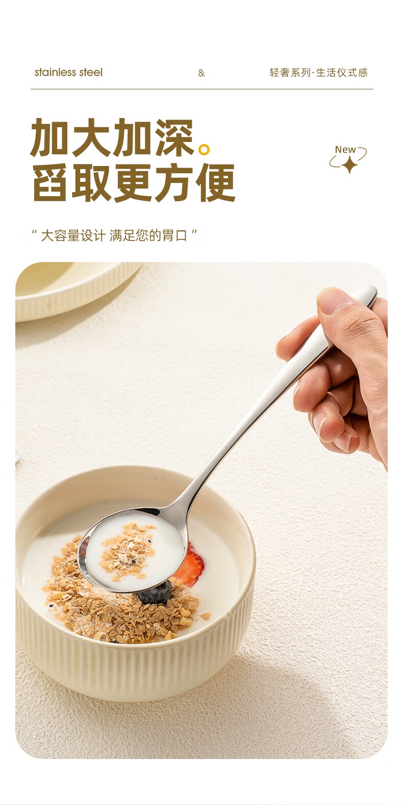 广意316不锈钢勺 家用汤勺吃饭圆底勺子加大加深调羹汤匙2支装GY7749