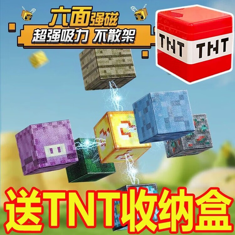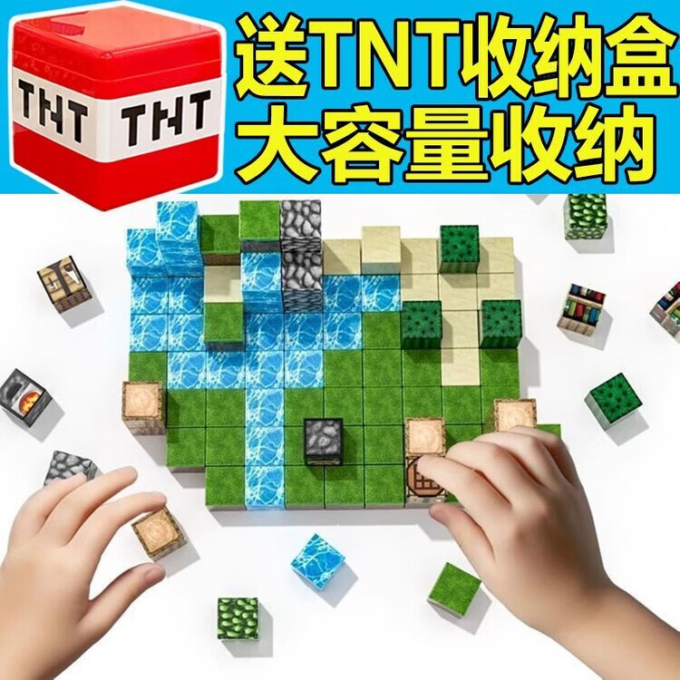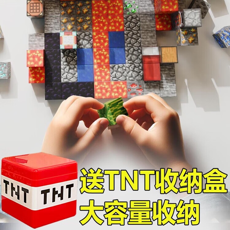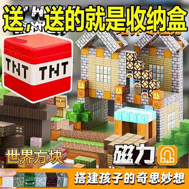 脘铼新品MC我的世界磁力方块DIY磁力积木送收纳盒儿童节玩具礼物 正品MC世界方块【8超强磁6.0新版】 50强磁方块+5公仔【赠TNT收纳桶+图册】