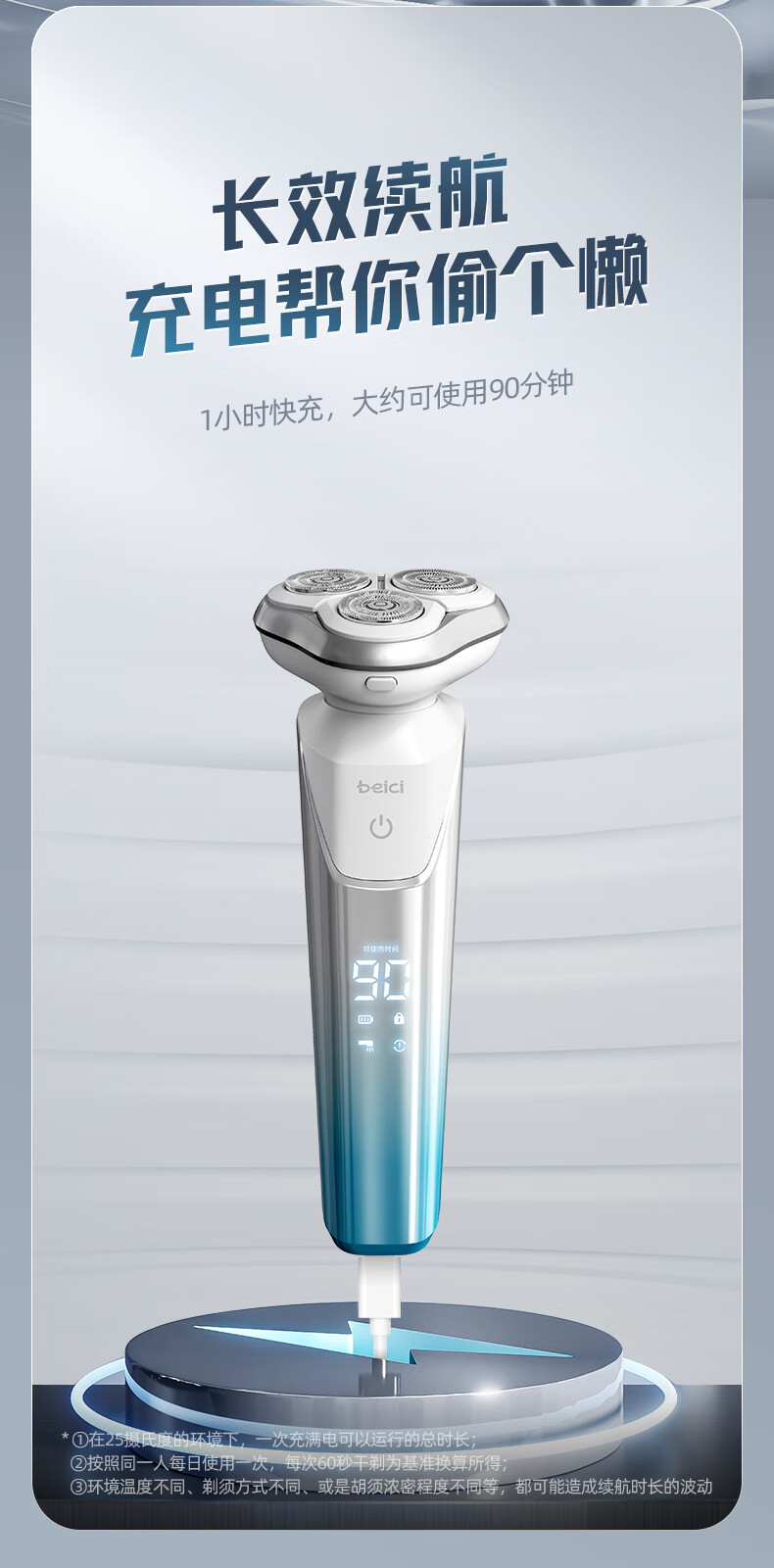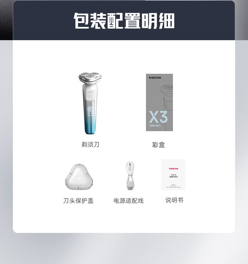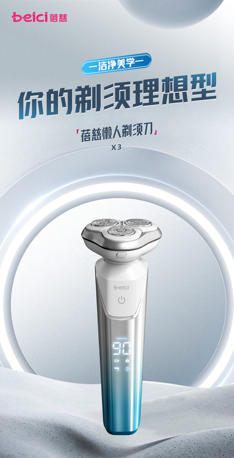 蓓慈(beici)剃须刀电动刮胡刀旋转式男士胡须刀送男友送老公送父亲生日礼物中秋节礼物X3