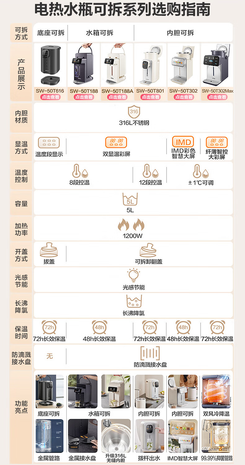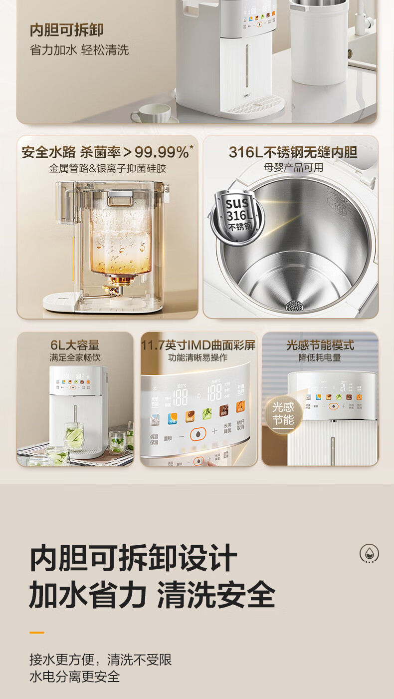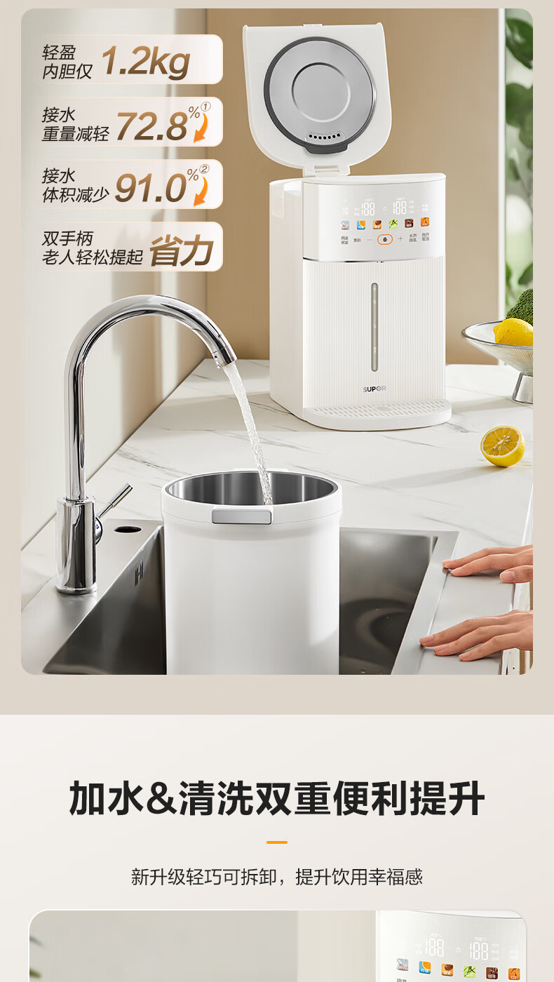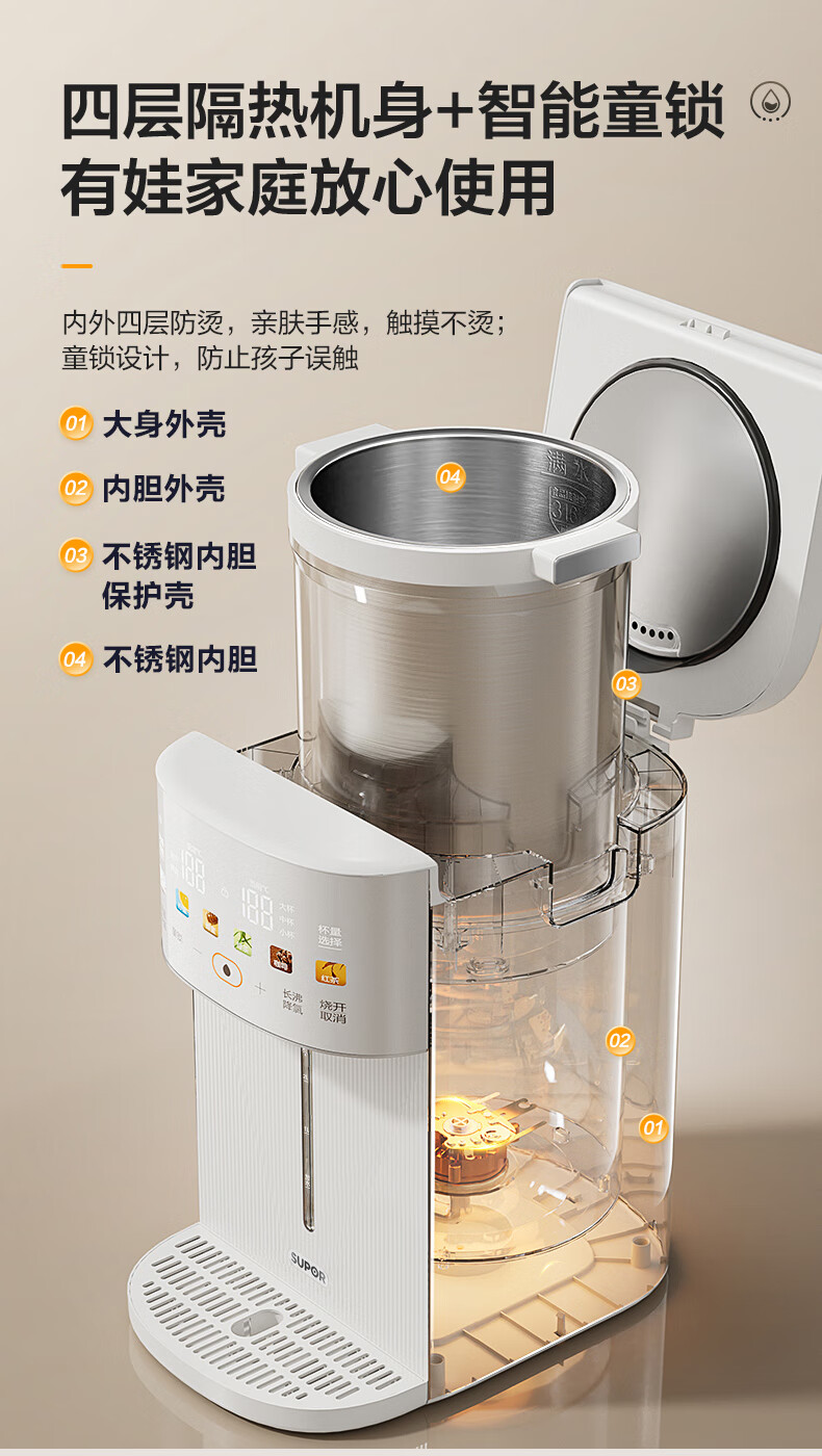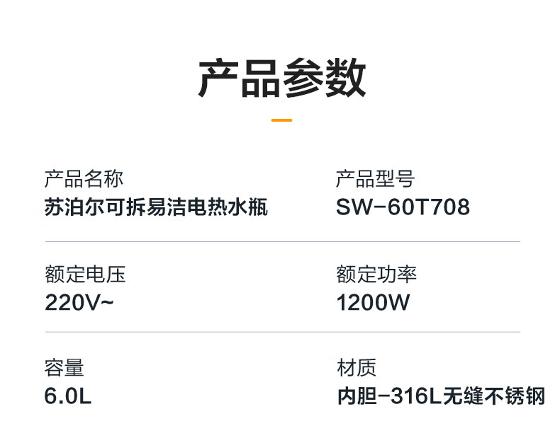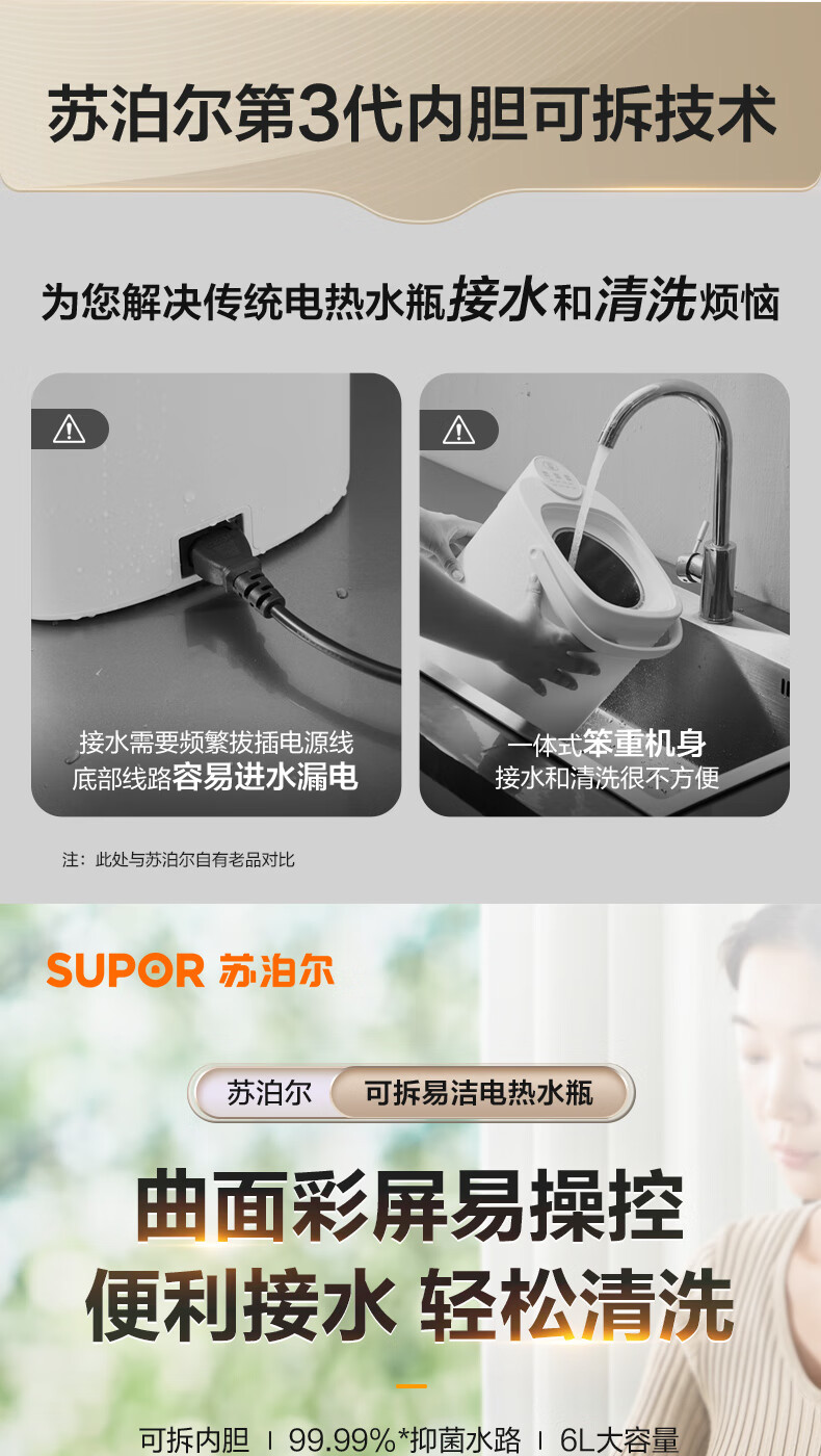 苏泊尔(SUPOR)电热水瓶6L烧水壶电热水壶316L不锈钢 保温恒温光感节能精准控温触控彩屏饮水机SW-60T708
