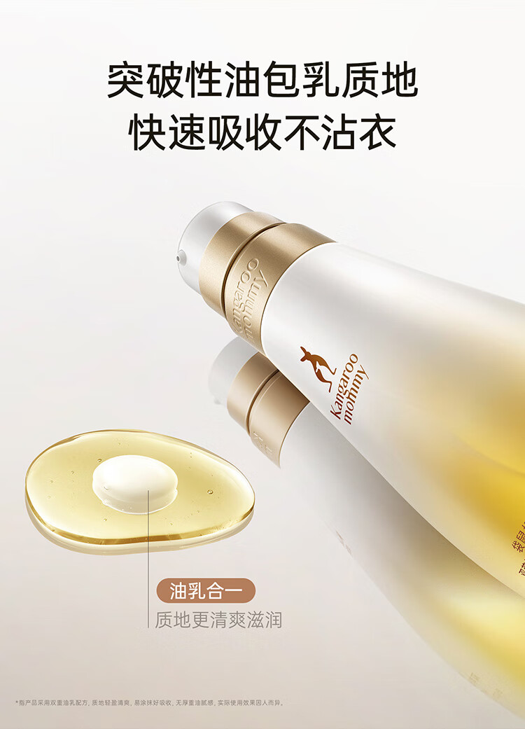 袋鼠妈妈妊娠油准孕妇预防淡化腹部妊辰纹路紧致修护双萃身体乳精华油套装 【淡纹修护】精华油乳套装