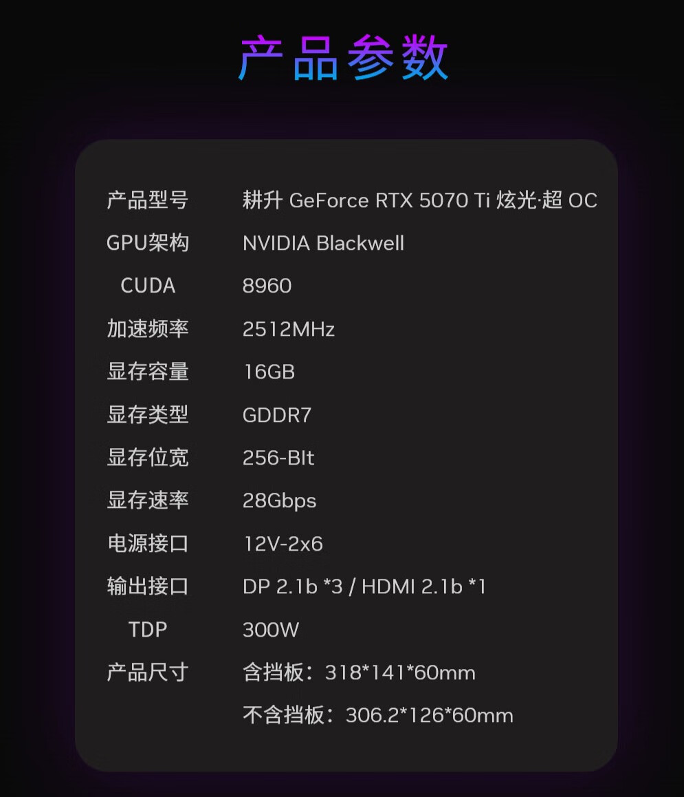 耕升GeForce RTX 5070 Ti 炫光·超 OC 16G游戏显卡 DLSS 4 电竞游戏/设计剪辑/AI本地部署/直播娱乐