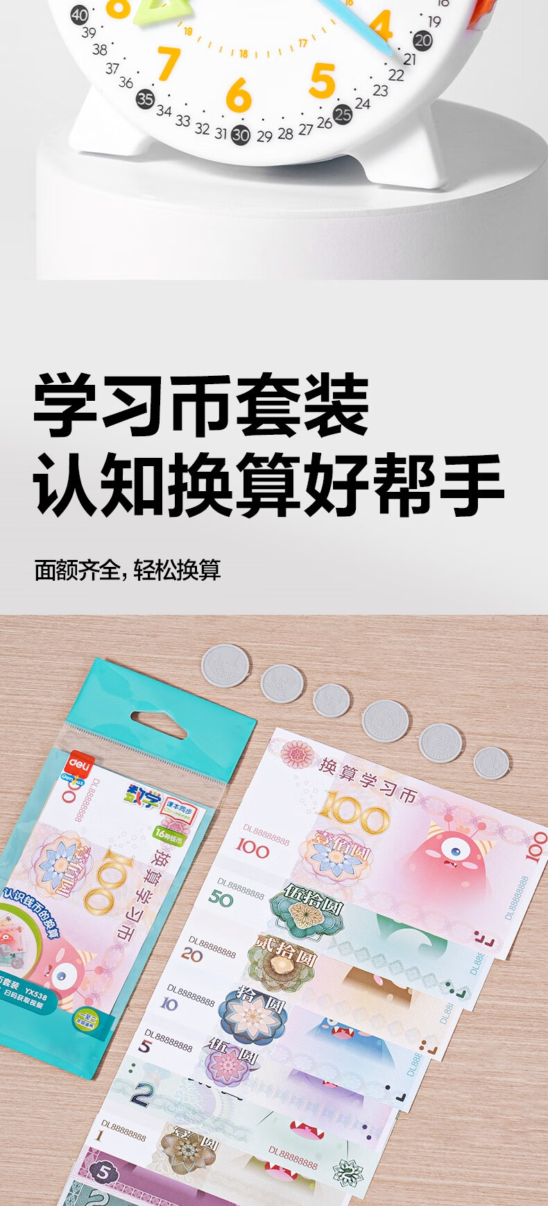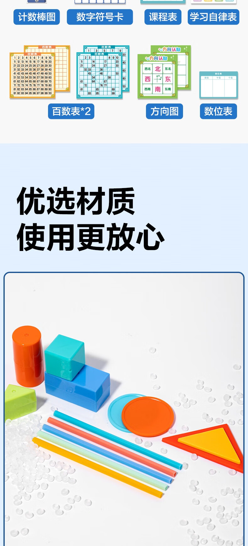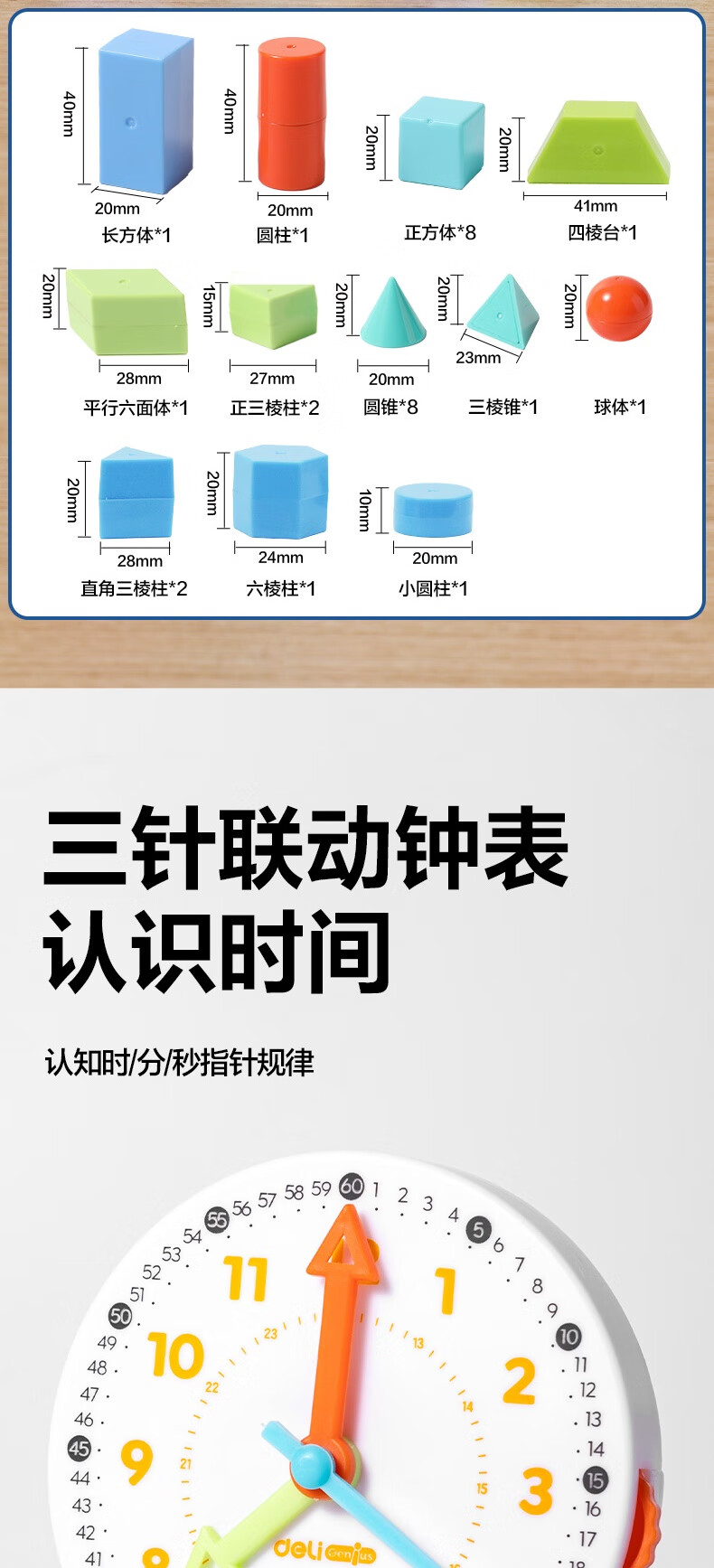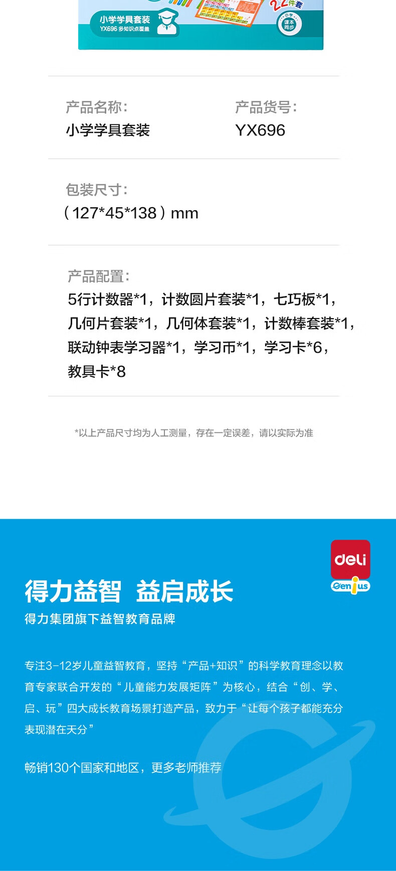 得力(deli)1-2年级小学数学学具套装教材同步计数器计数棒立体几何知识卡片学习卡开学季文具22件套