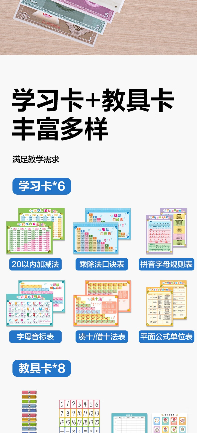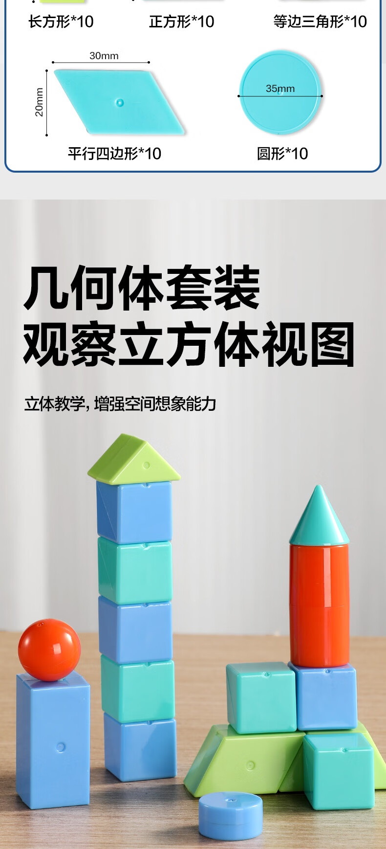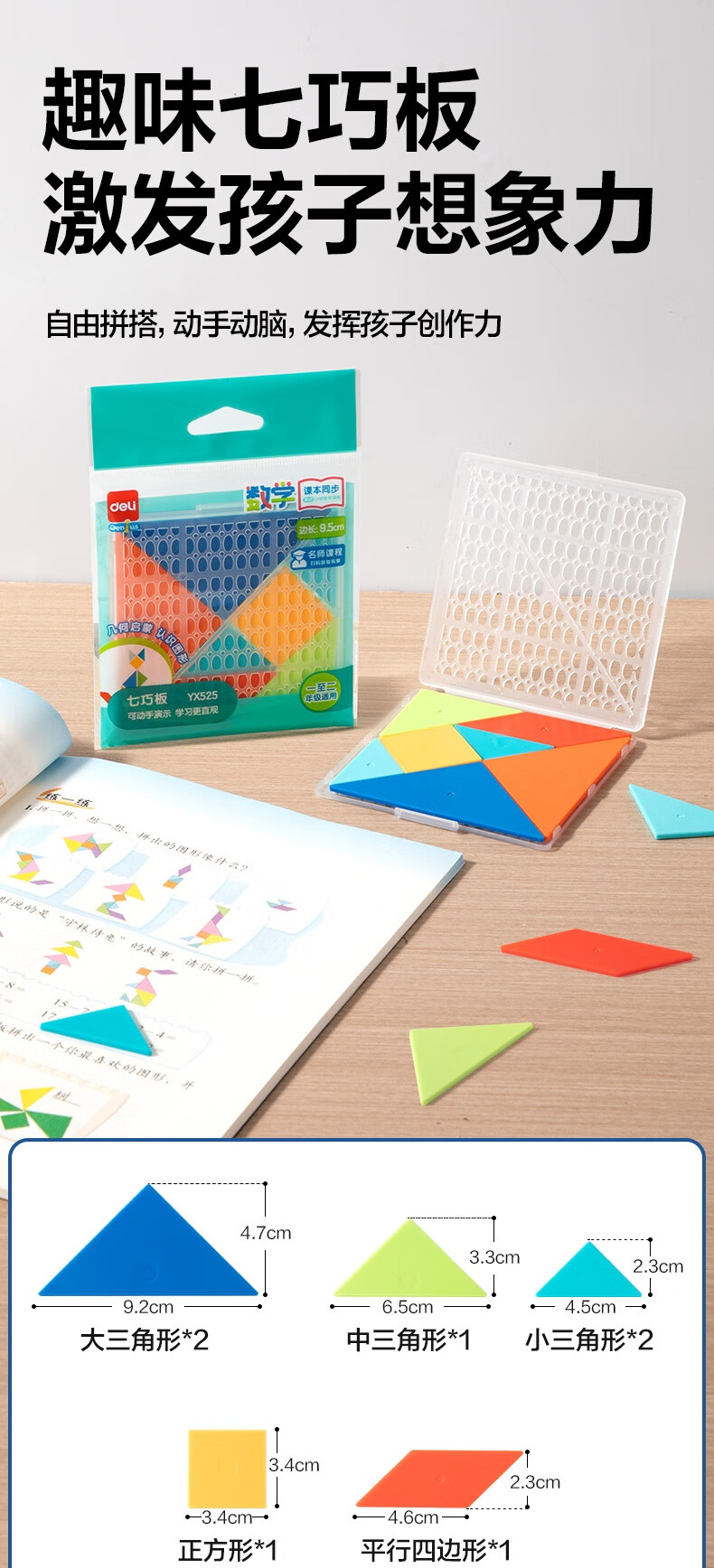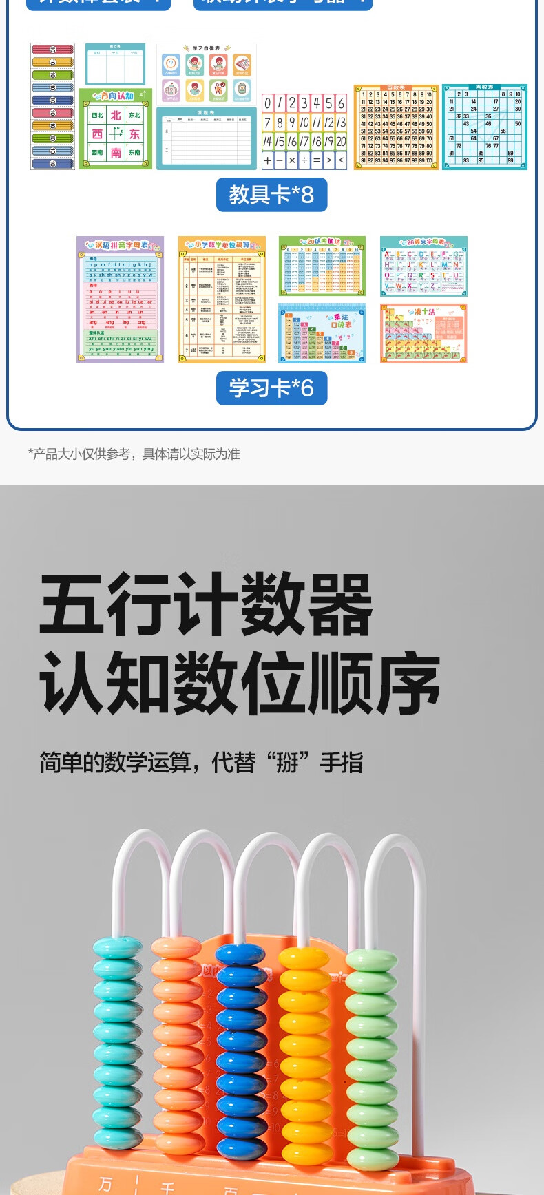 得力(deli)1-2年级小学数学学具套装教材同步计数器计数棒立体几何知识卡片学习卡开学季文具22件套