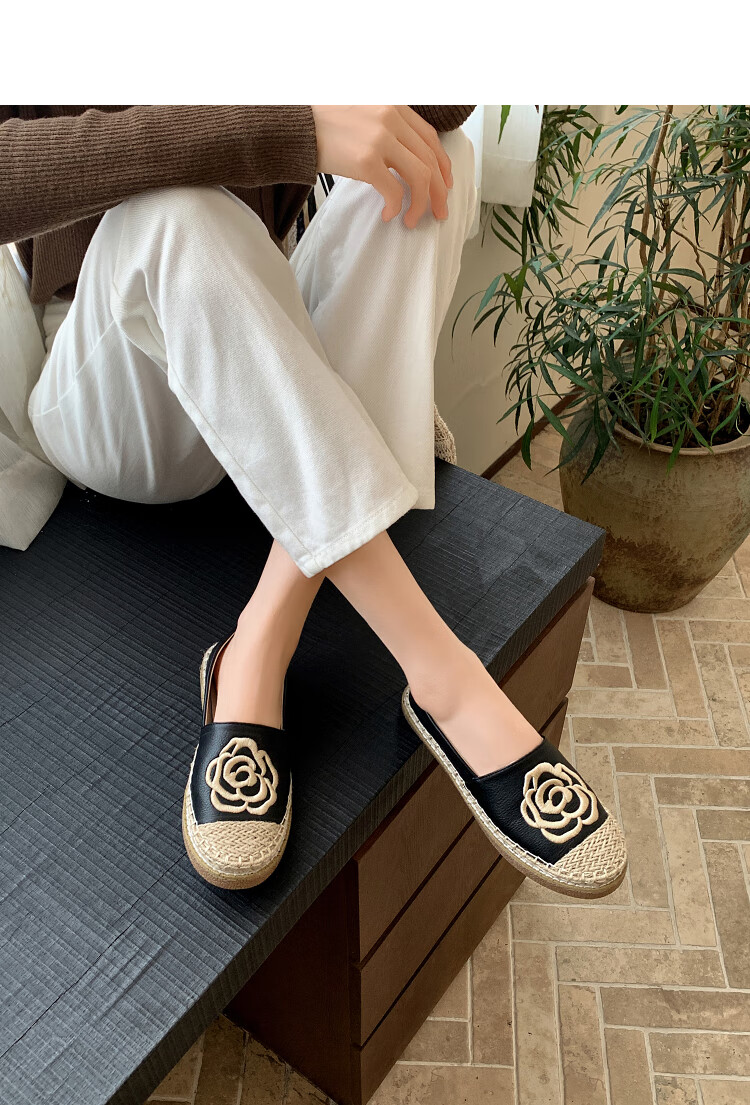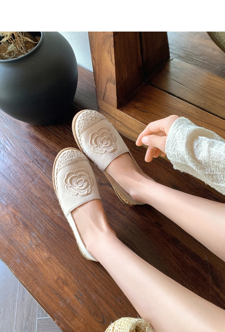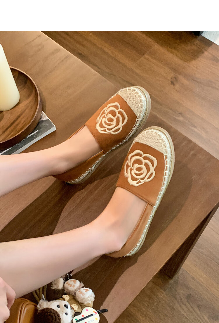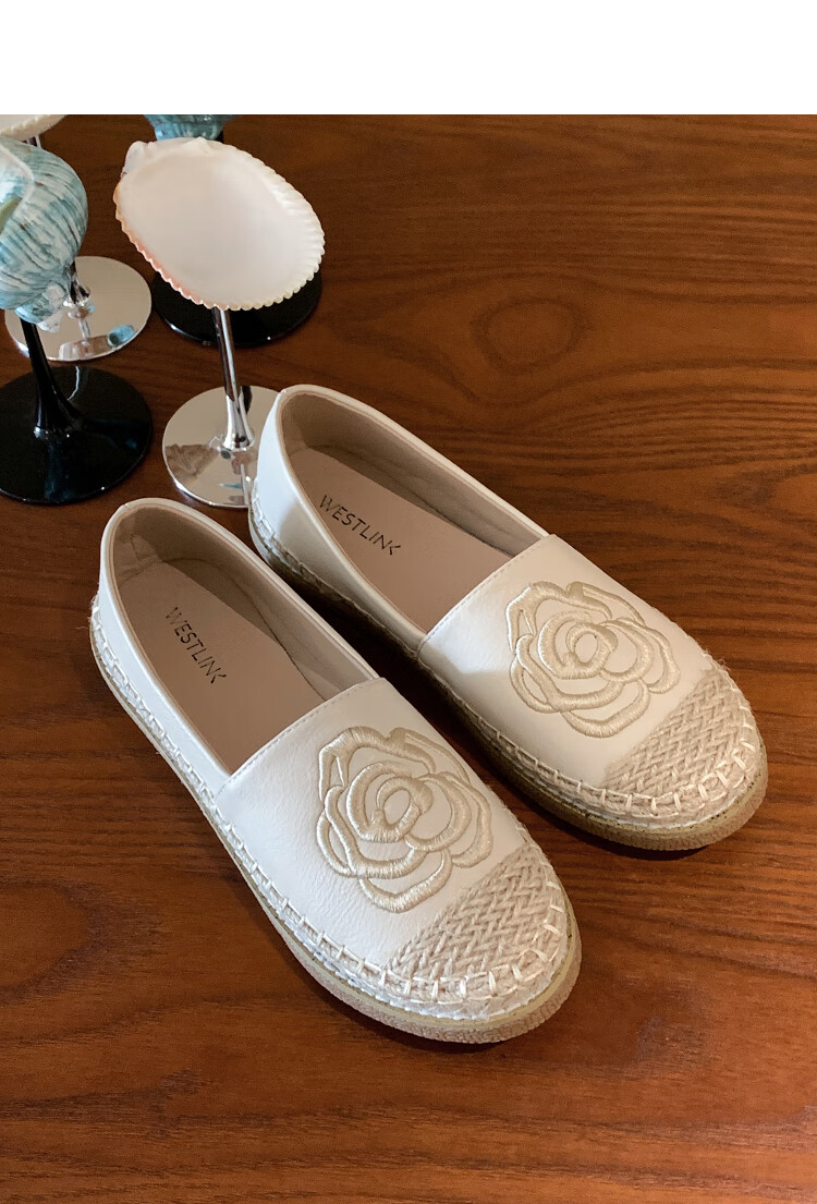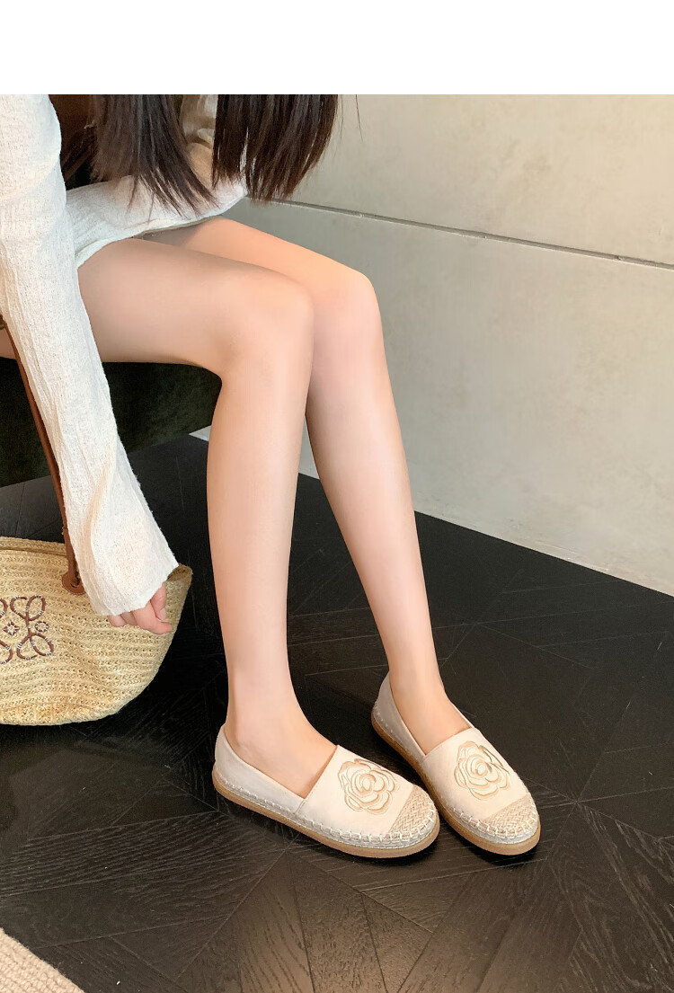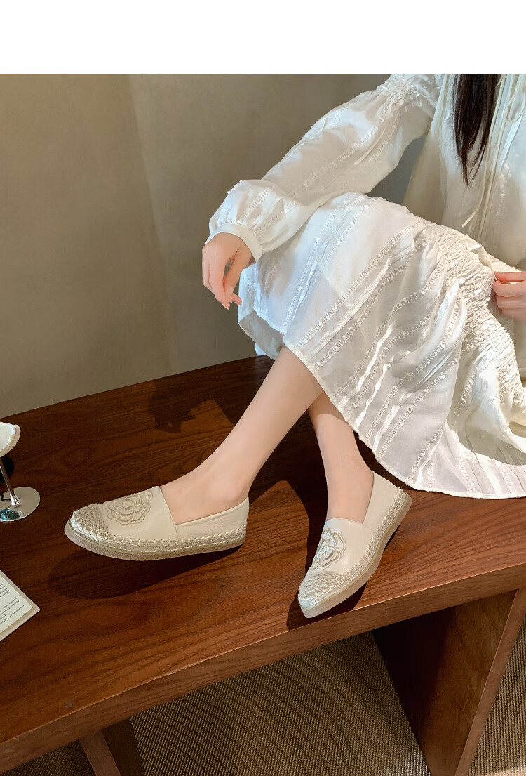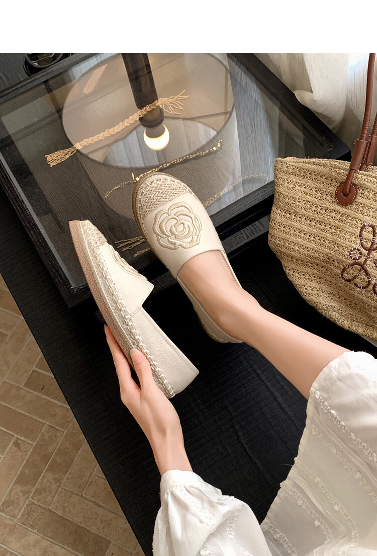 西遇一脚蹬渔夫鞋女2025新款秋季复古花朵小香风单鞋白色平底鞋 杏色 38 (240)