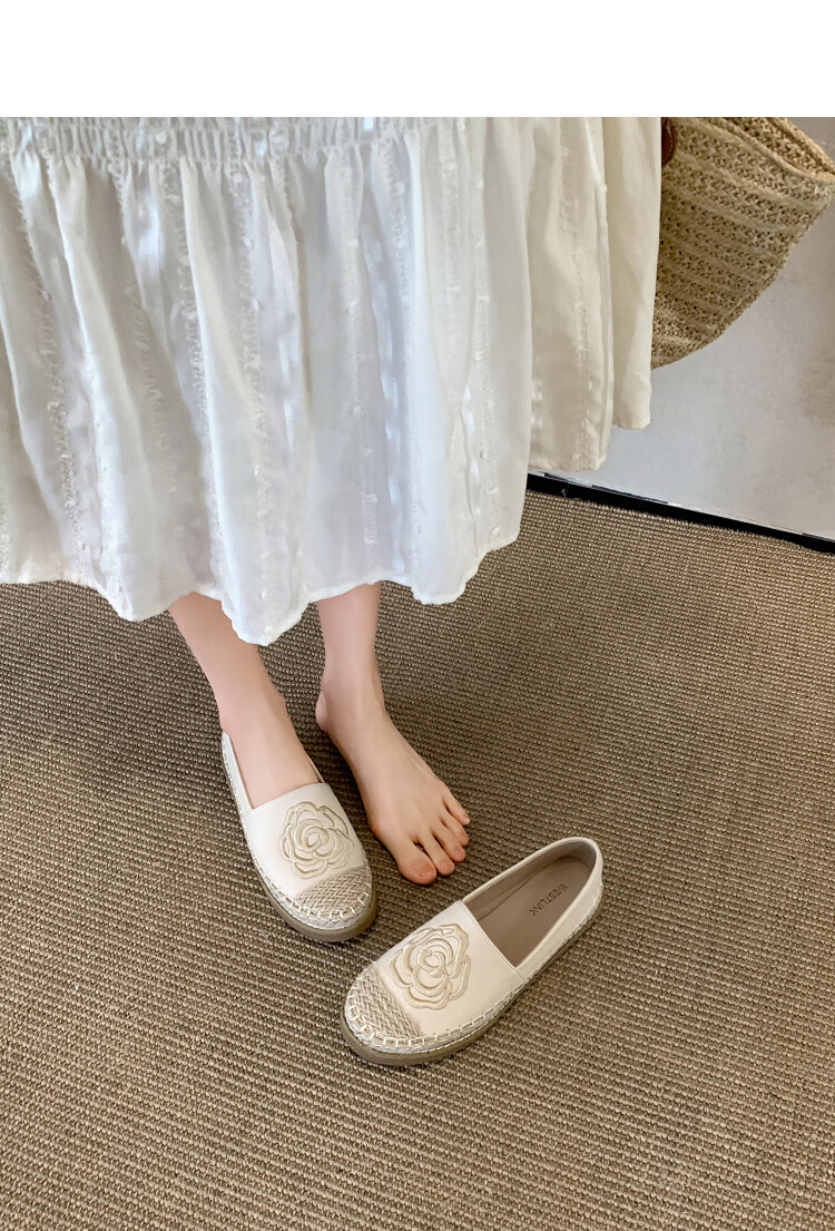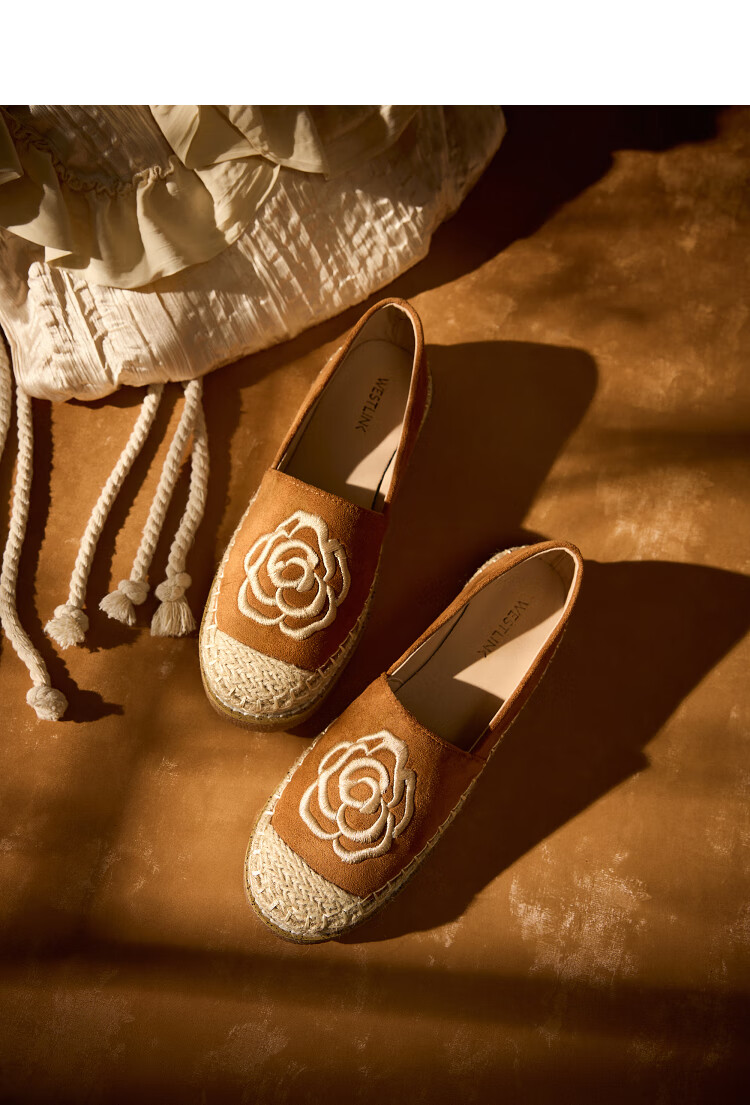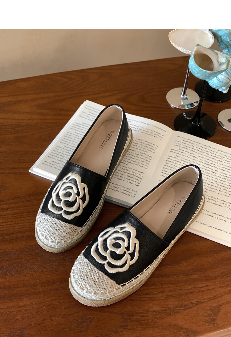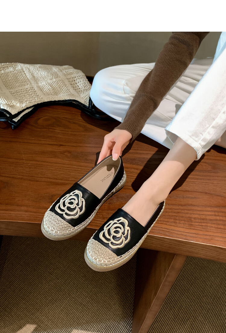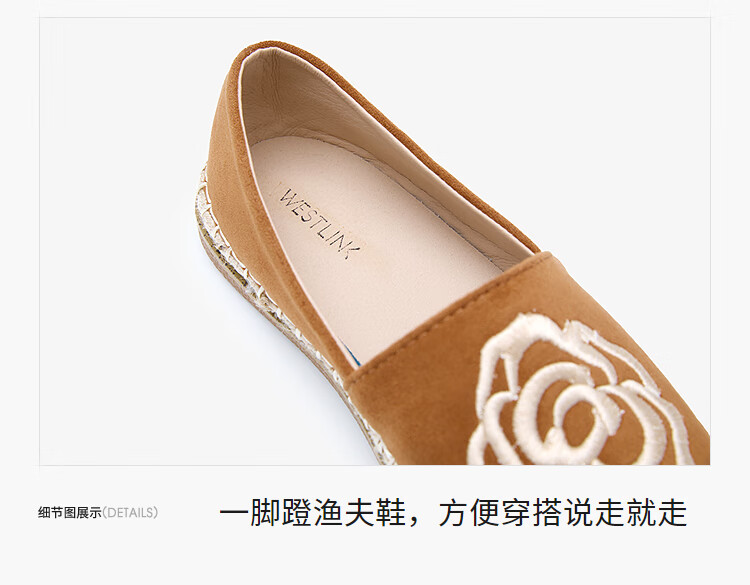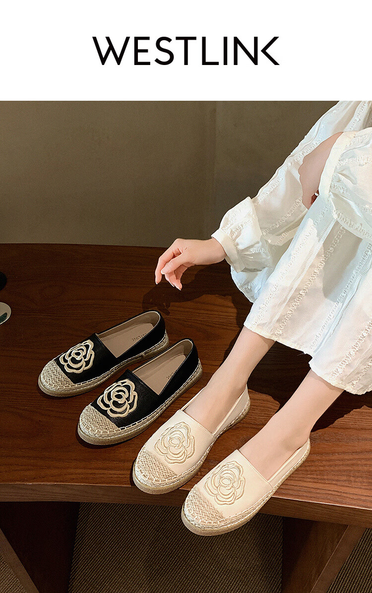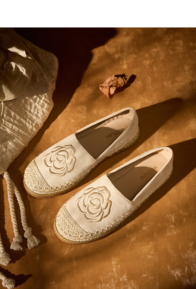 西遇一脚蹬渔夫鞋女2025新款秋季复古花朵小香风单鞋白色平底鞋 杏色 38 (240)