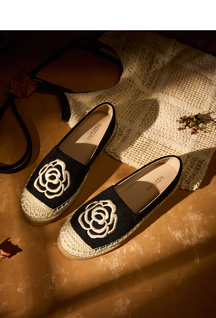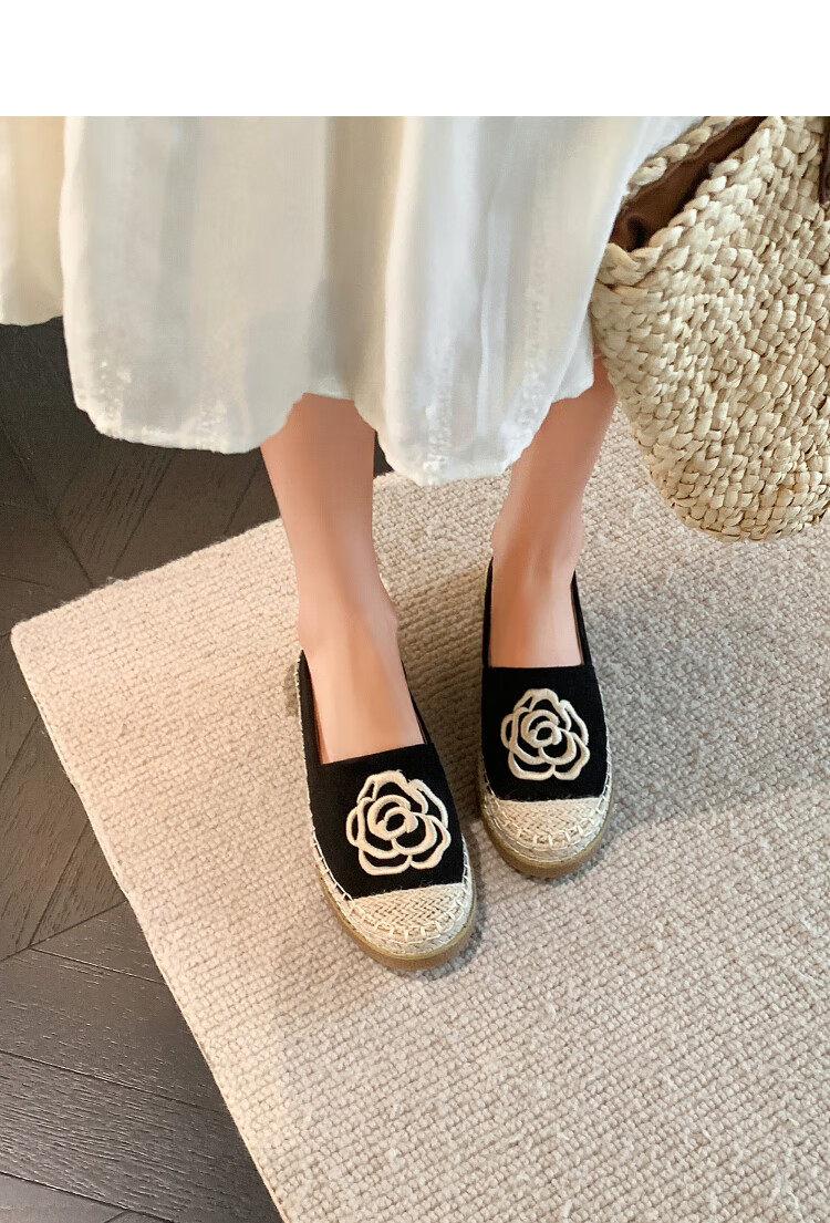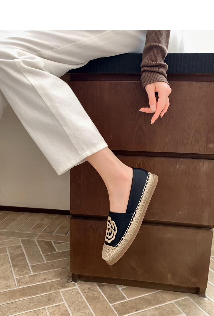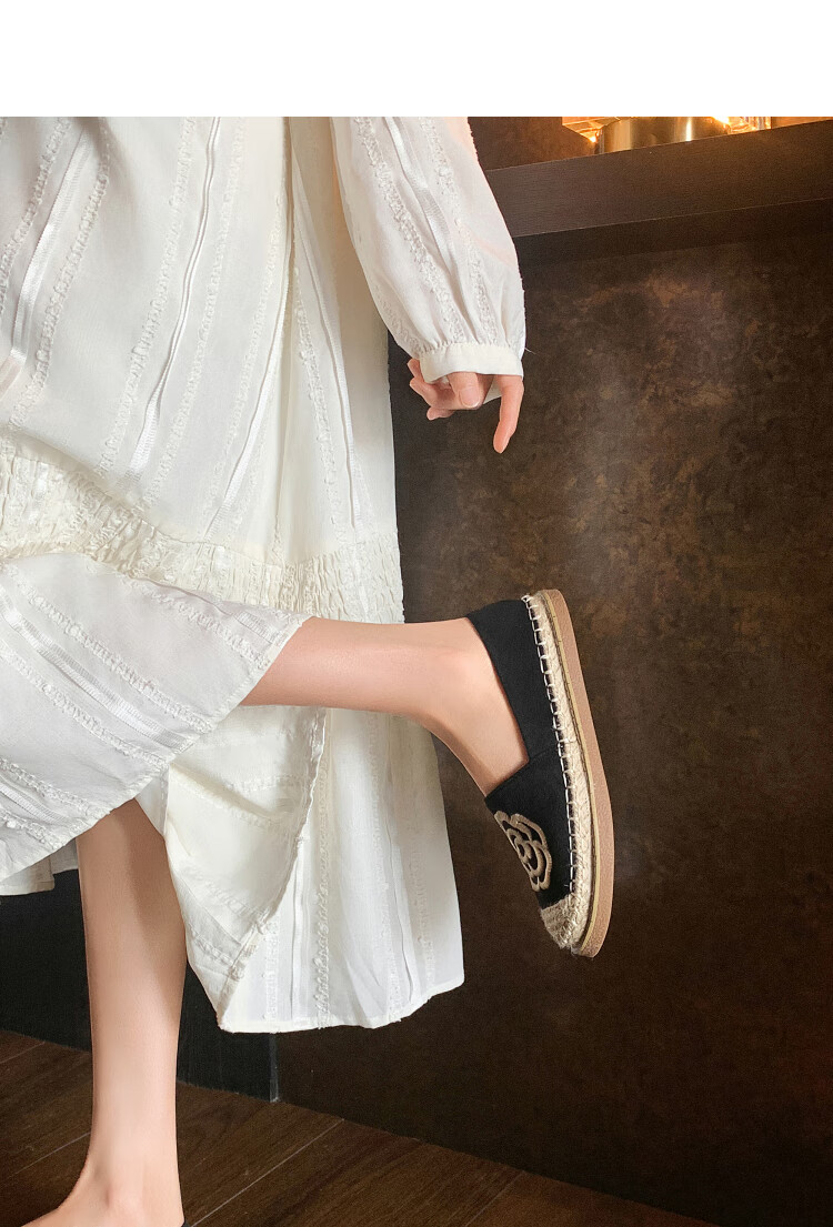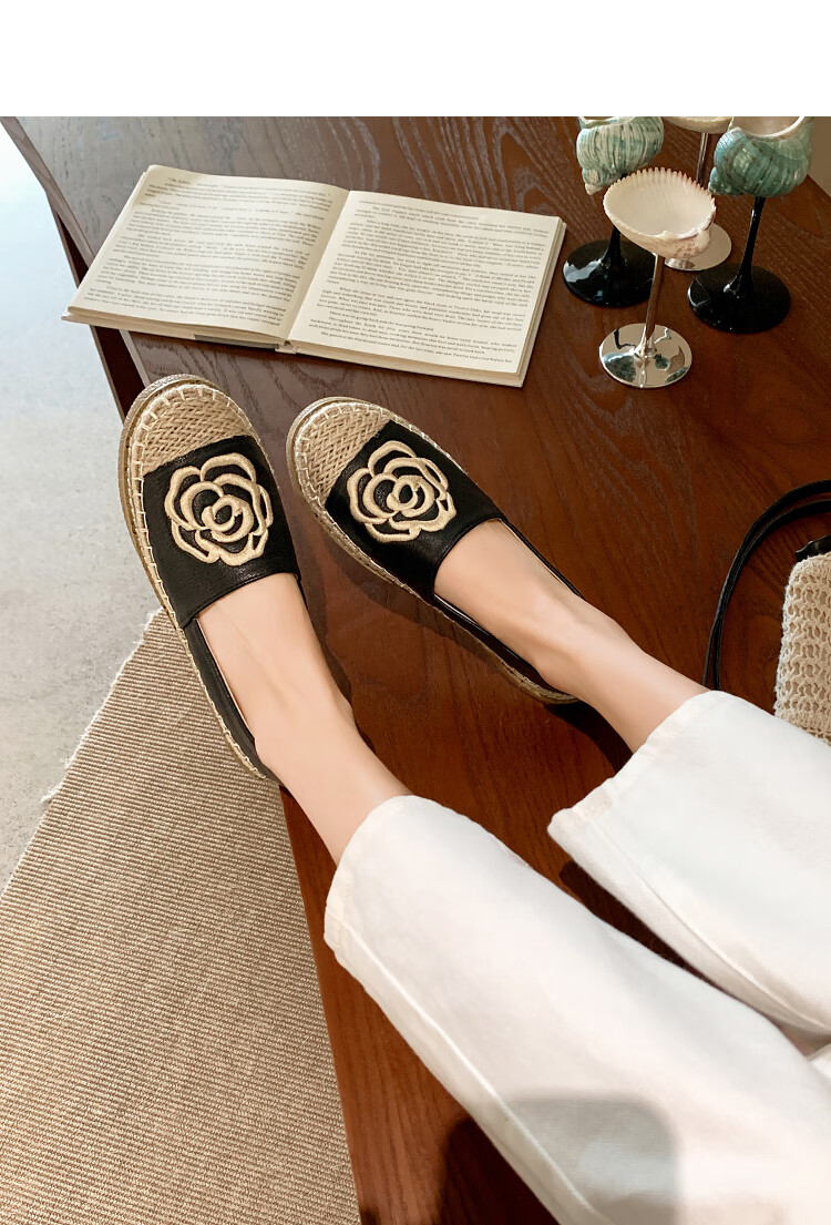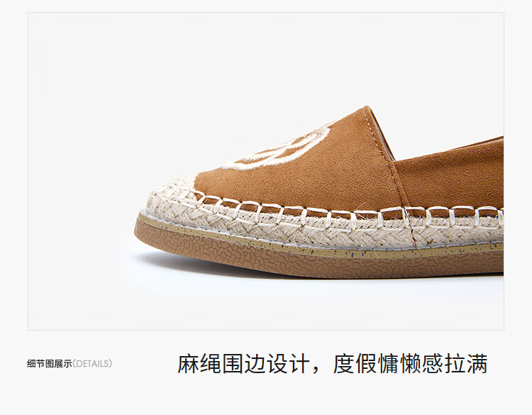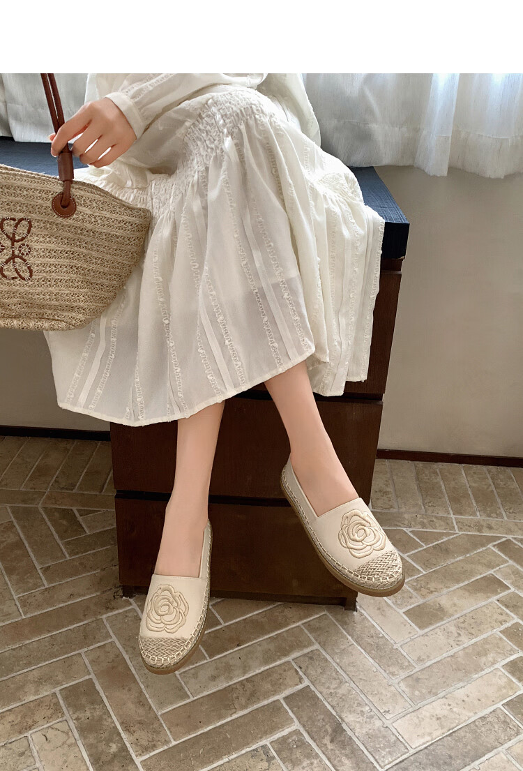 西遇一脚蹬渔夫鞋女2025新款秋季复古花朵小香风单鞋白色平底鞋 杏色 38 (240)