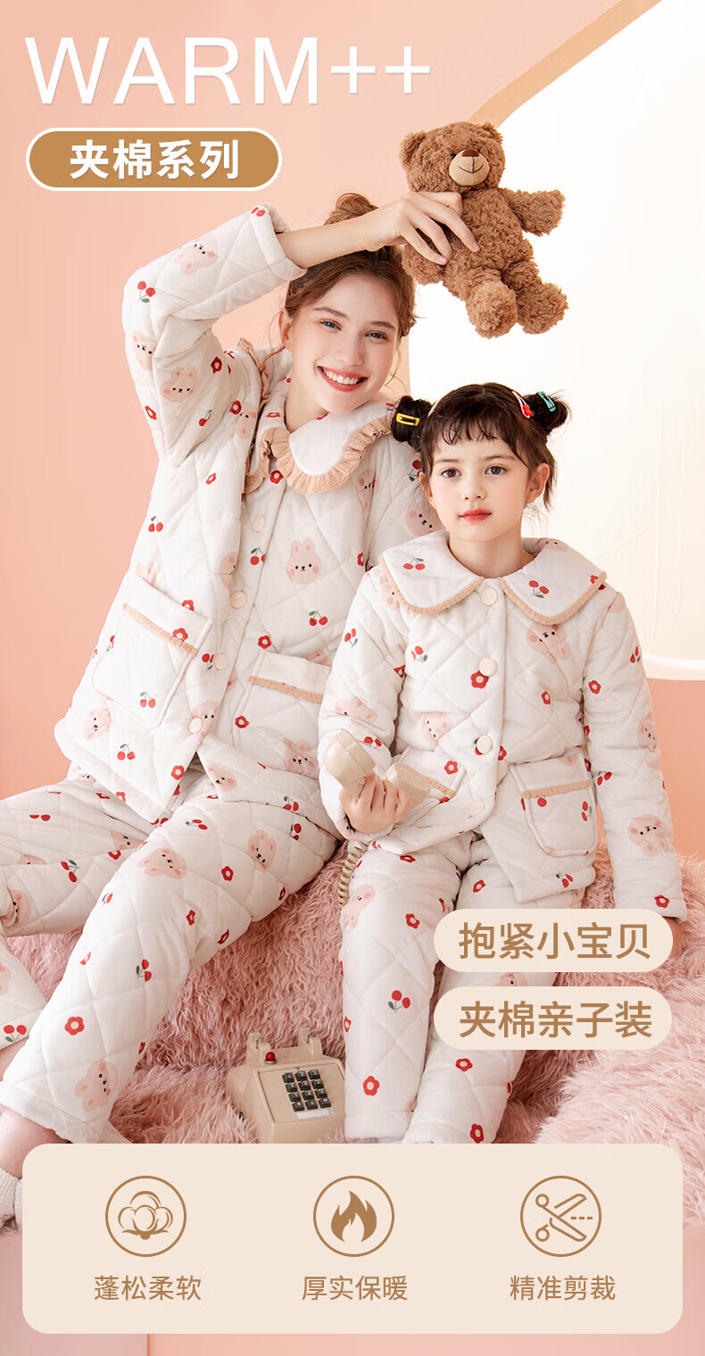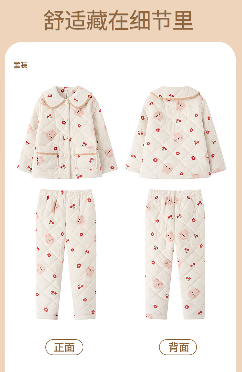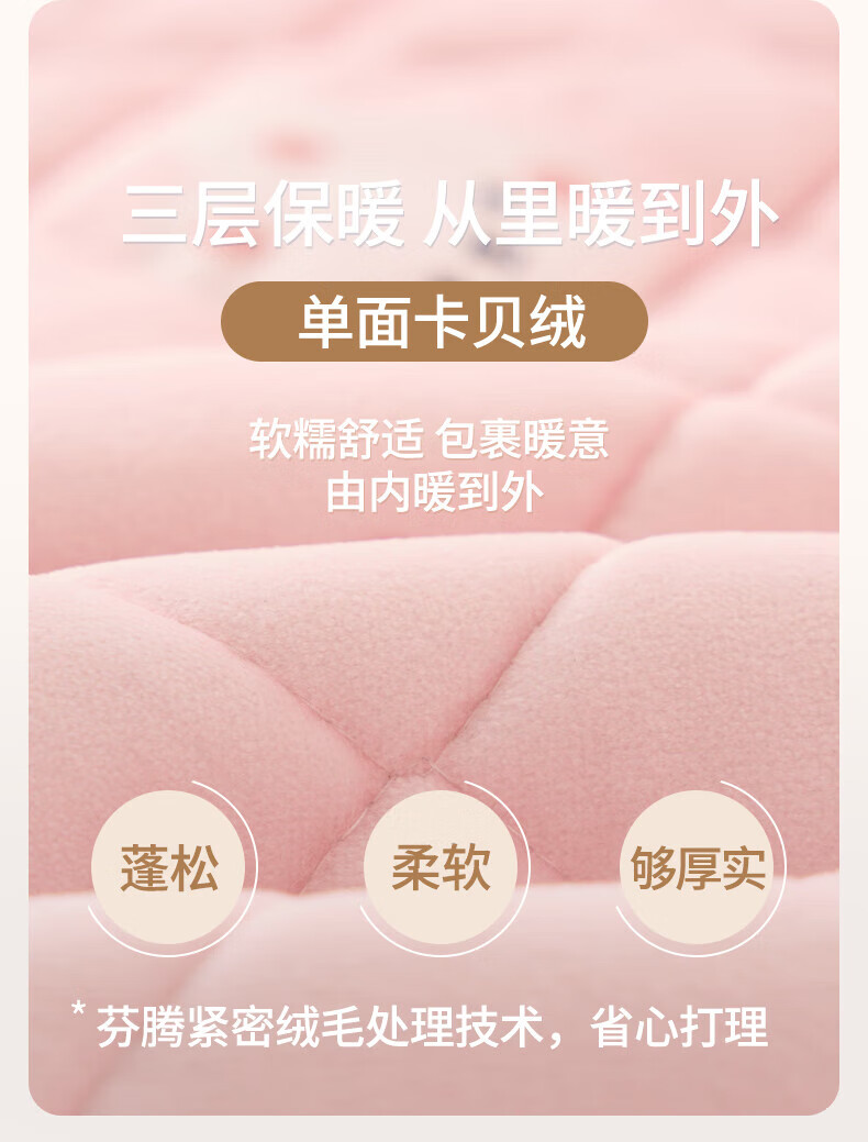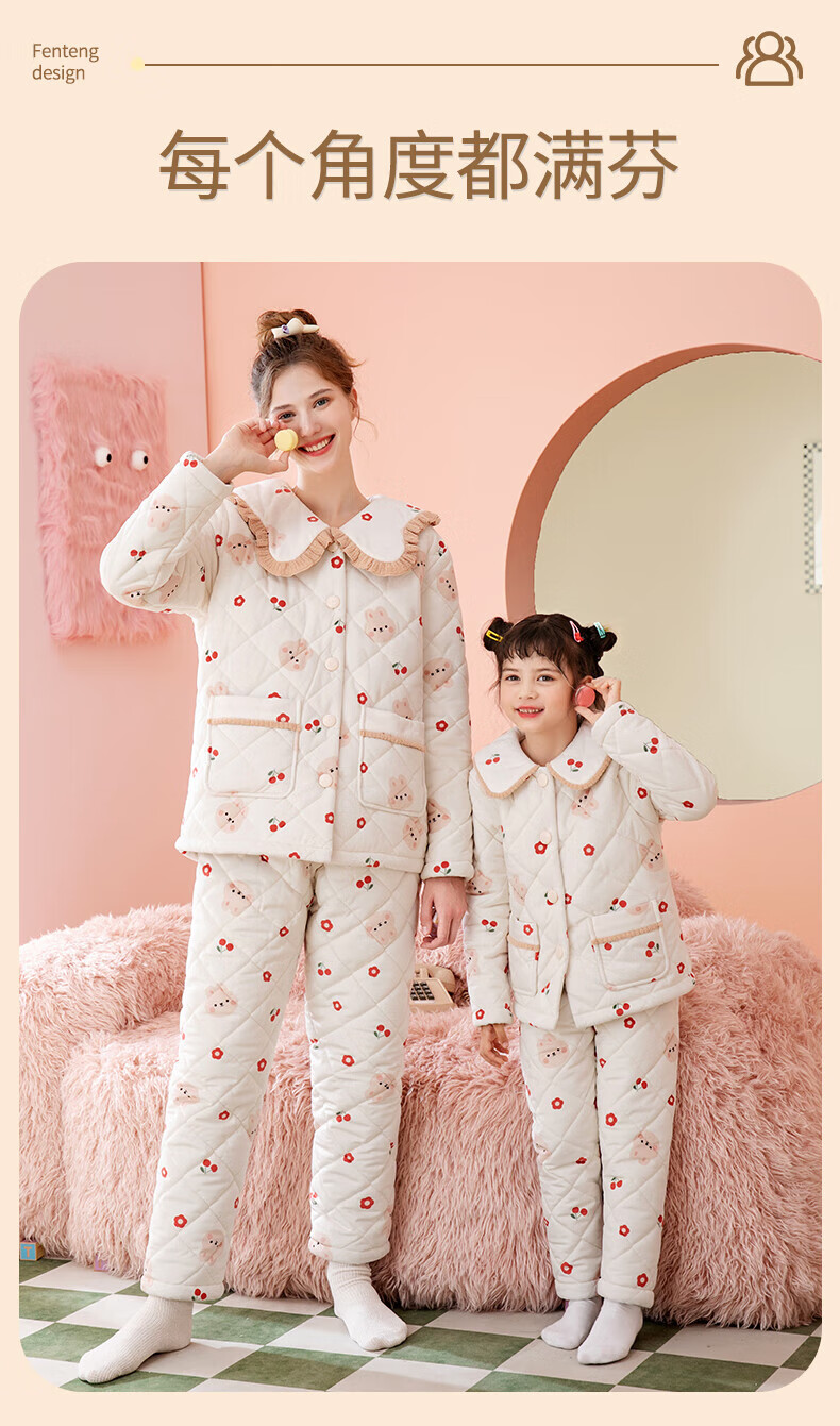 芬腾睡衣女童秋冬夹棉加厚娃娃领开衫暖绒防静电家居服童装套装1 樱花粉 130