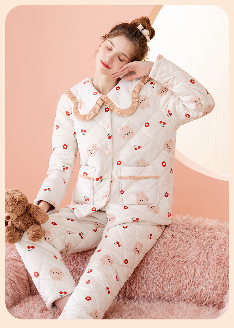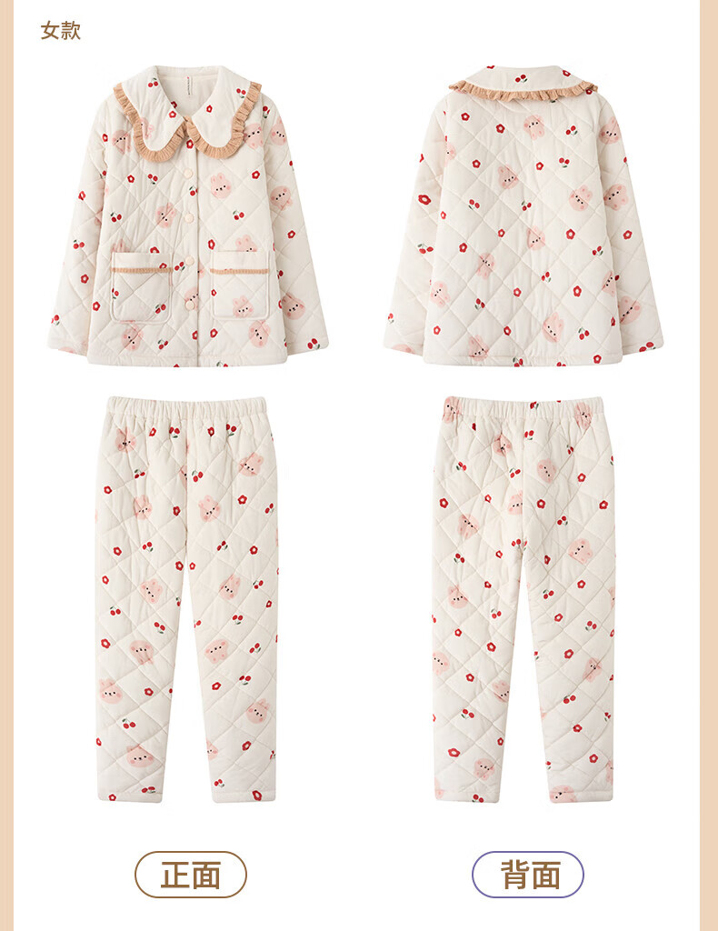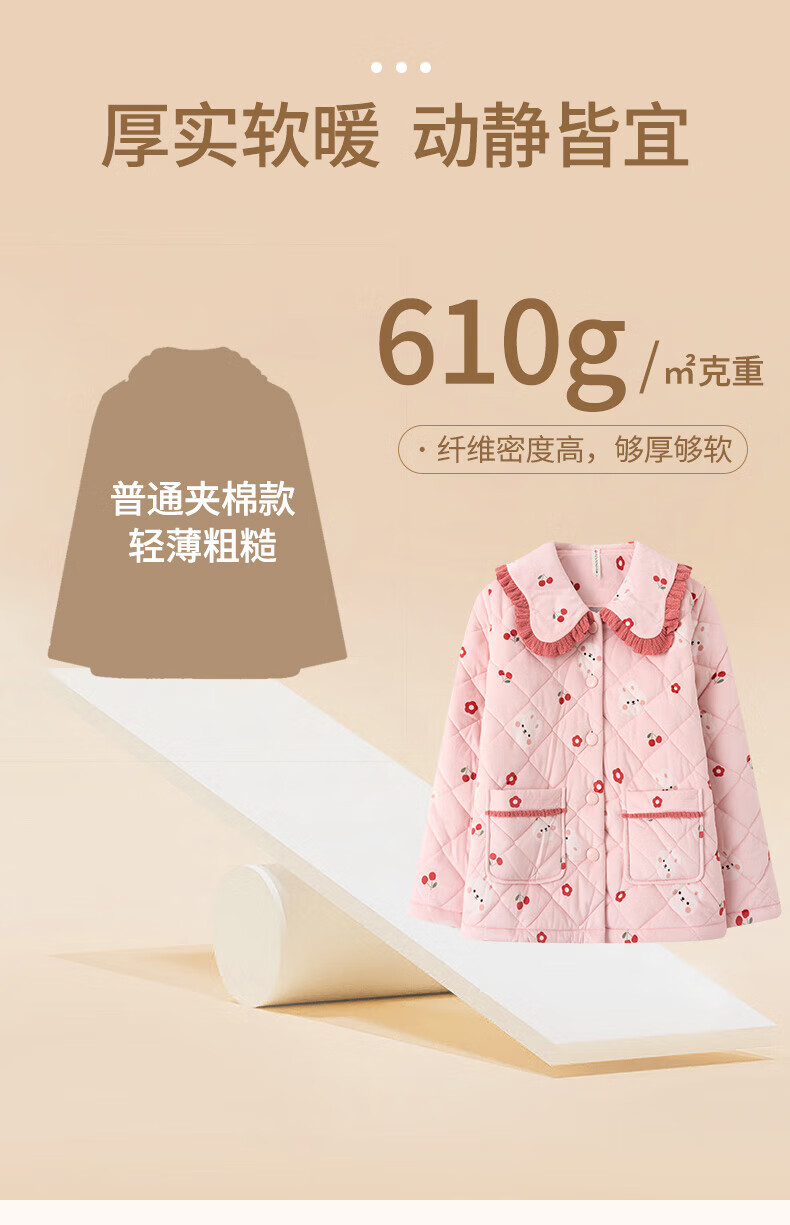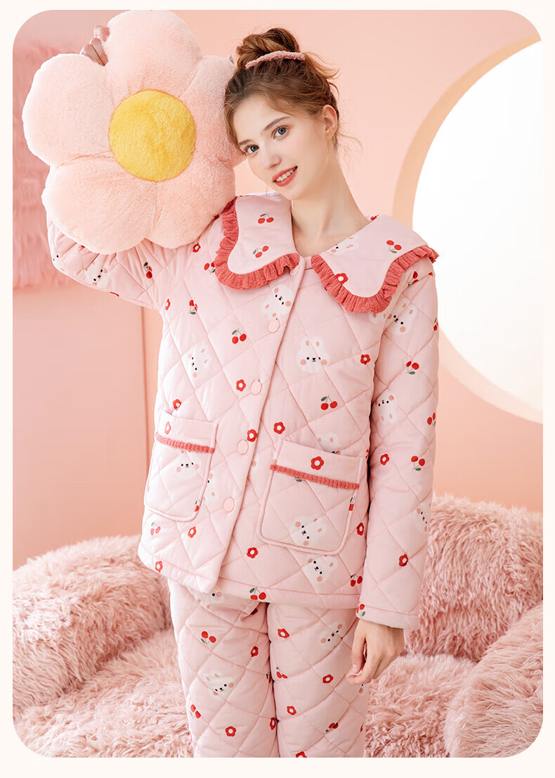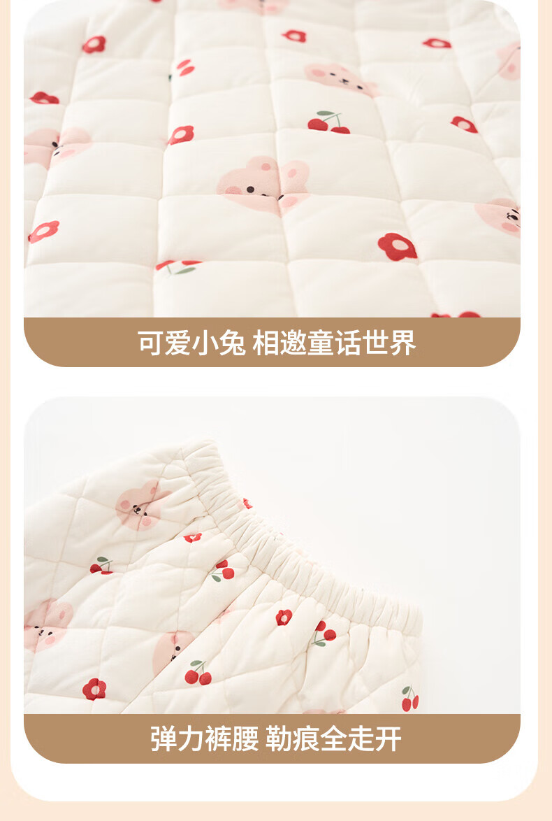 芬腾睡衣女童秋冬夹棉加厚娃娃领开衫暖绒防静电家居服童装套装1 樱花粉 130