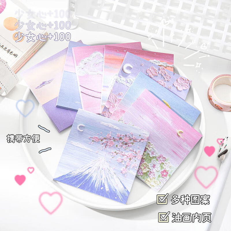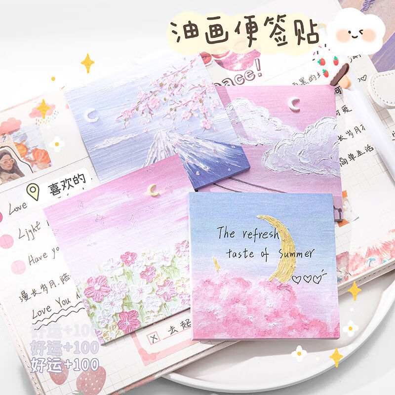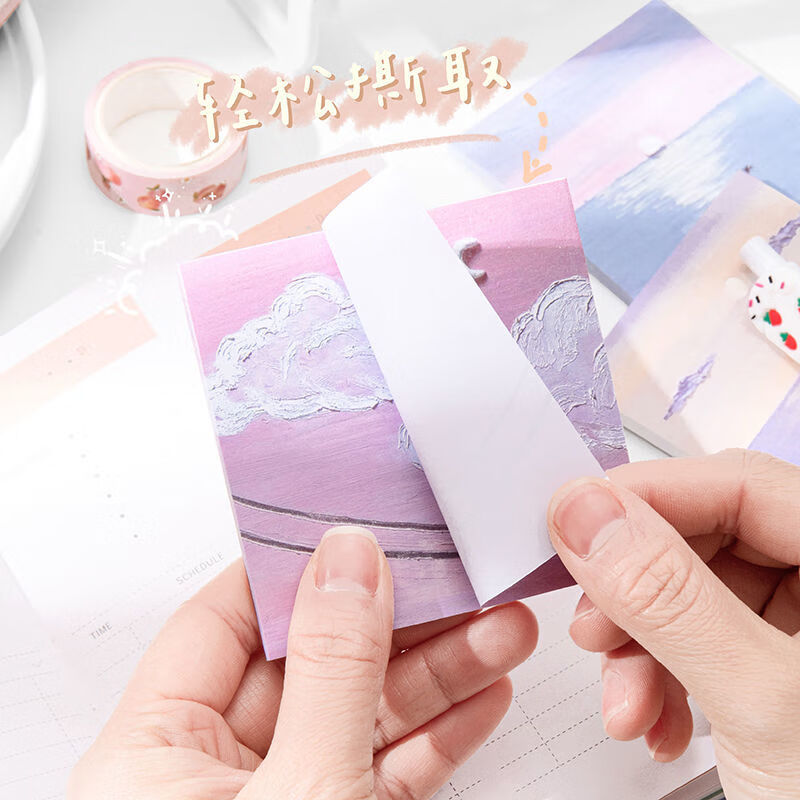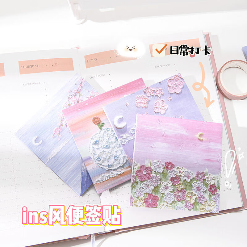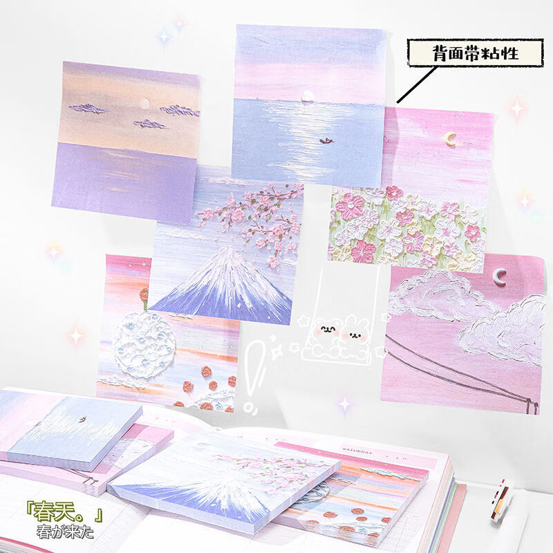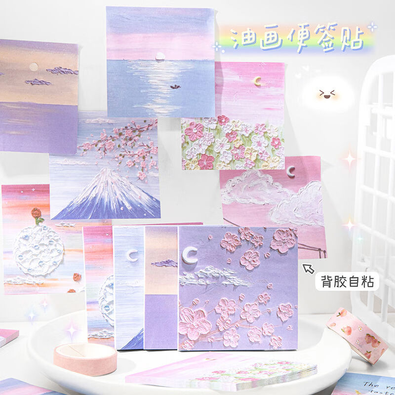 少年伴油画便利贴开学必备便签本个性创意简贴纸学生用高颜值有粘性便签贴纸等待春天4本/200张MK-2950