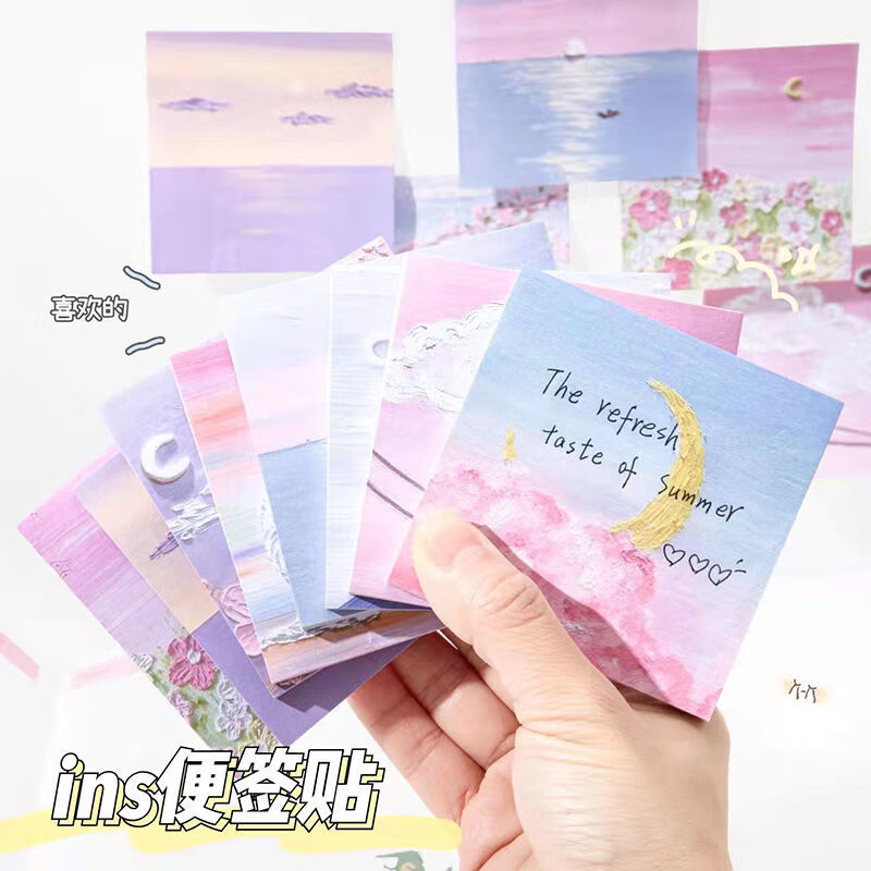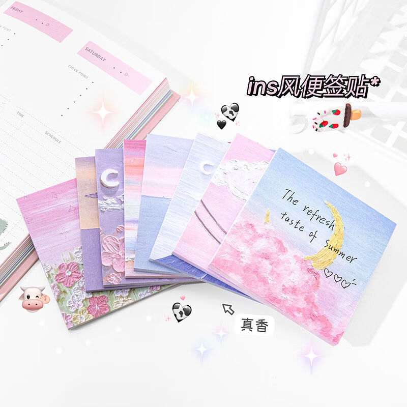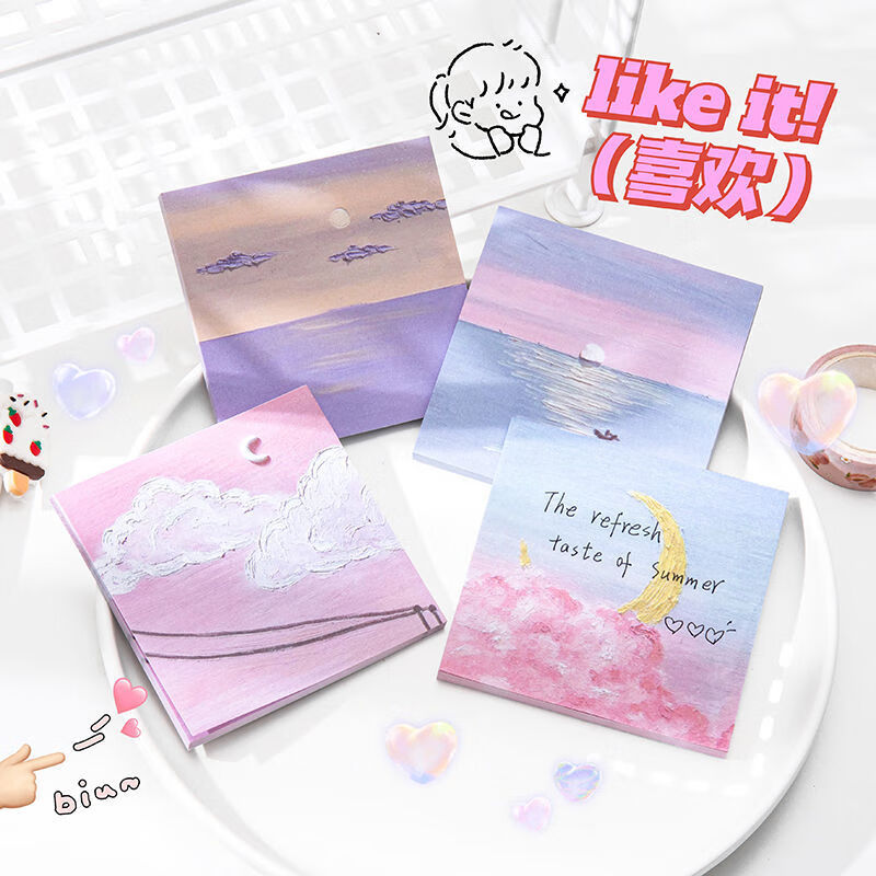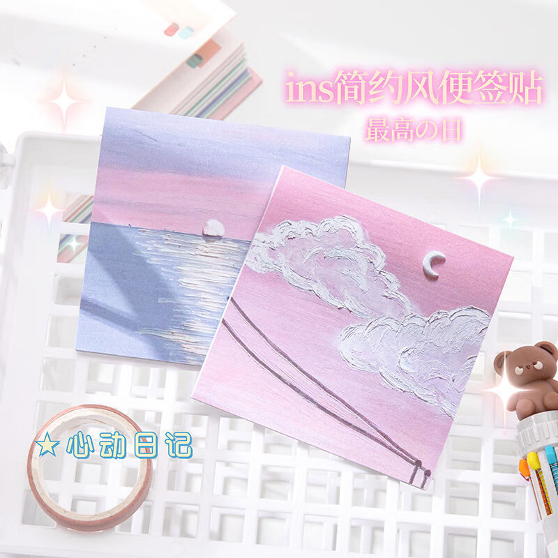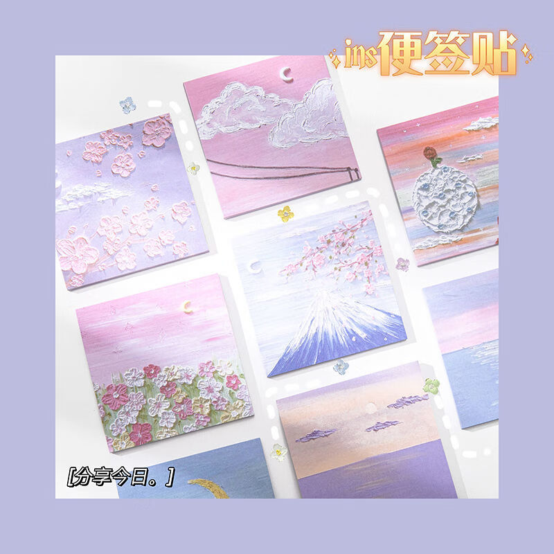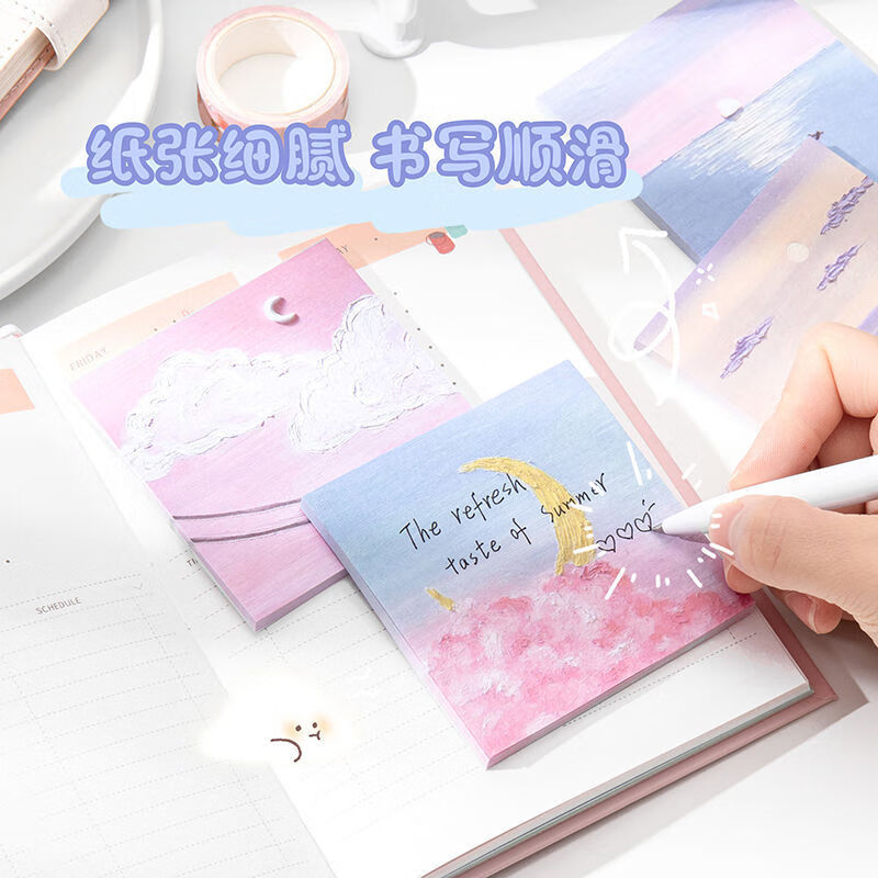 少年伴油画便利贴开学必备便签本个性创意简贴纸学生用高颜值有粘性便签贴纸等待春天4本/200张MK-2950