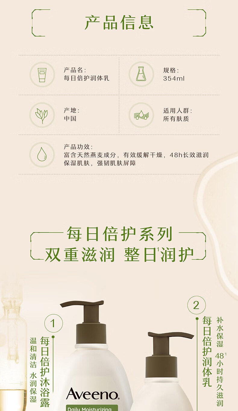 艾惟诺(Aveeno)身体润肤乳保湿滋润补水保湿燕麦(无香型)354ml