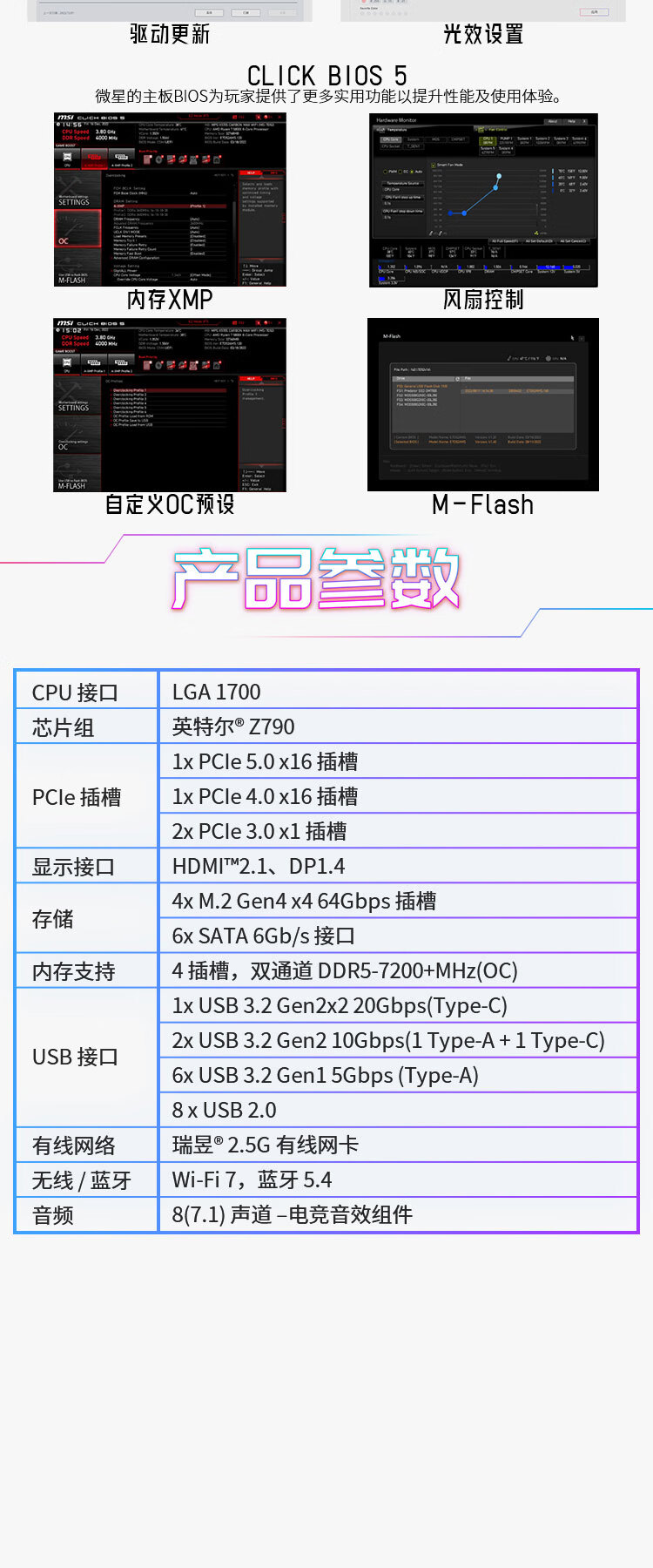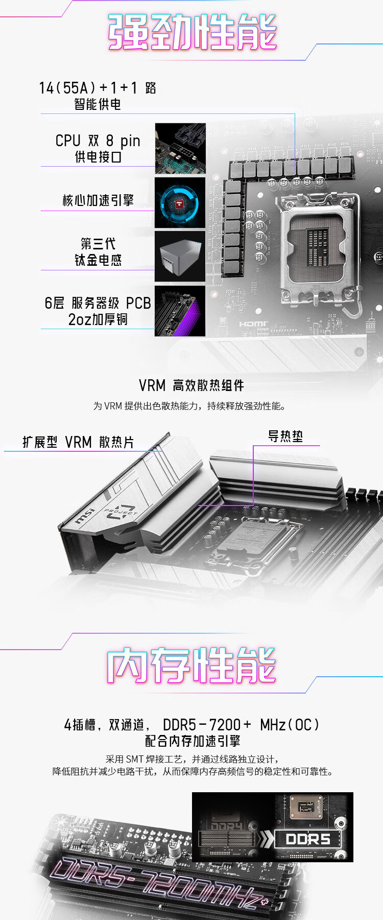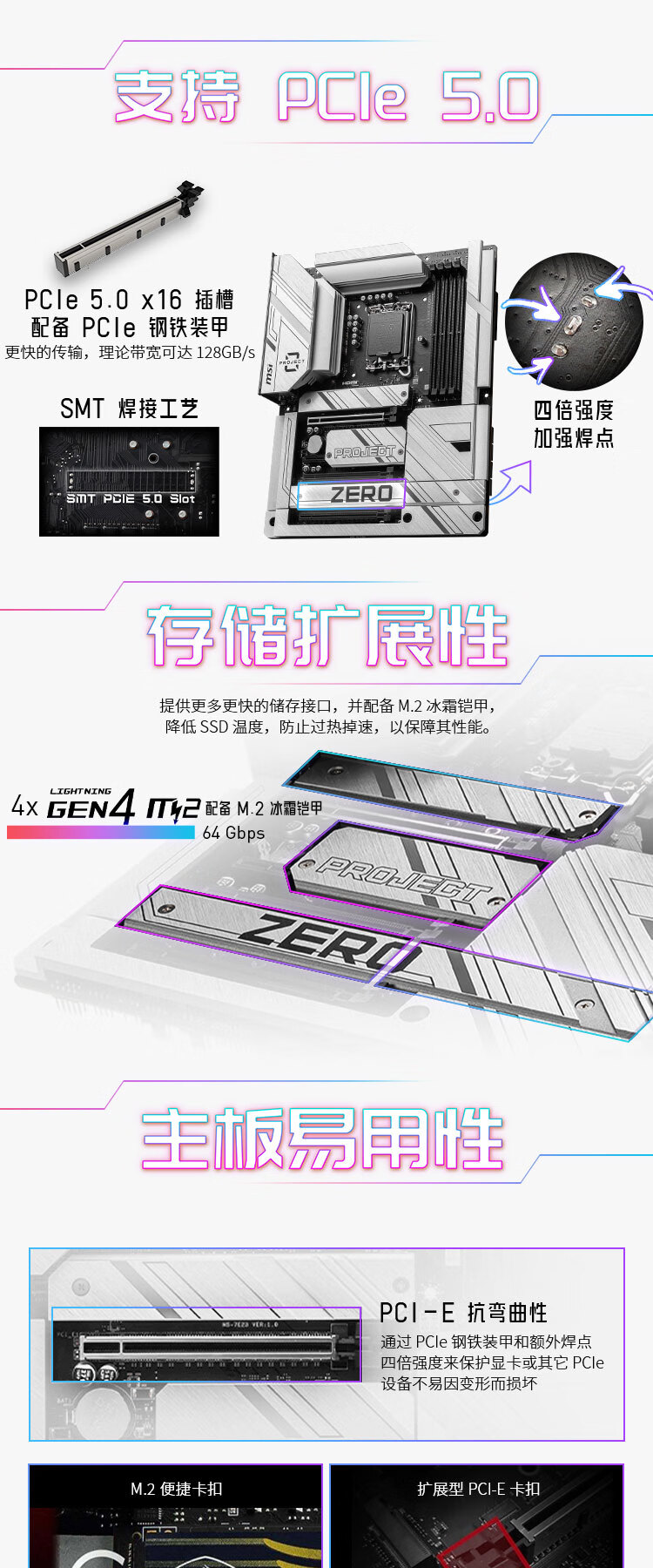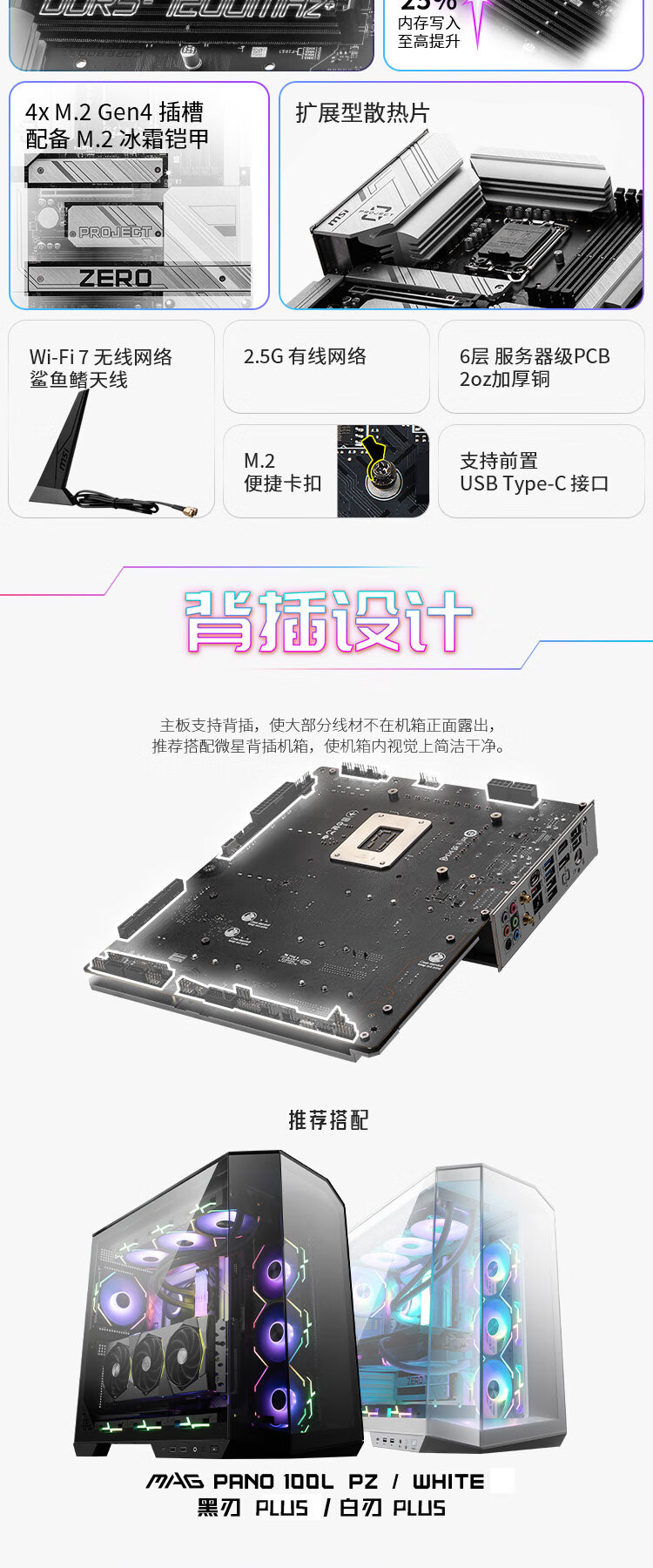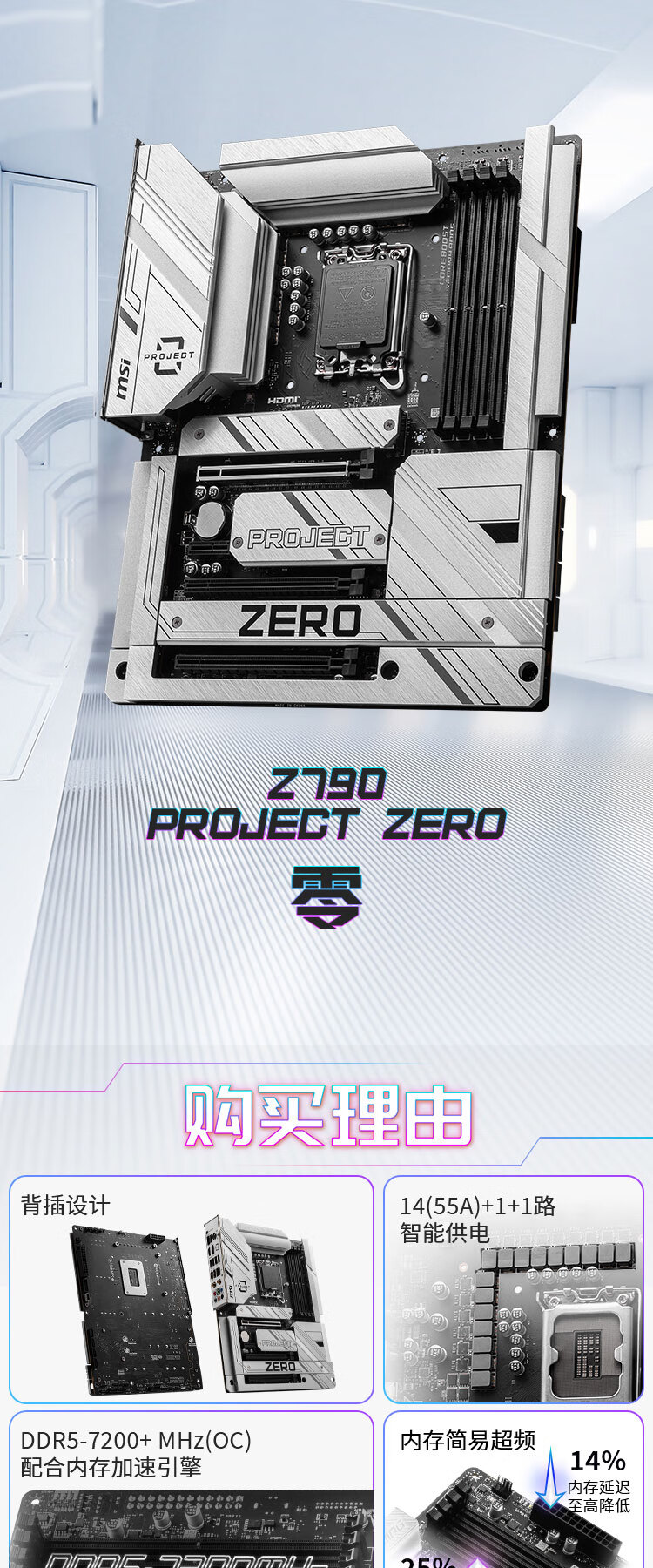 微星(MSI)Z790 PROJECT ZERO零D5 WIFI7背插主板 支持14700KF/14900K(Intel Z790/LGA 1700)