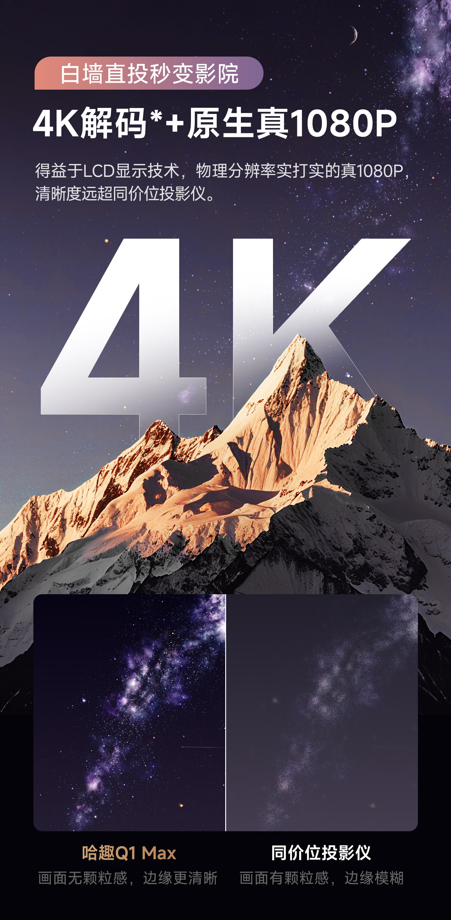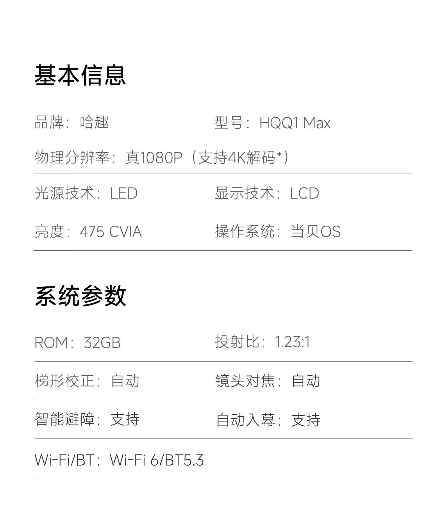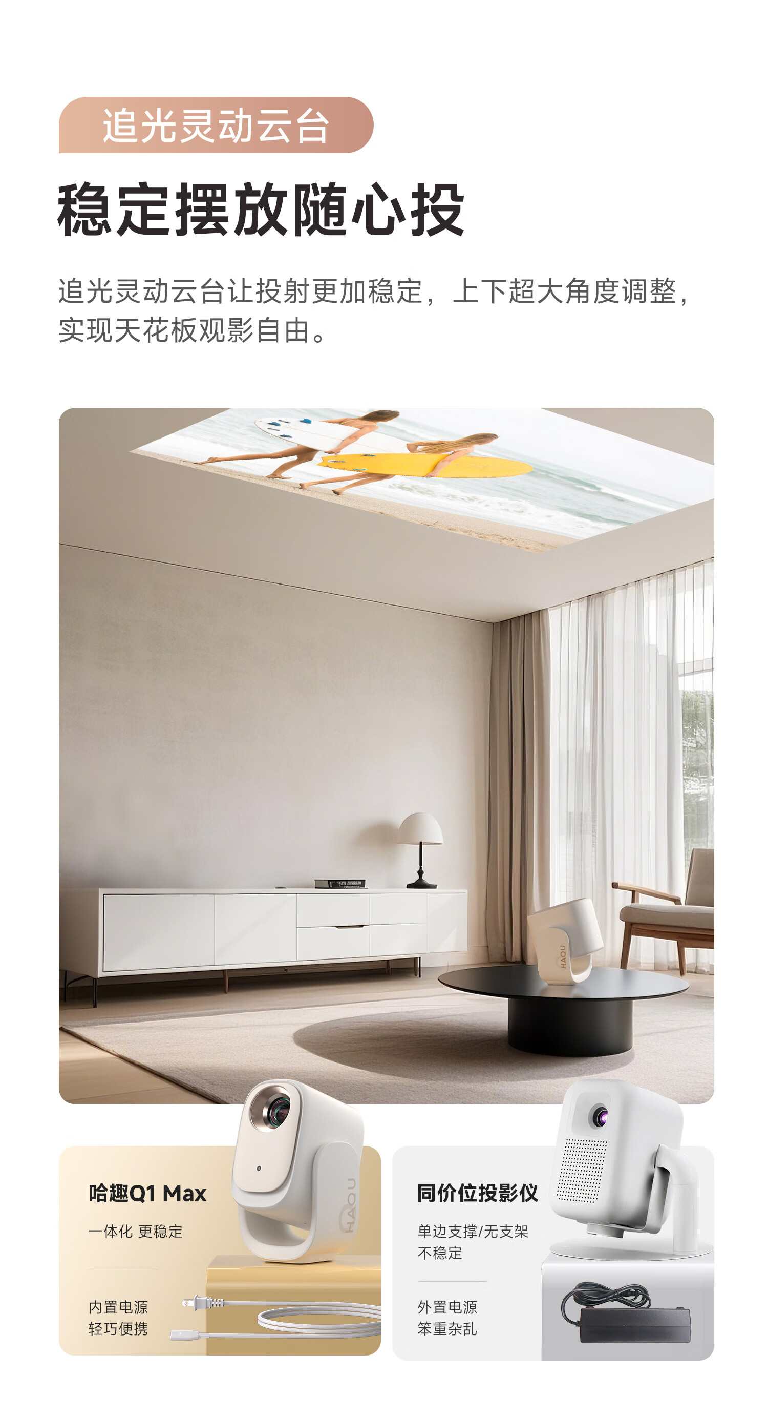 哈趣Q1 Max 投影仪家用 家庭影院 真1080P高清 智能便携卧室宿舍投影机 国家补贴(万元电视级芯片)