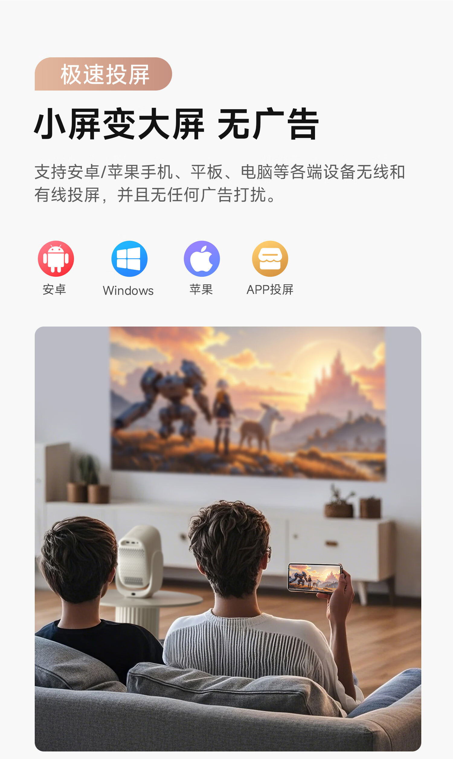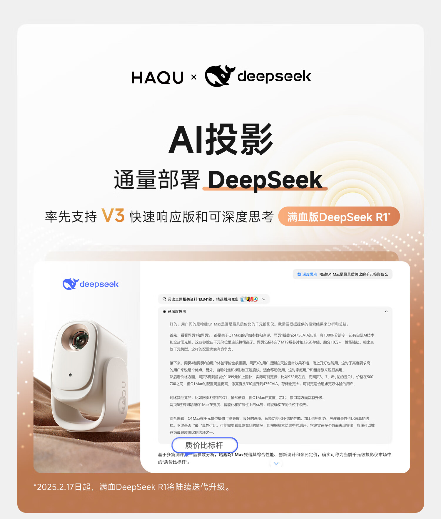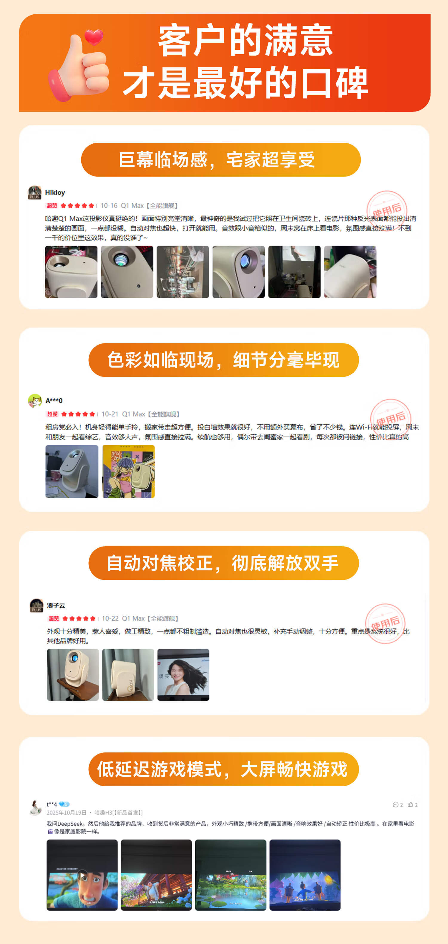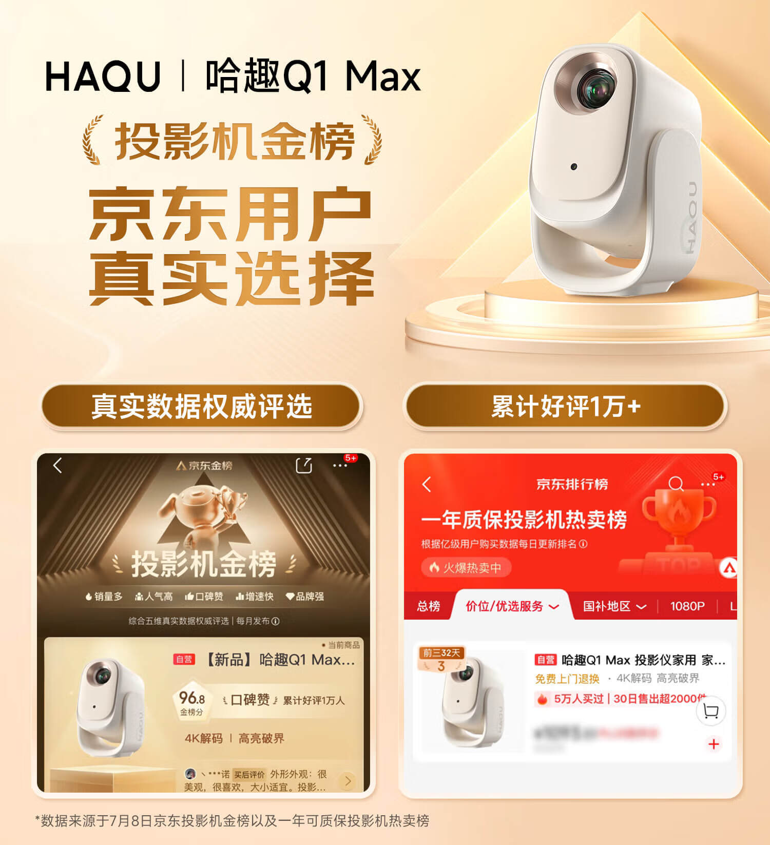 哈趣Q1 Max 投影仪家用 家庭影院 真1080P高清 智能便携卧室宿舍投影机 国家补贴(万元电视级芯片)