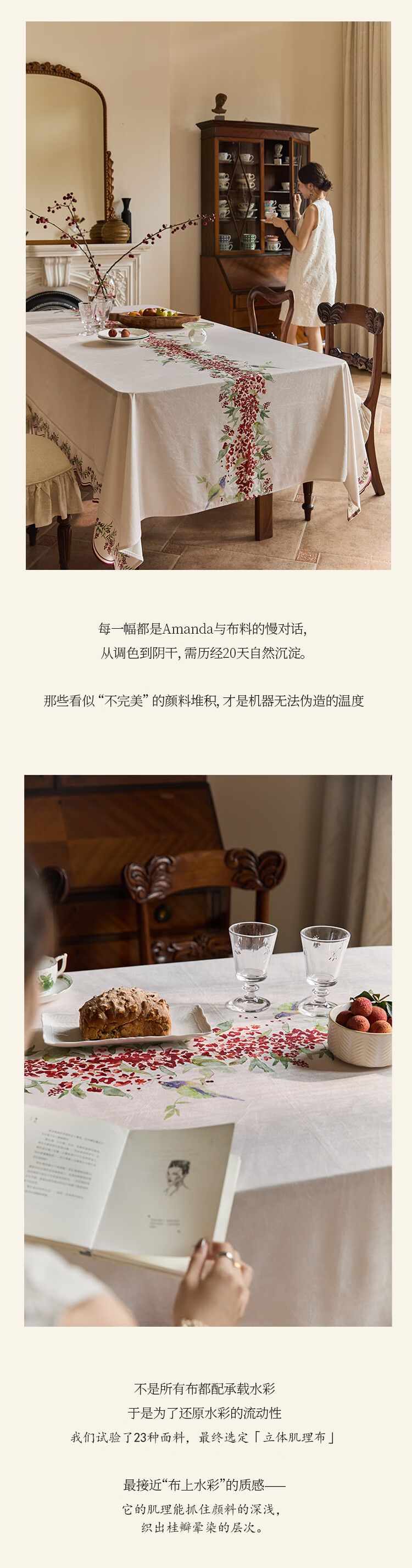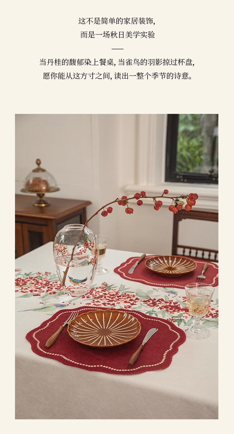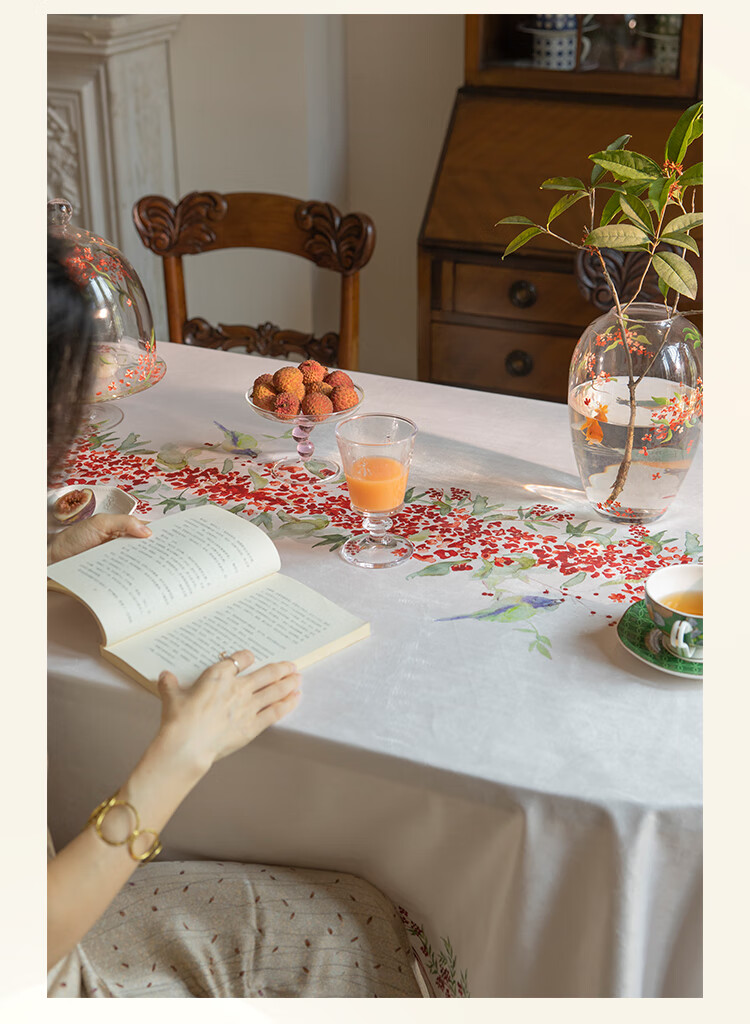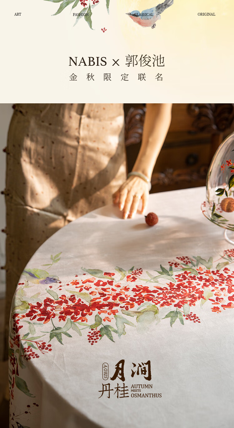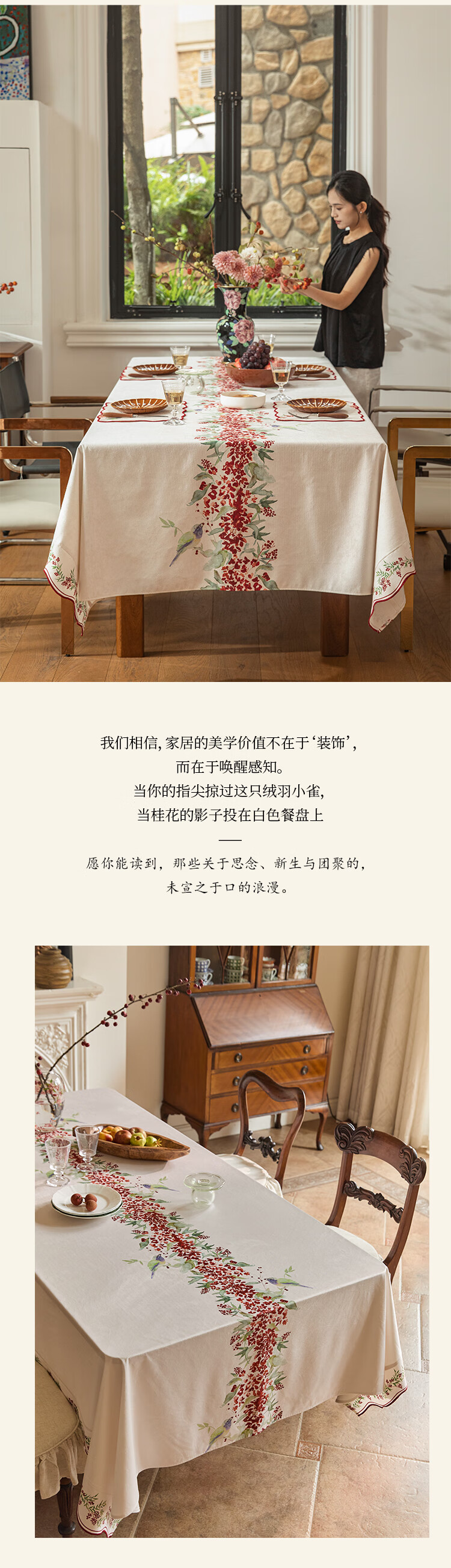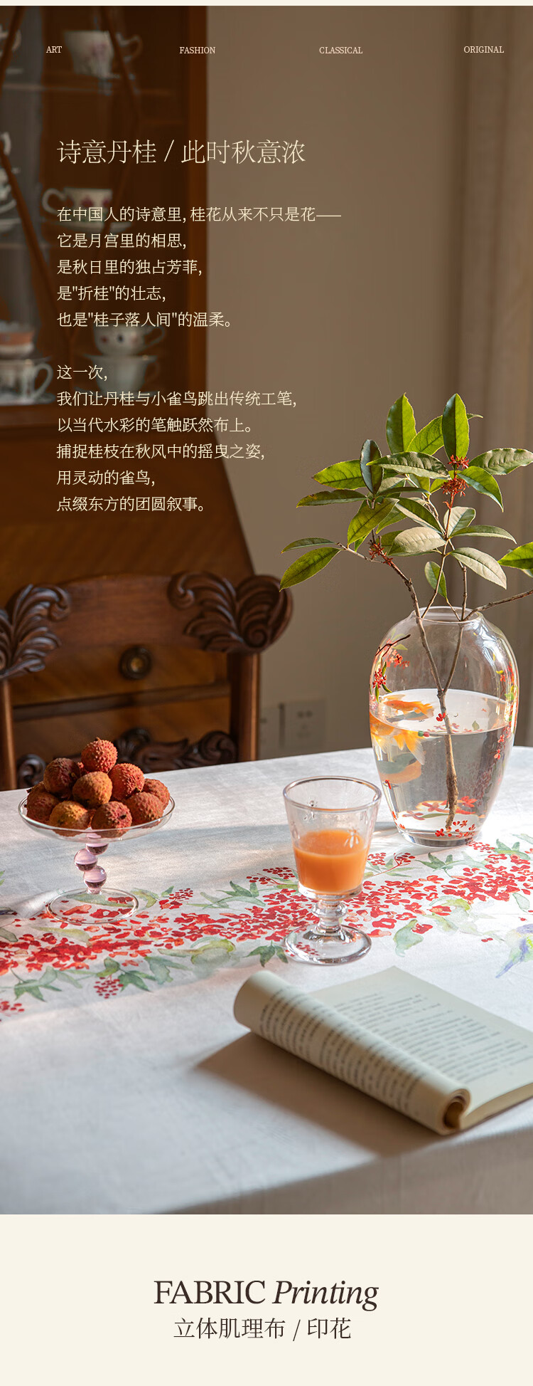 蜡笔派(Nabis)郭俊池联名|红果果系列|丹桂桌布防水餐桌布氛围感茶几布 月涧丹桂-桌布(颗粒布) 140*180cm单层卷边款/4-6人餐桌