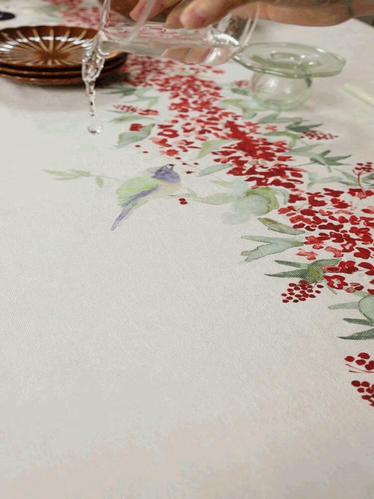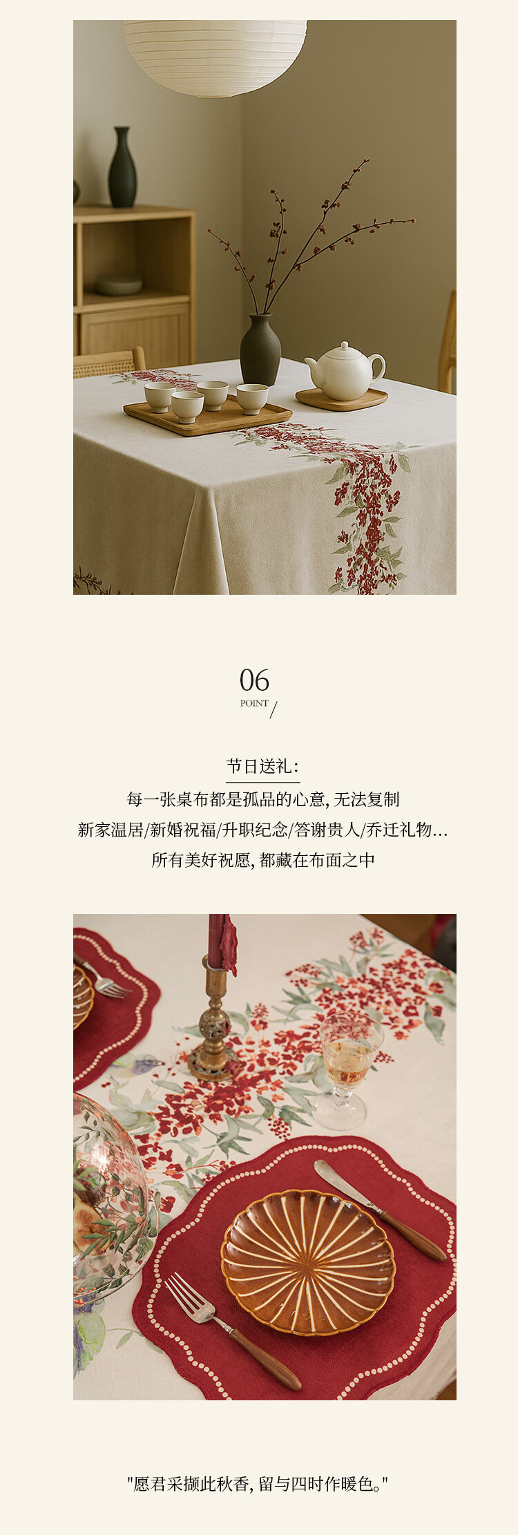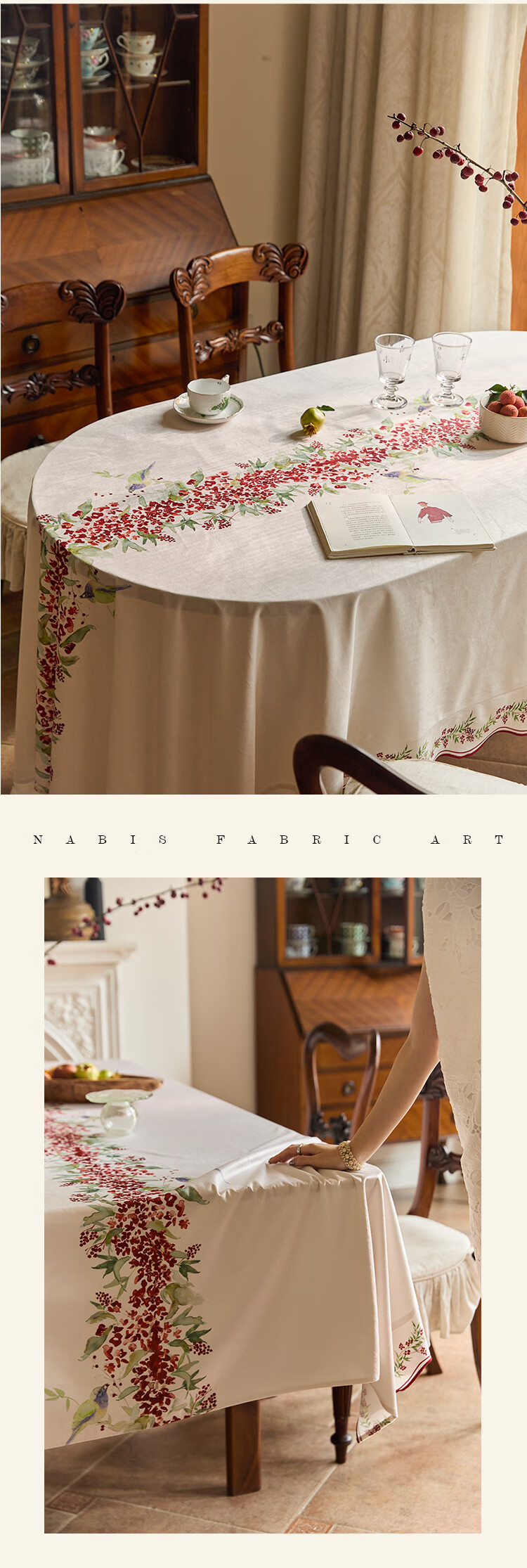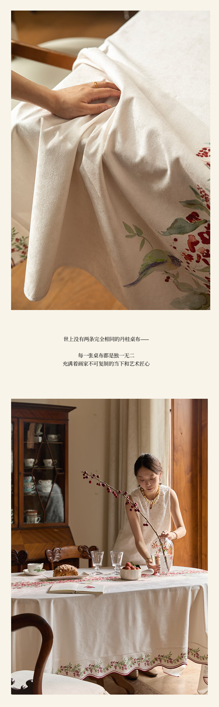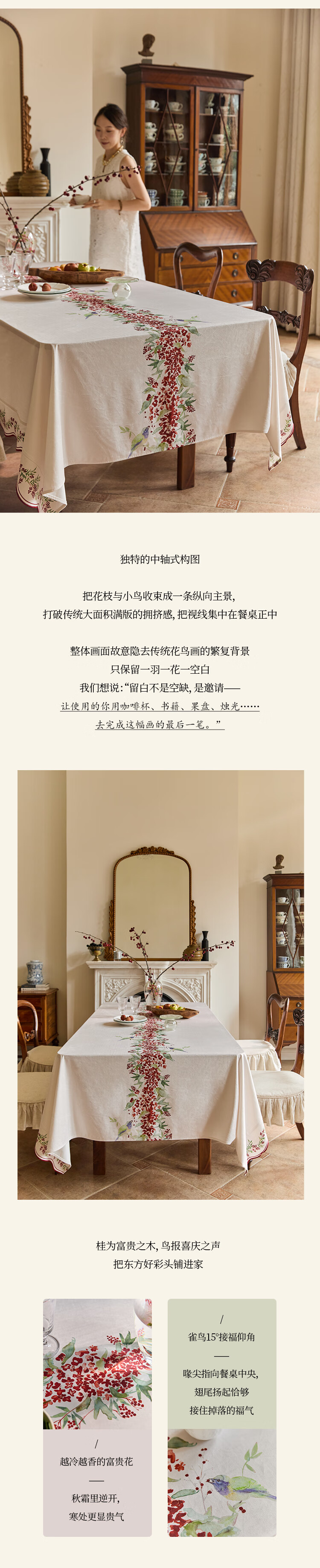 蜡笔派(Nabis)郭俊池联名|红果果系列|丹桂桌布防水餐桌布氛围感茶几布 月涧丹桂-桌布(颗粒布) 140*180cm单层卷边款/4-6人餐桌
