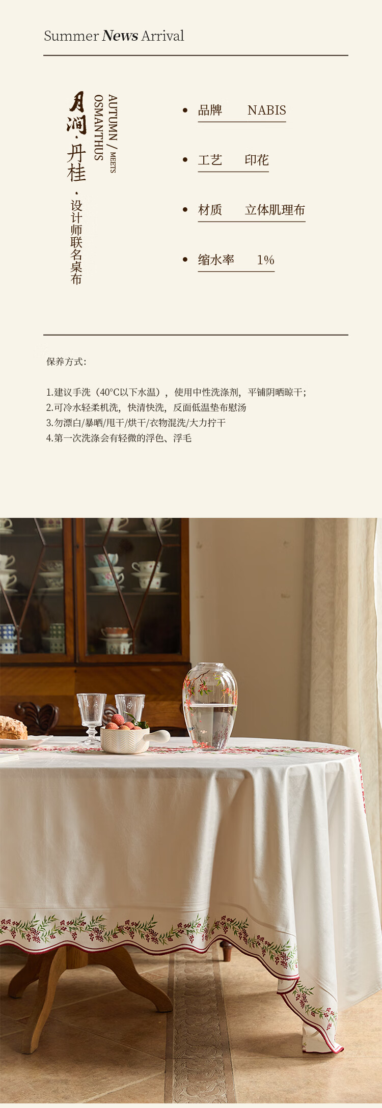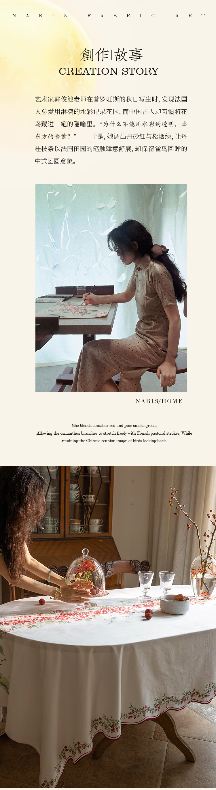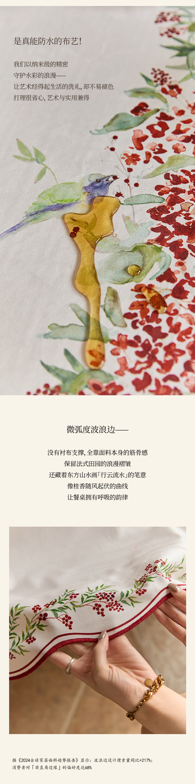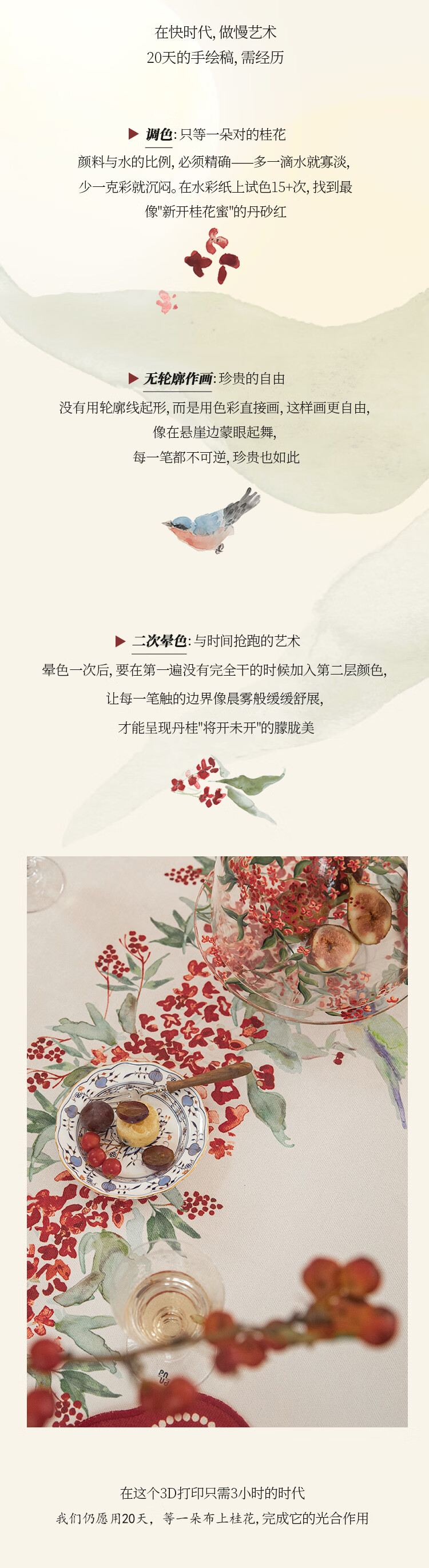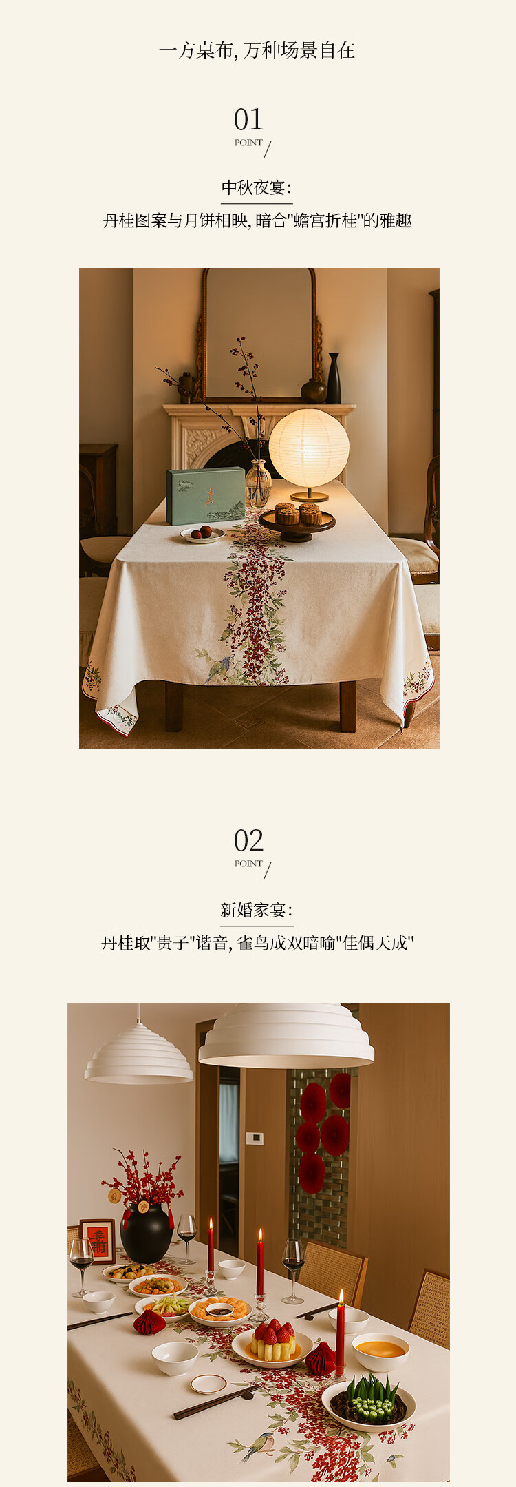 蜡笔派(Nabis)郭俊池联名|红果果系列|丹桂桌布防水餐桌布氛围感茶几布 月涧丹桂-桌布(颗粒布) 140*180cm单层卷边款/4-6人餐桌