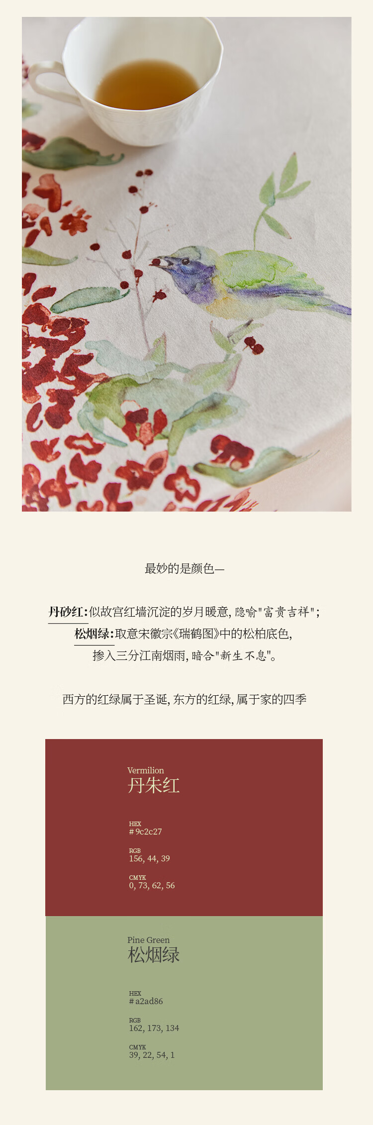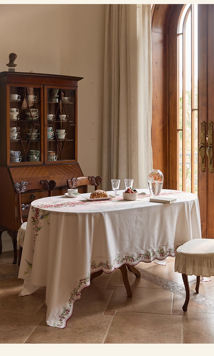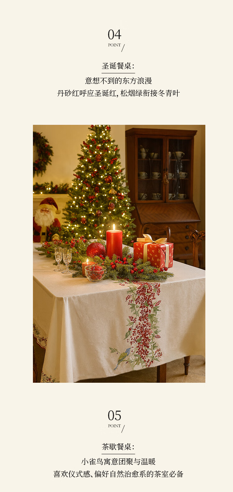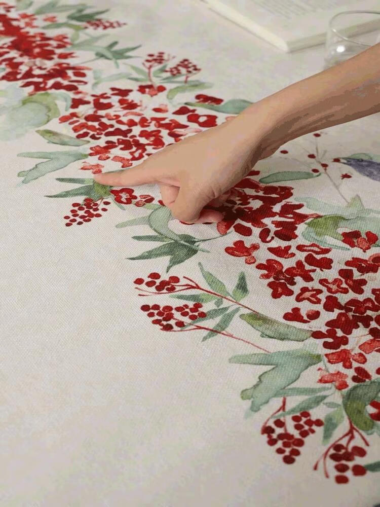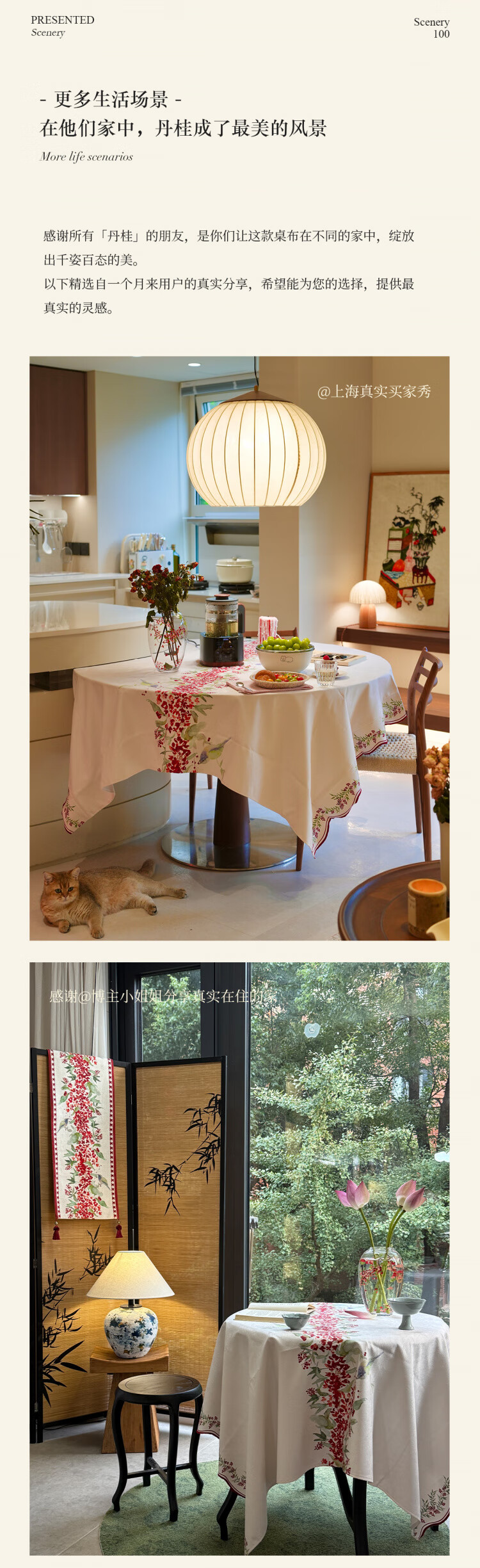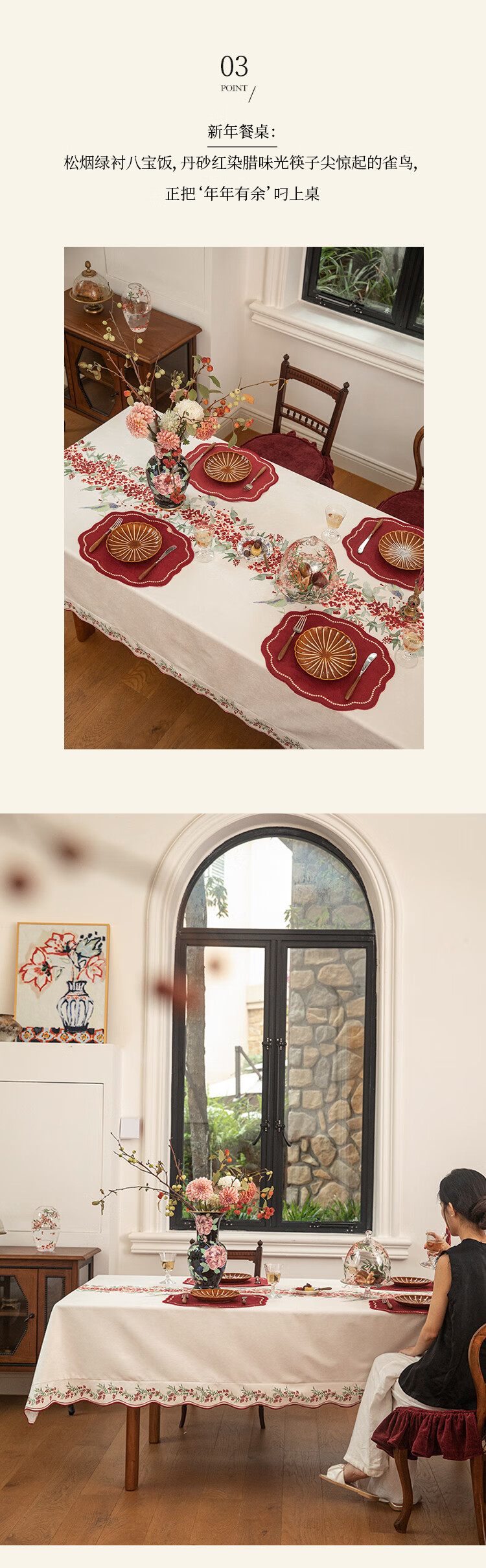 蜡笔派(Nabis)郭俊池联名|红果果系列|丹桂桌布防水餐桌布氛围感茶几布 月涧丹桂-桌布(颗粒布) 140*180cm单层卷边款/4-6人餐桌