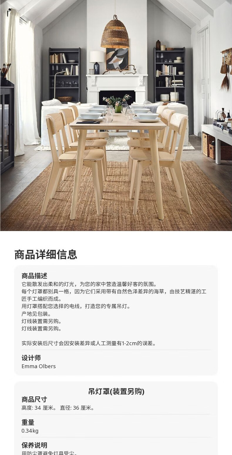 宜家(IKEA)TORARED图拉瑞德吊灯罩海草编织创意特色吊灯现代简约 吊灯罩(装置另购)
