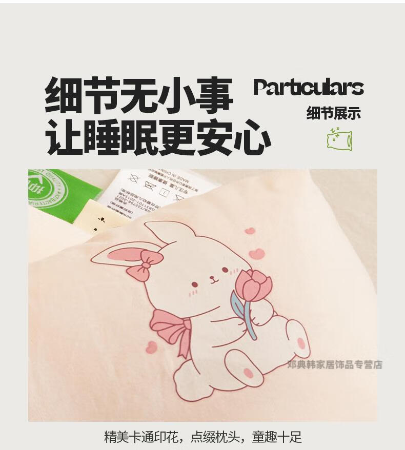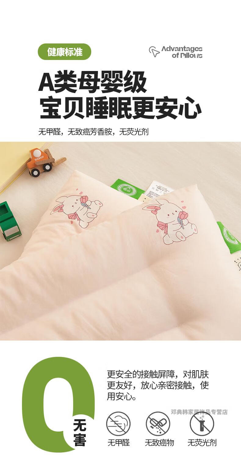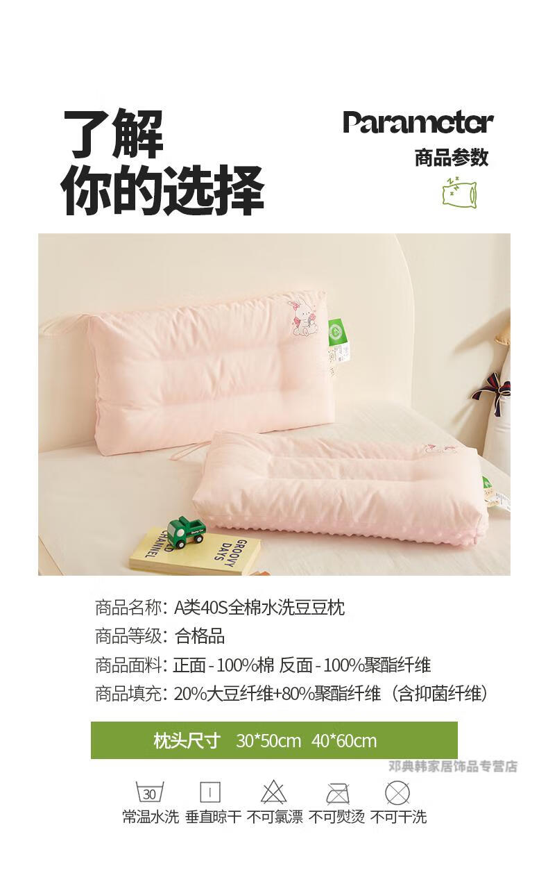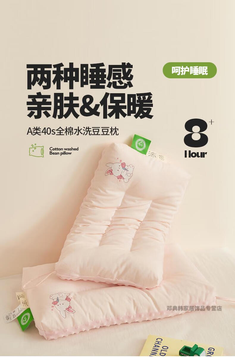 DEATKN德国A类全棉儿童枕头小宝宝1-3-6岁以上幼儿园午睡定型安抚豆豆枕 花朵兔(A类全棉豆豆枕) 30x50x5cm