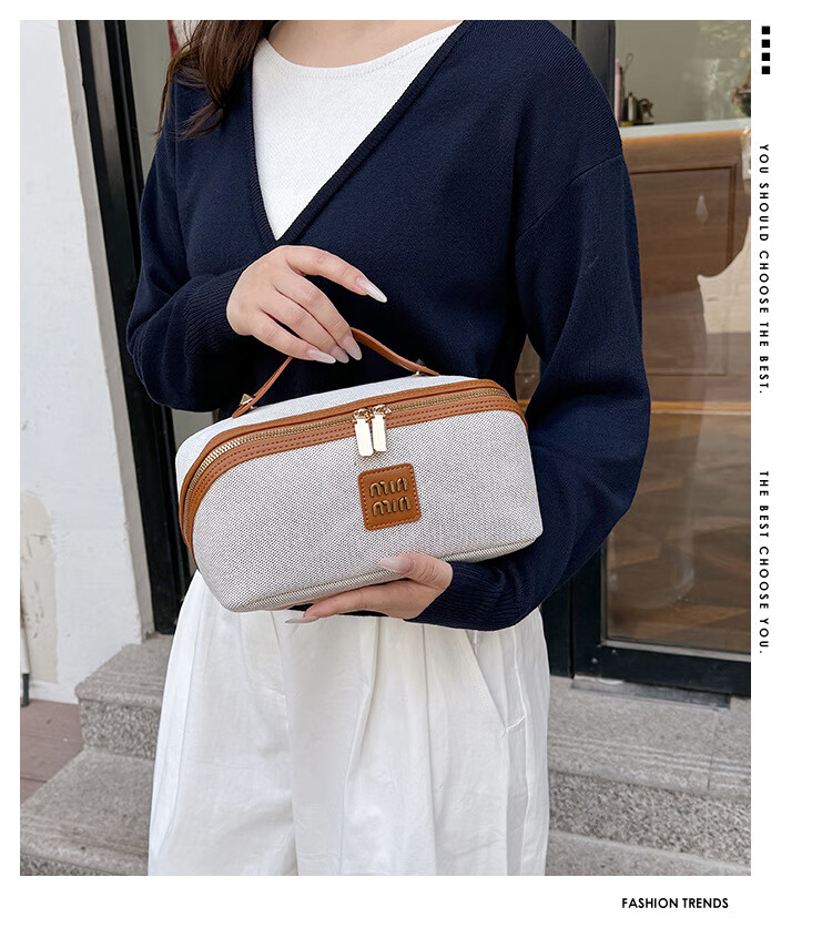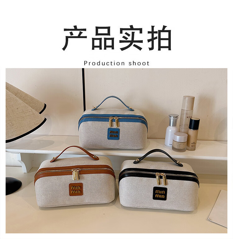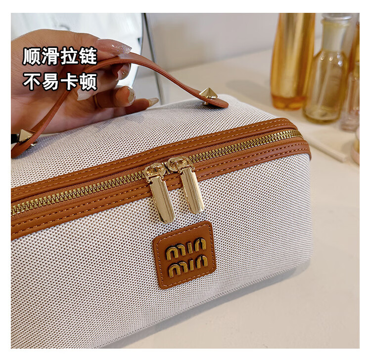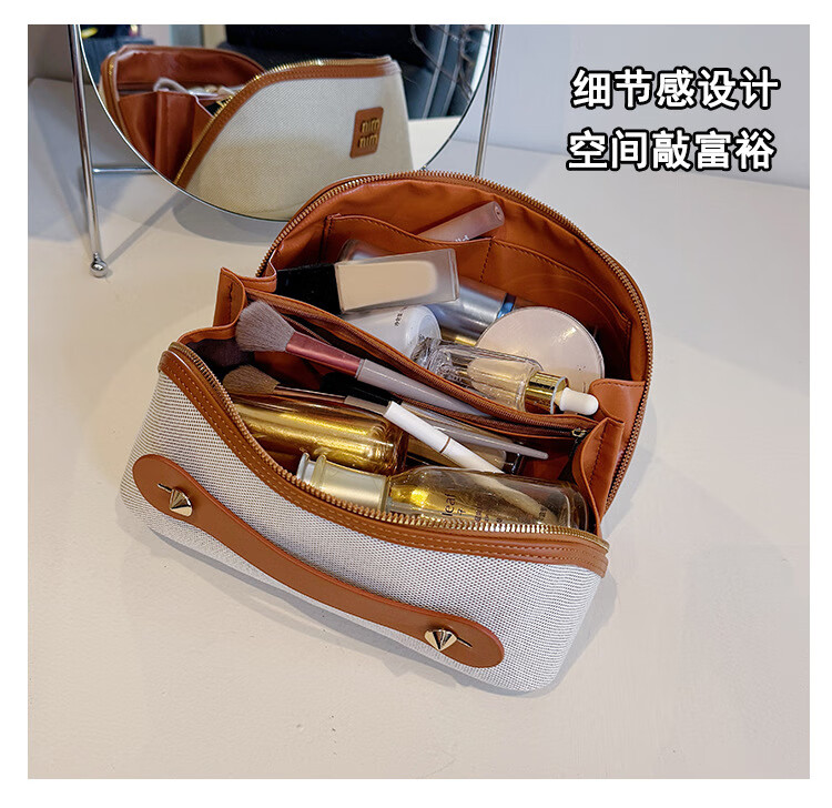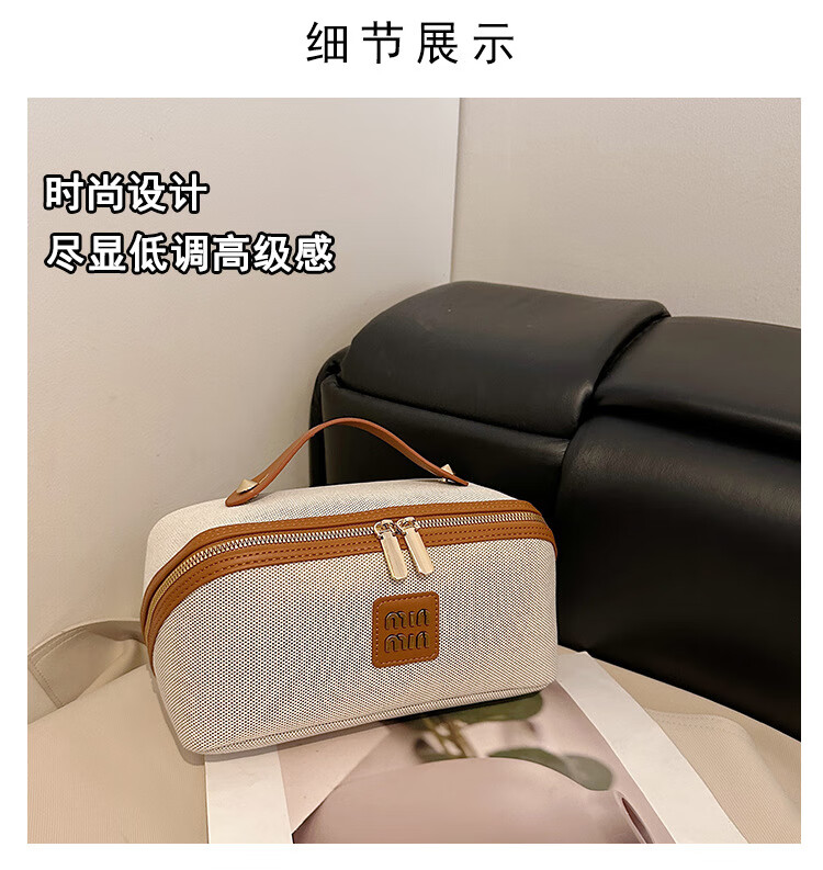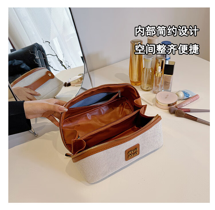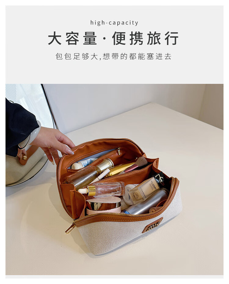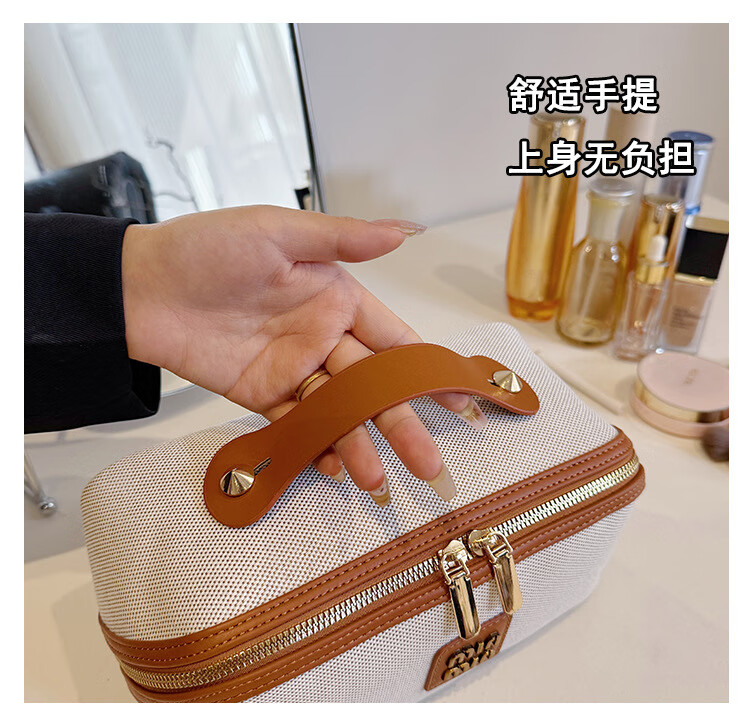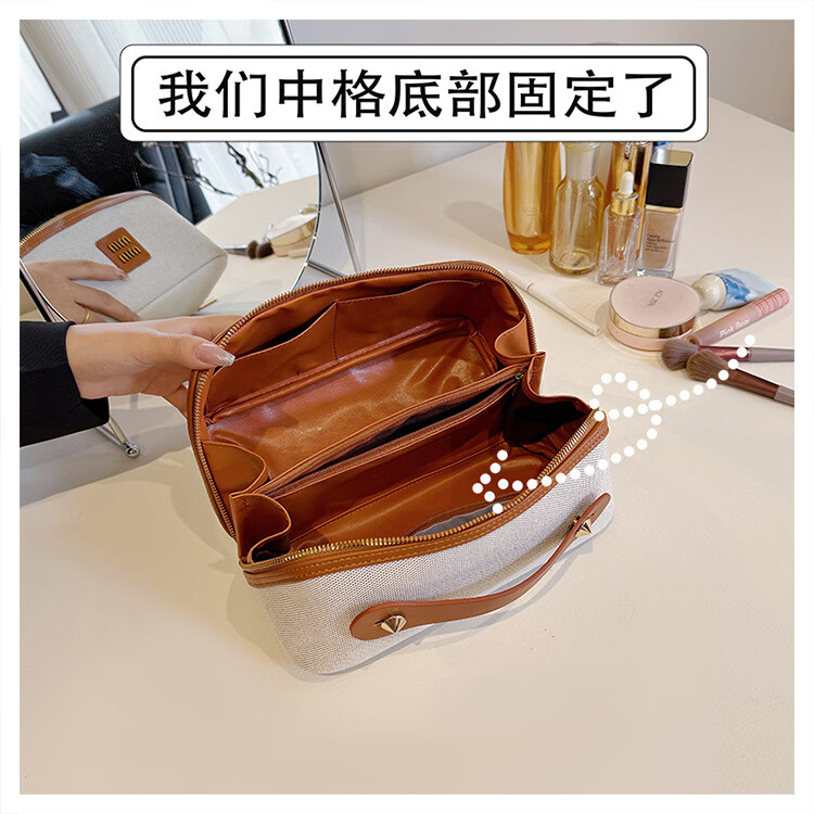 享乐屋高端化妆包大容量旅行出差化妆品收纳包便携外出洗漱包带提手 棕色【大容量 分区设计】