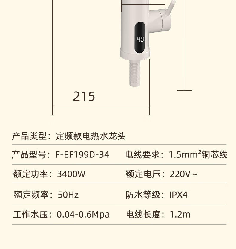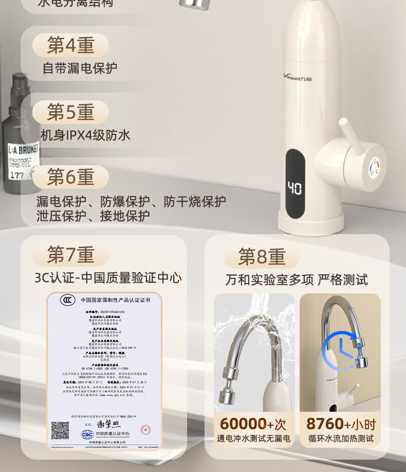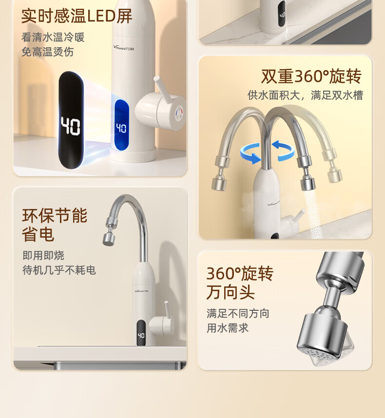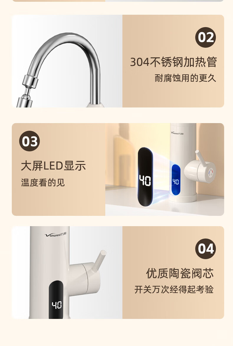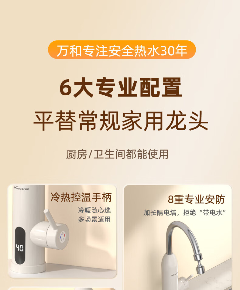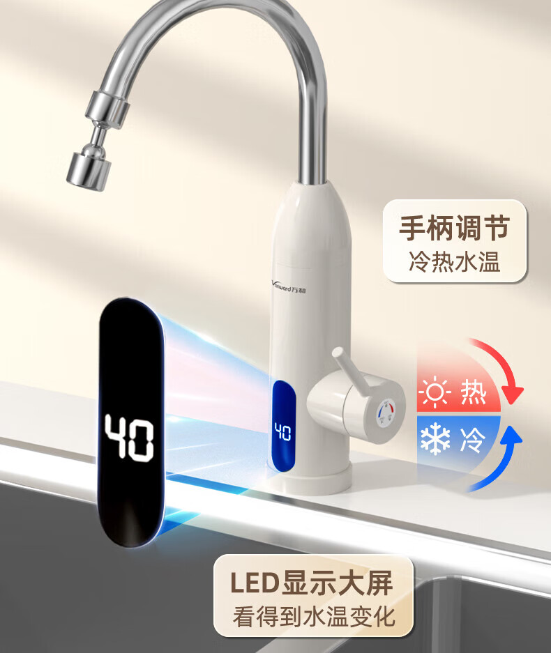 万和电热水龙头加热快速热过水热电加热厨房卫用阳台家用小厨宝热水器 F-EF194B-34(变频)漏保