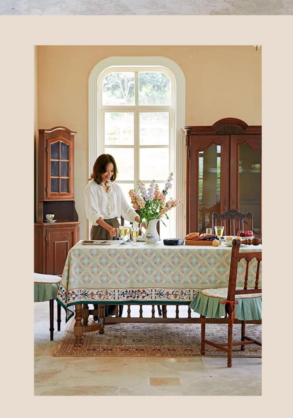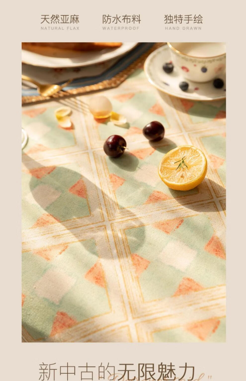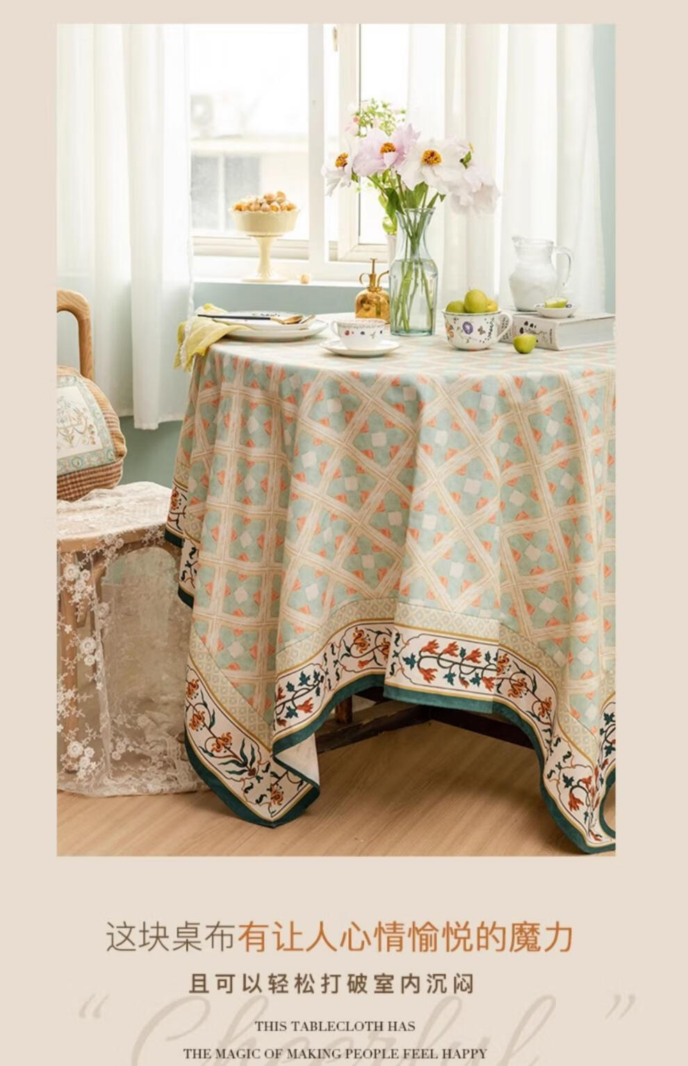 蜡笔派(Nabis)【孤品4折】蜡笔派维多利亚桌布英式复古防水茶几台布餐桌布 维多利亚桌布/防水亚麻款 140*220cm/6-8人餐桌/卷边款