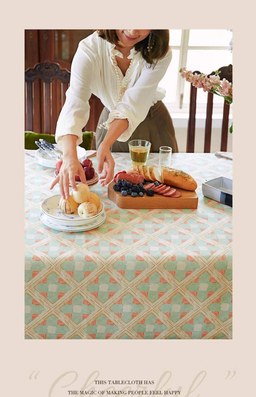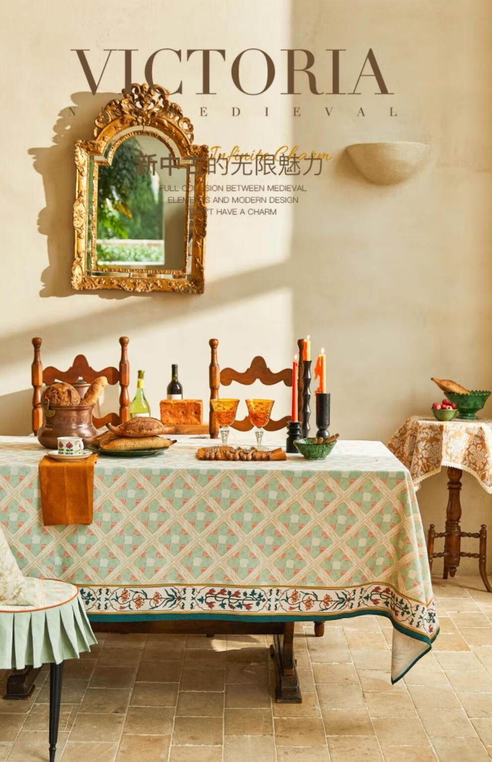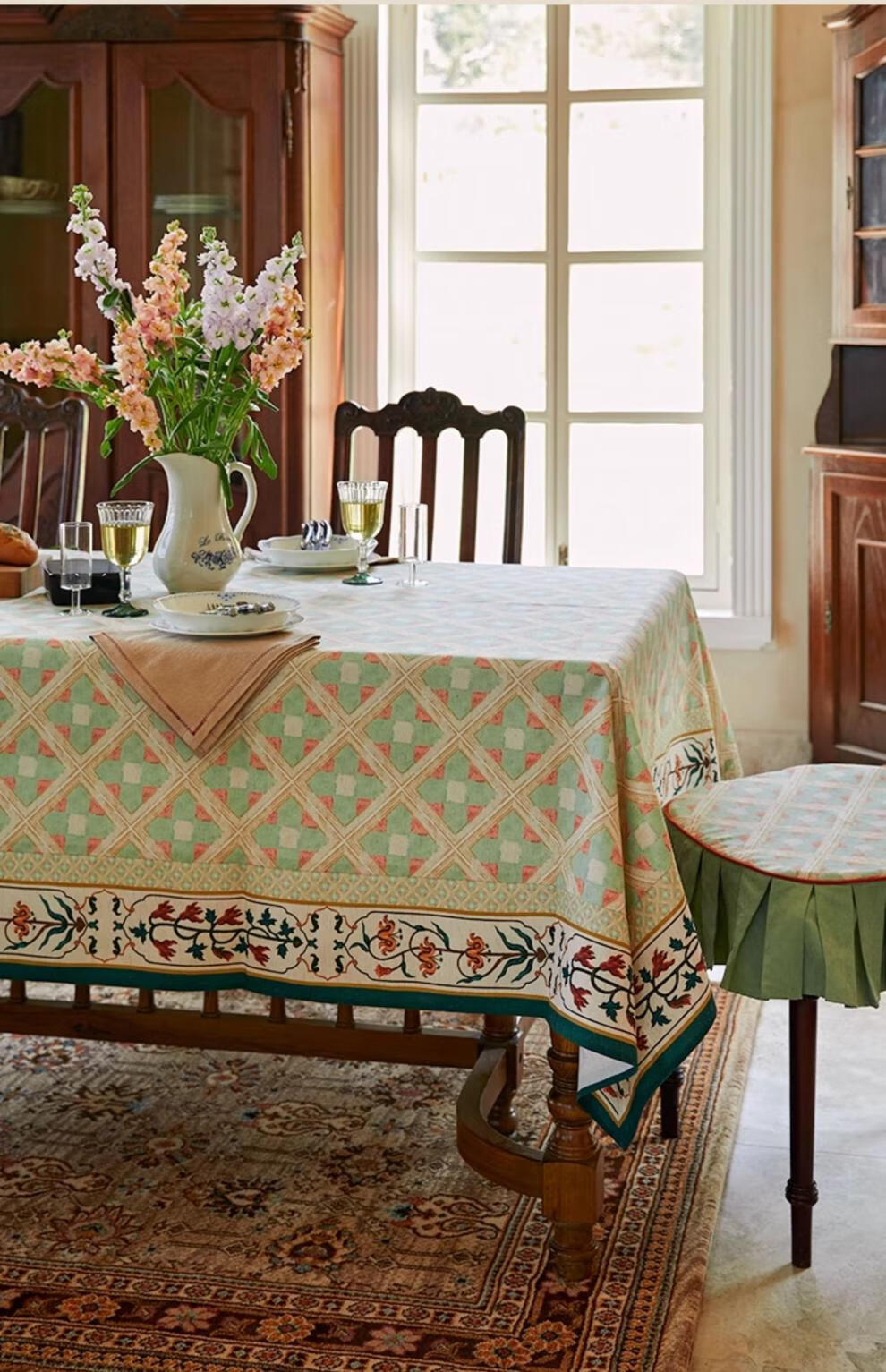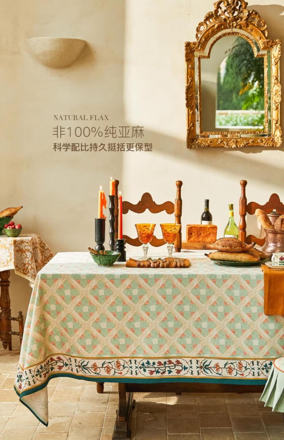 蜡笔派(Nabis)【孤品4折】蜡笔派维多利亚桌布英式复古防水茶几台布餐桌布 维多利亚桌布/防水亚麻款 140*220cm/6-8人餐桌/卷边款