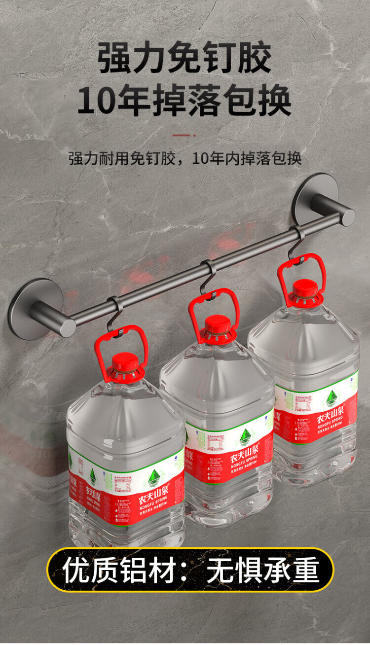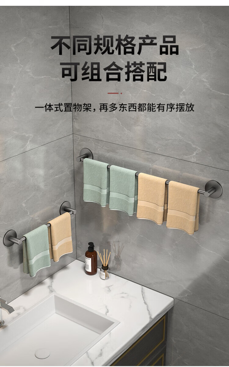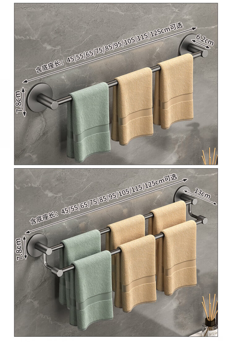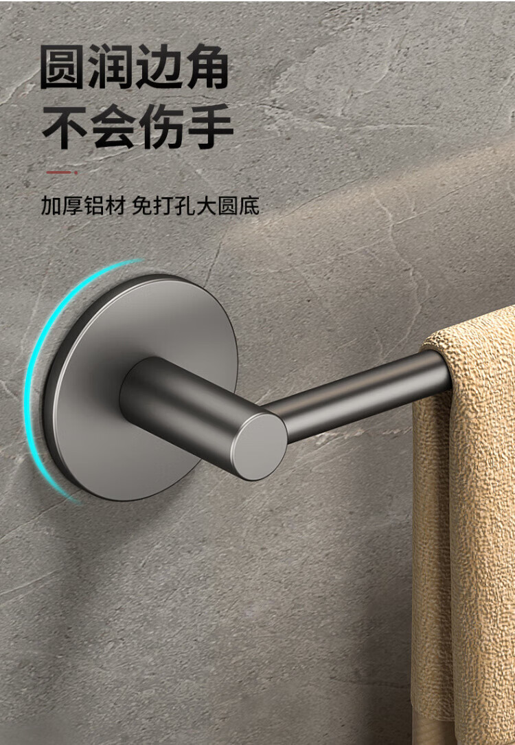 WCZ德国卫生间毛巾架加长单杆双杆免打孔浴室置物架厕所晾毛巾浴 枪灰色 | 双杆毛巾架-55cm