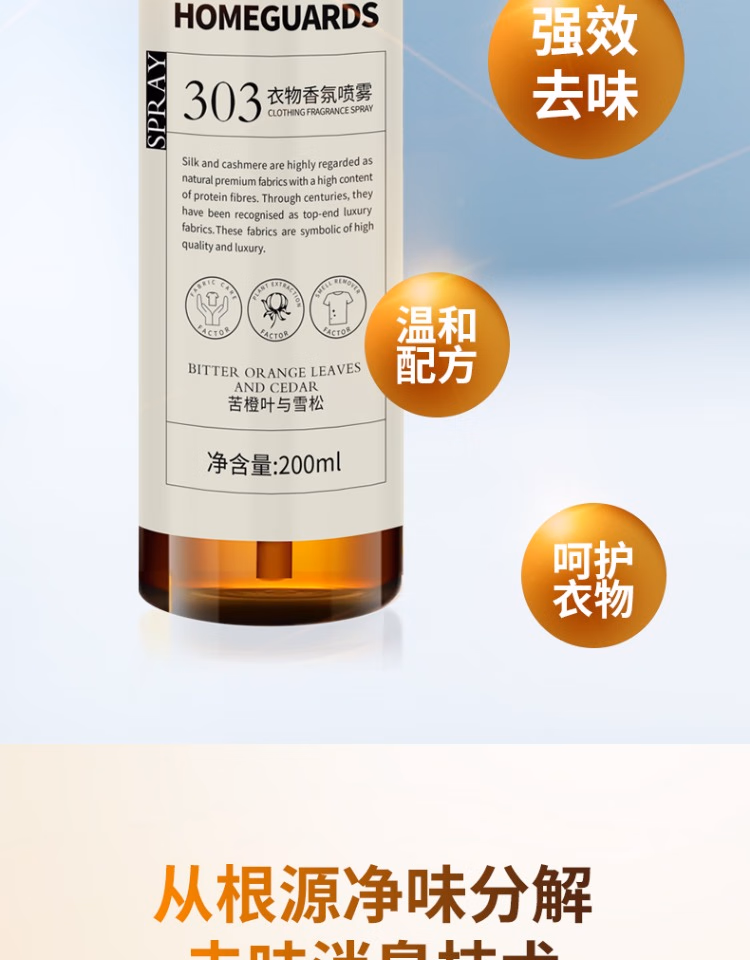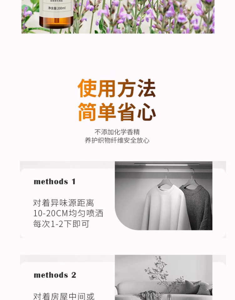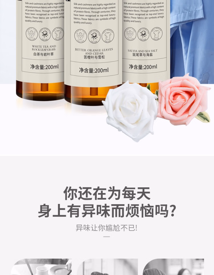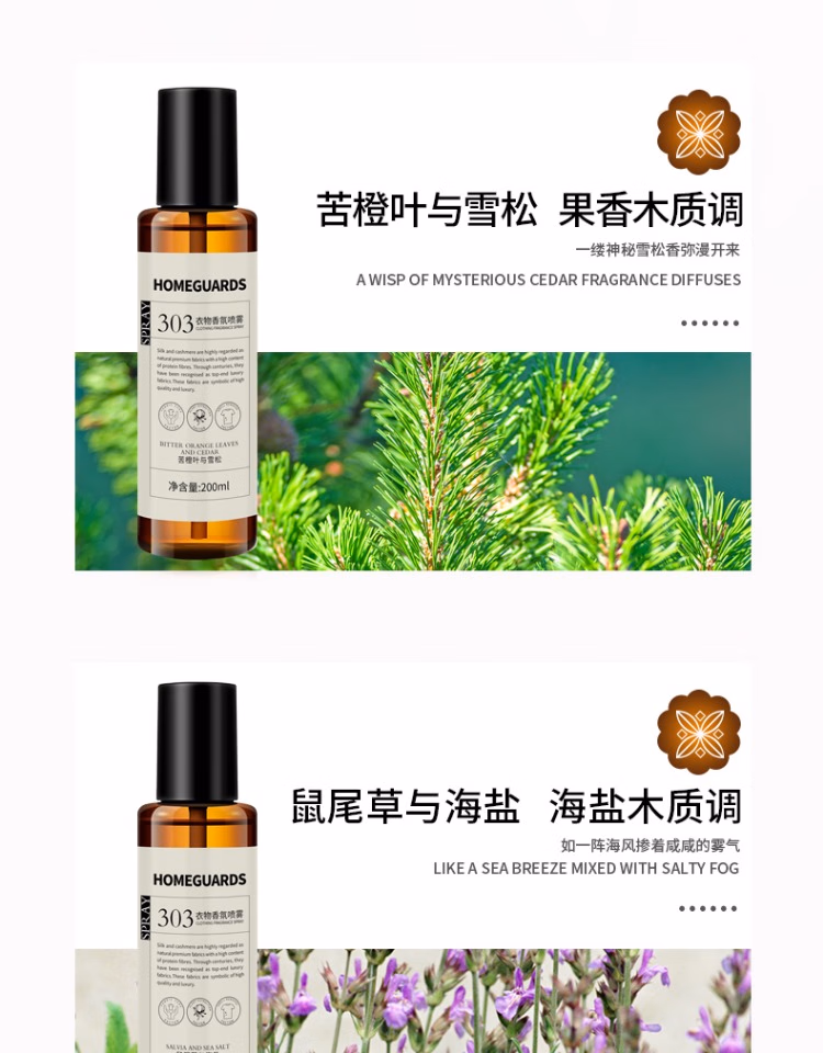 DEATKN德国衣物香氛喷雾衣服除味持久留香淡香水护衣物去异味烟味去静电 鼠尾草与海盐 1kg*2瓶