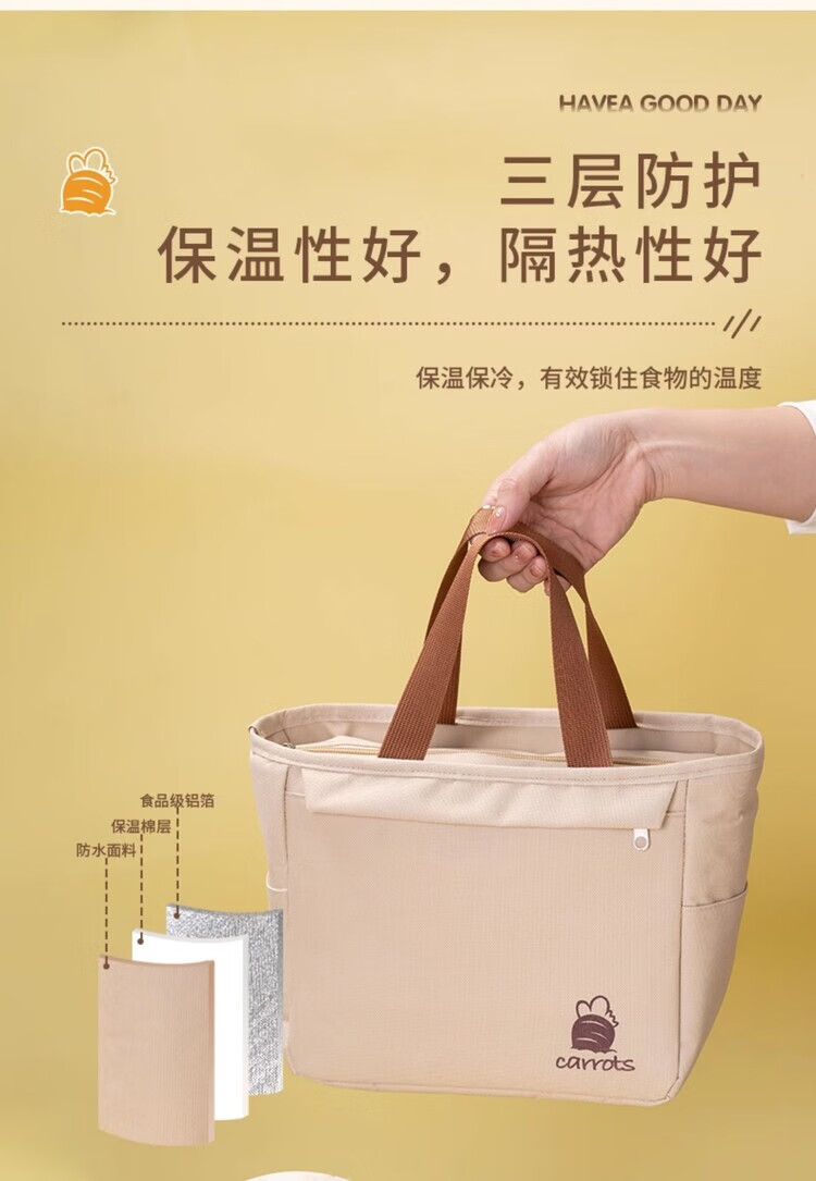 AILUKI日本保温饭盒袋装午餐餐包饭袋 高颜值带饭手提加厚袋子便当包 【大开口款】/ 天蓝色