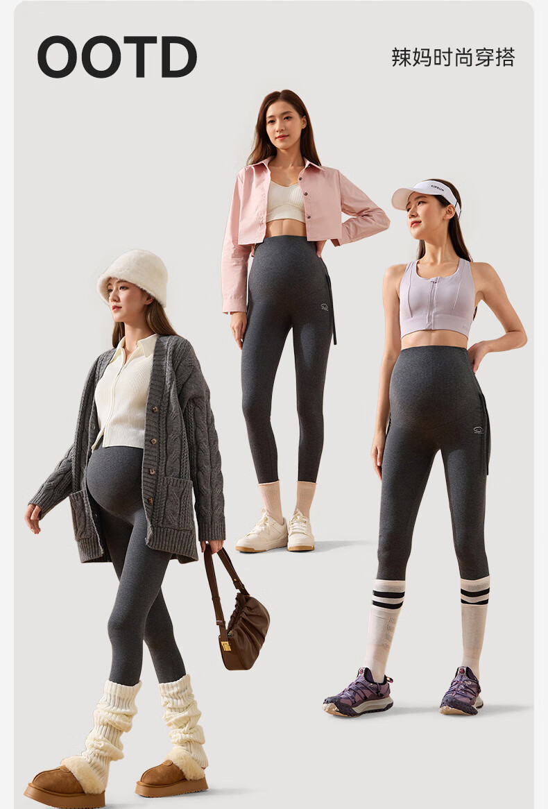 十月结晶孕妇打底裤零压棉提臀托腹孕妇裤春秋无痕不勒肚外穿裤 【秋冬款410g】灰色-10A抗菌 2XL 推荐体重160-190斤