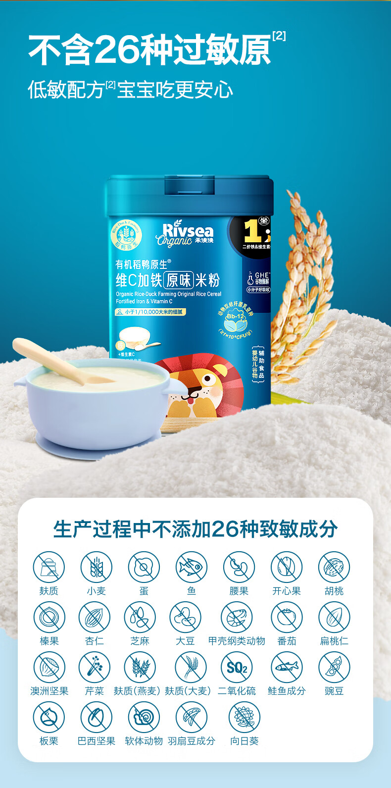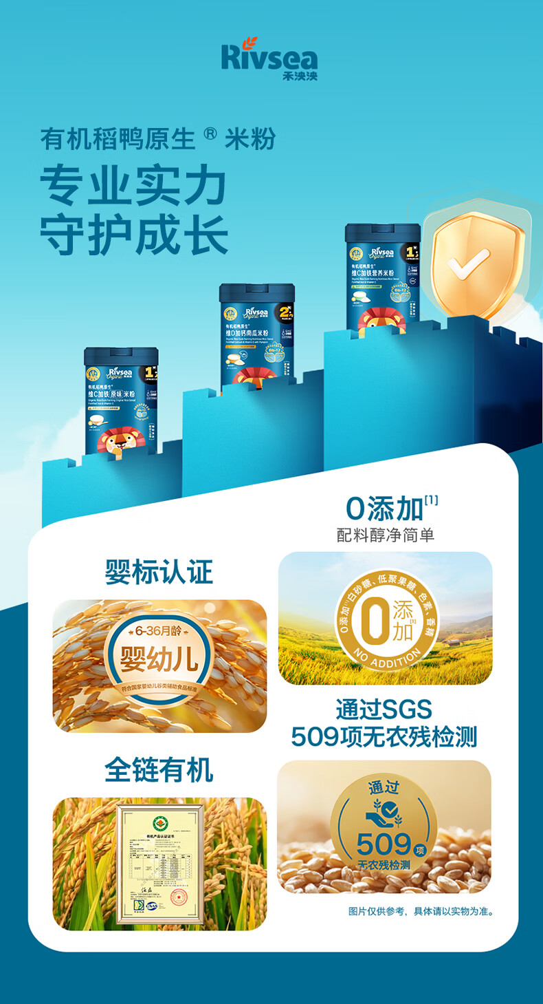 禾泱泱有机婴幼儿维C加铁米粉原味225g 稻鸭原生高铁米粉6月+