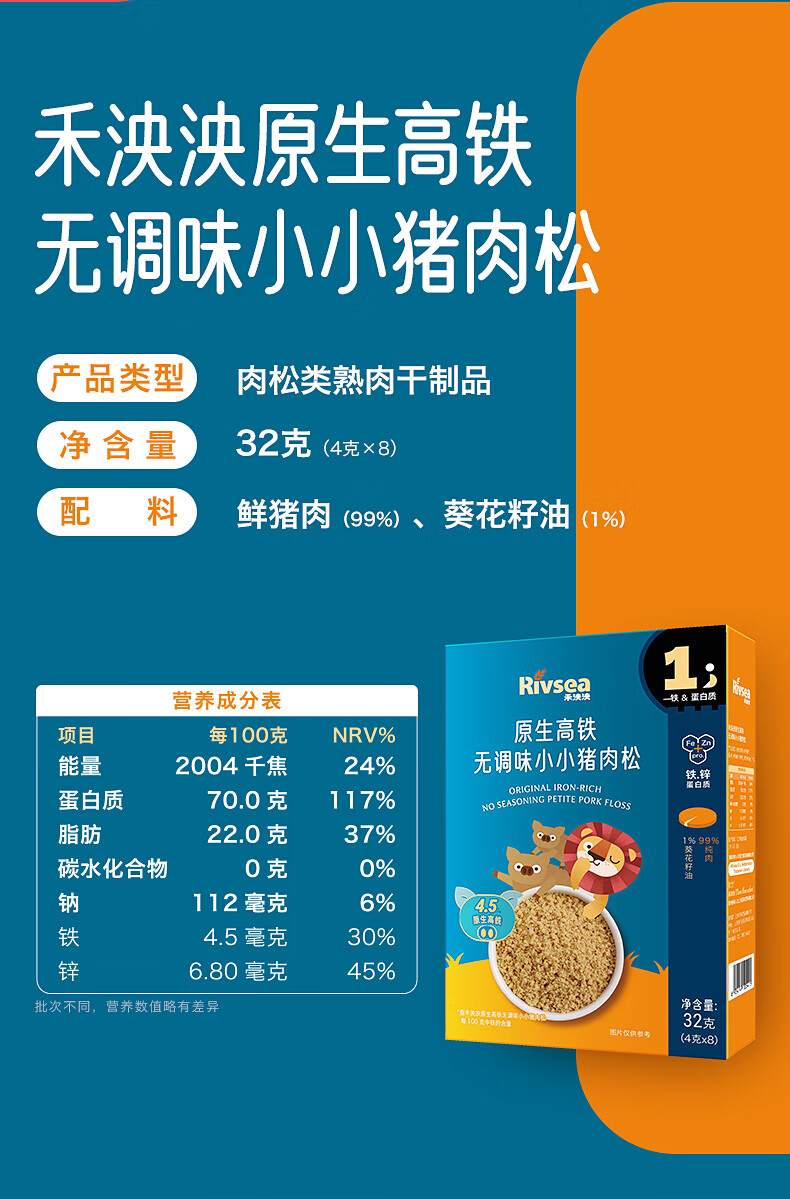 禾泱泱原生高铁无调味小小猪肉松32g高铁高锌高蛋白宝宝辅食拌面条米粉