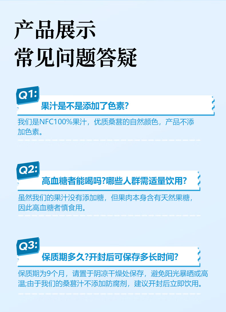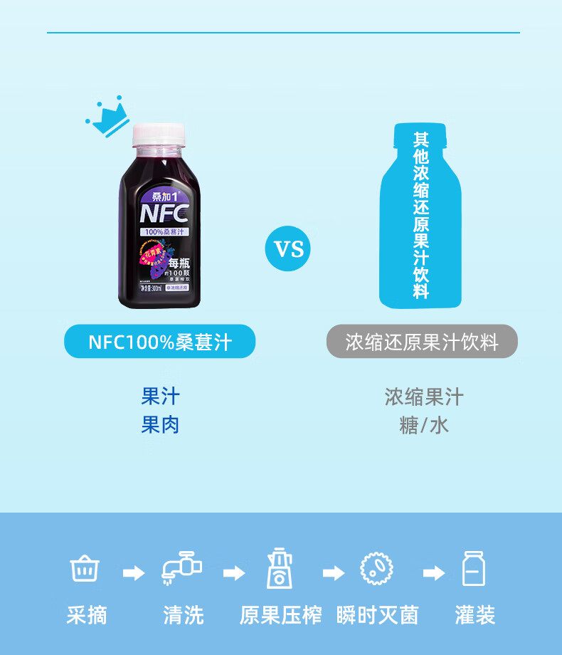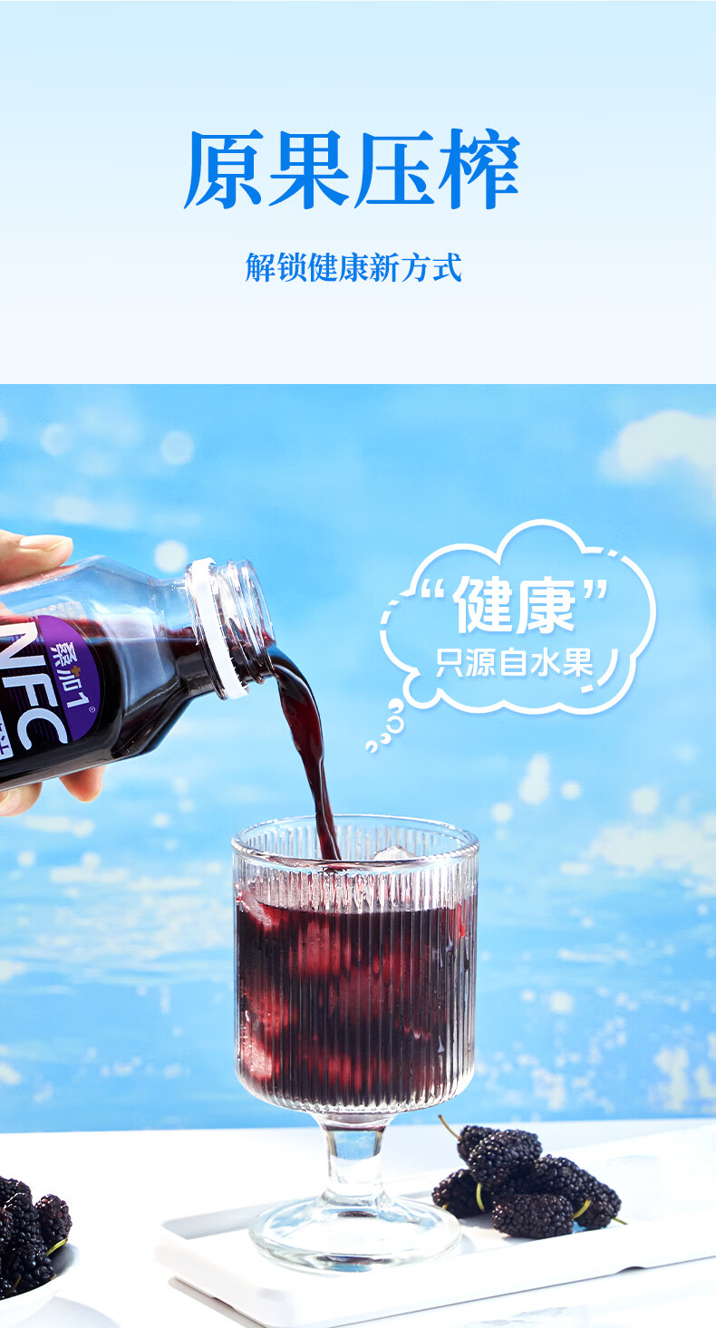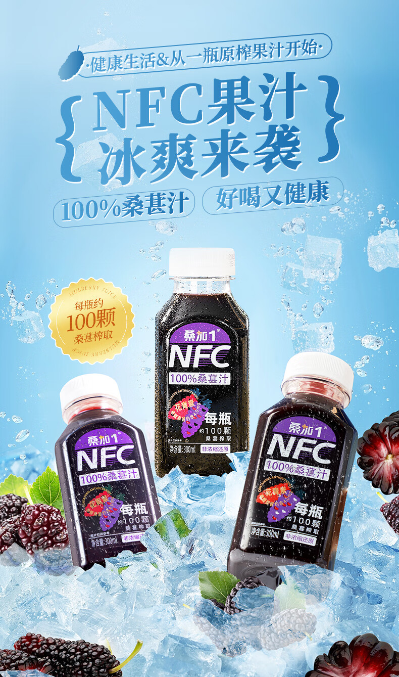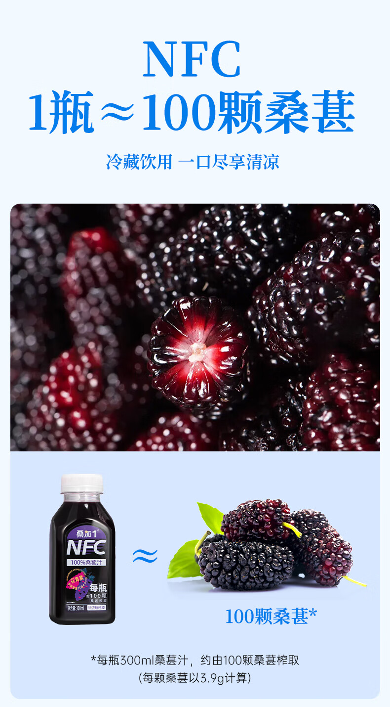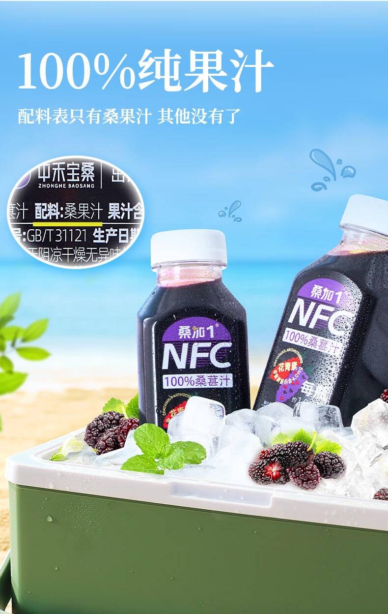 桑加 1 100%桑葚汁NFC果汁饮料 300ml*10瓶 纯桑果汁花青素送礼礼盒