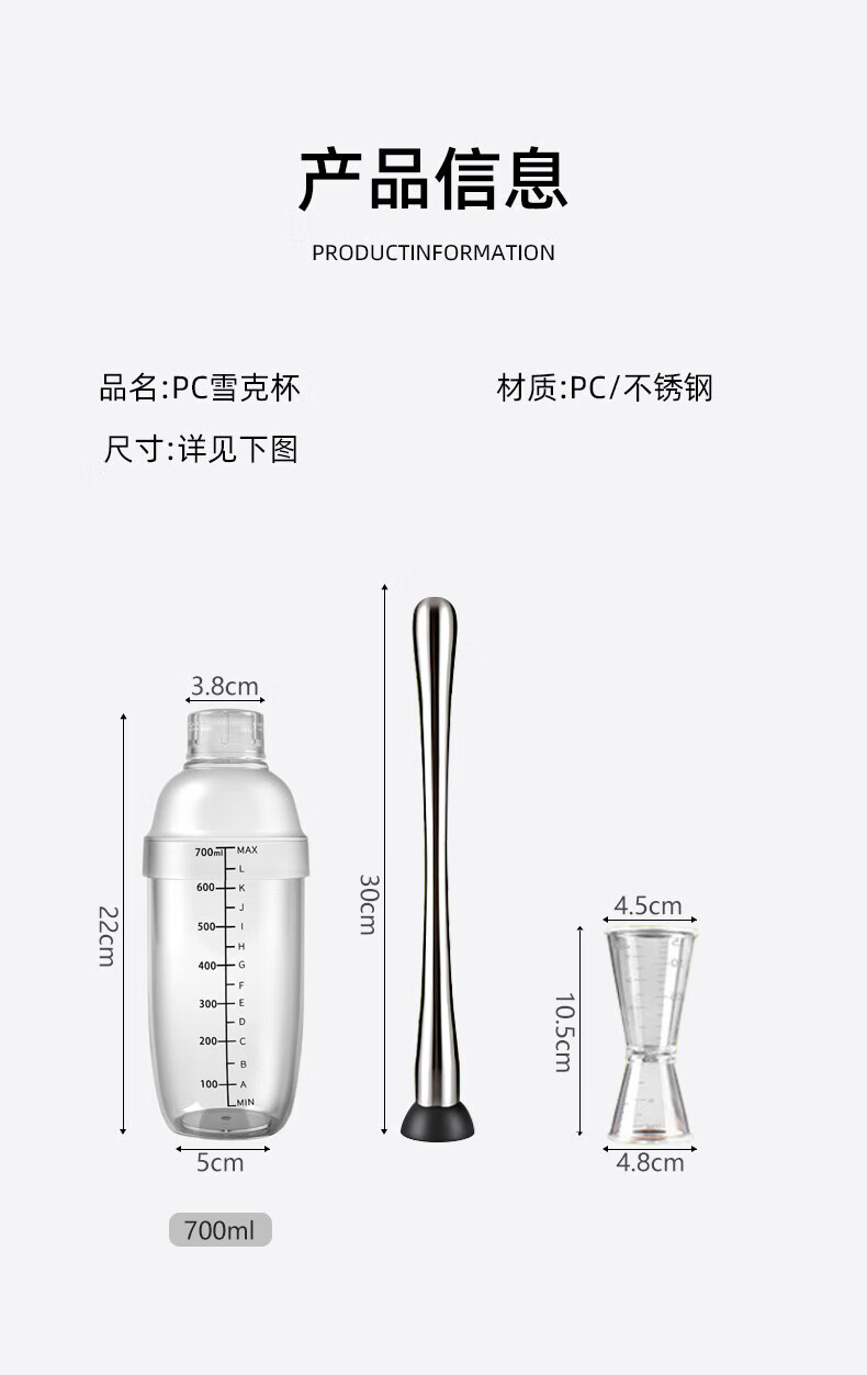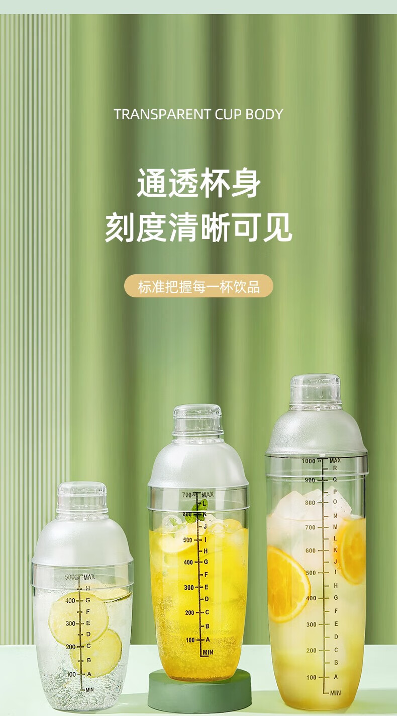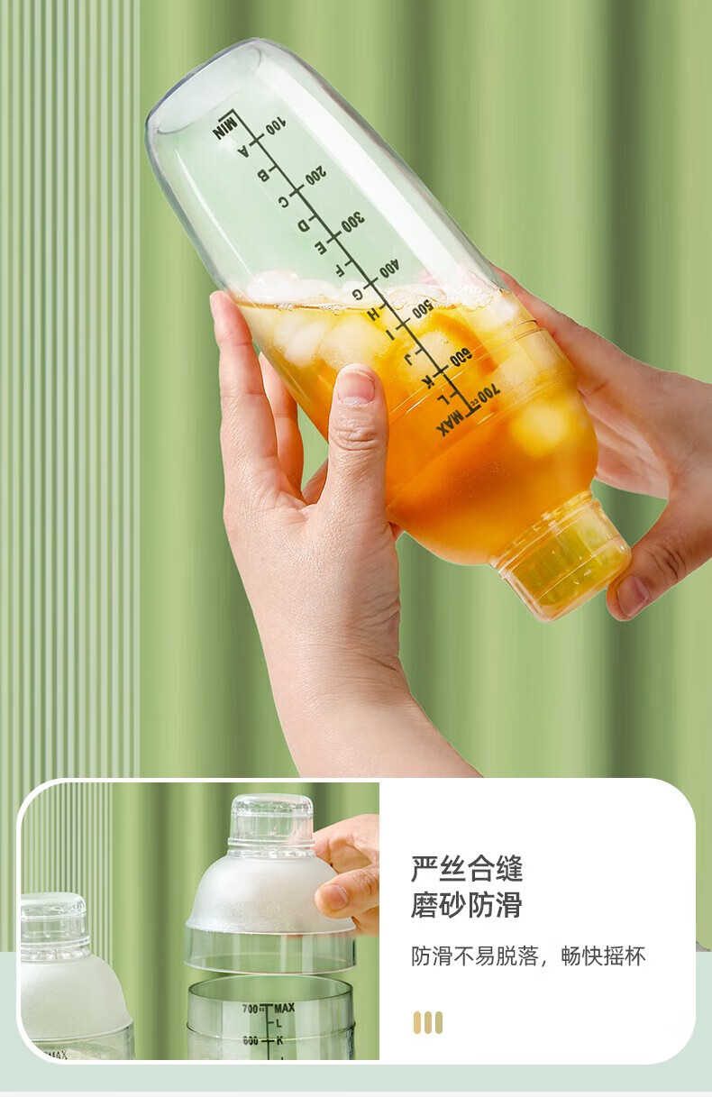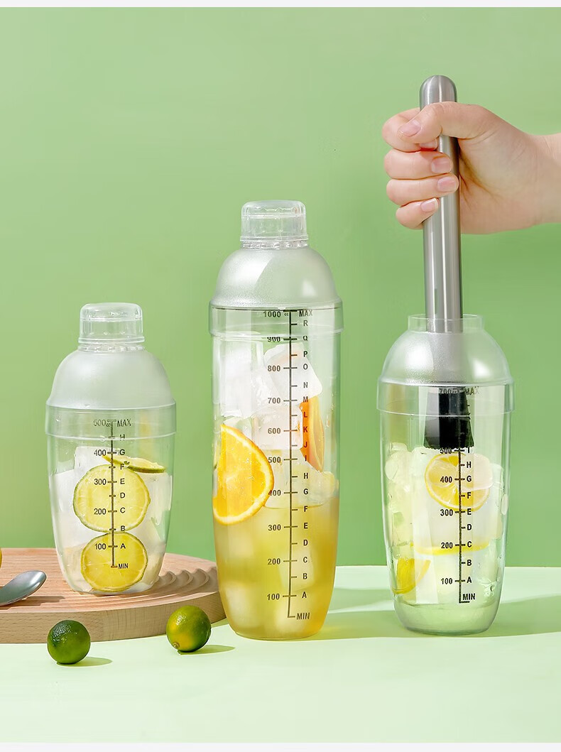京严暴打柠檬茶工具雪克杯套装捣汁棒碎冰锤雪克壶防溅盖手摇杯调酒器 套装-雪克杯+碎冰棒+量杯+吧勺 700ml大容量-升级防飞溅